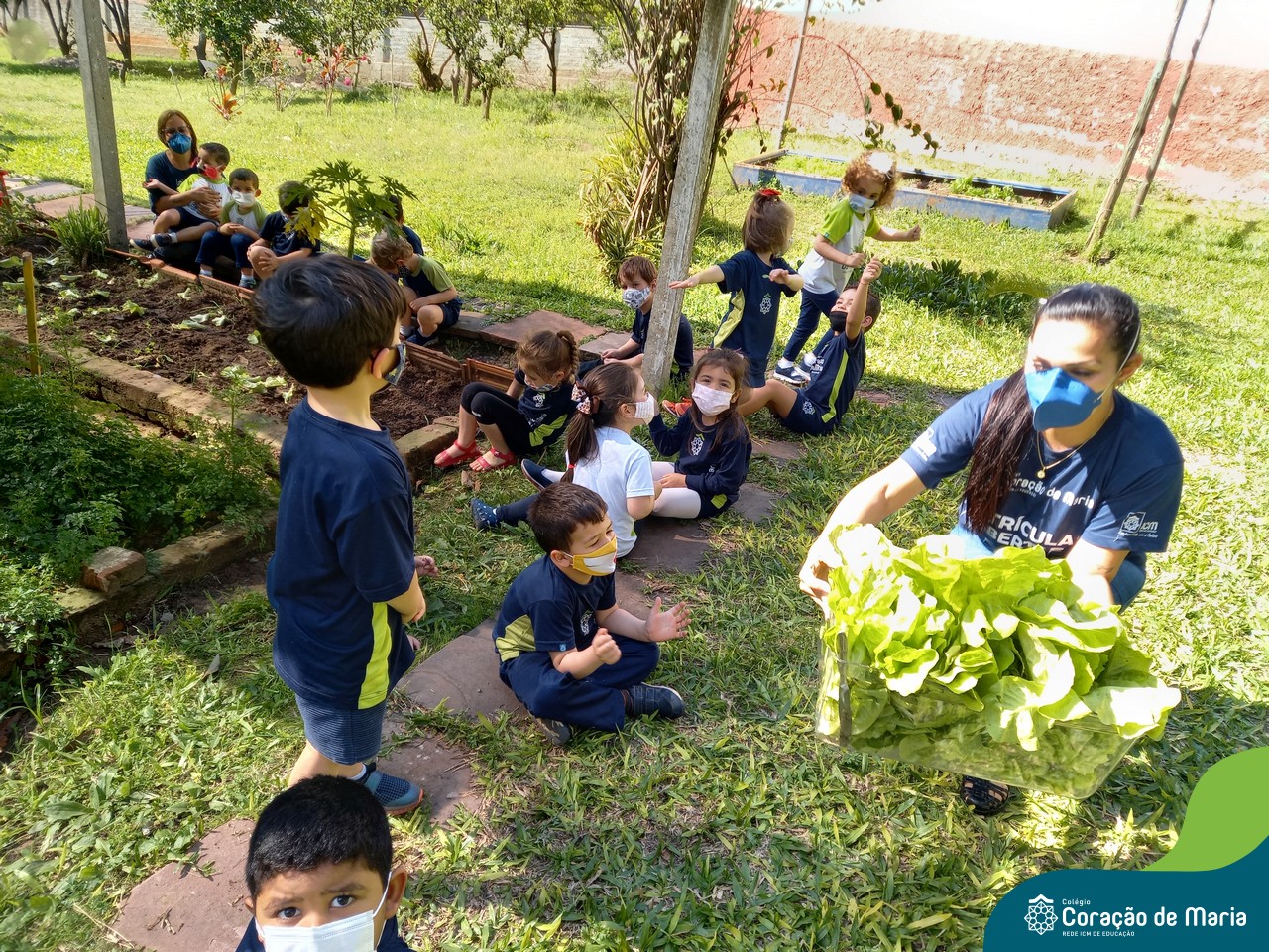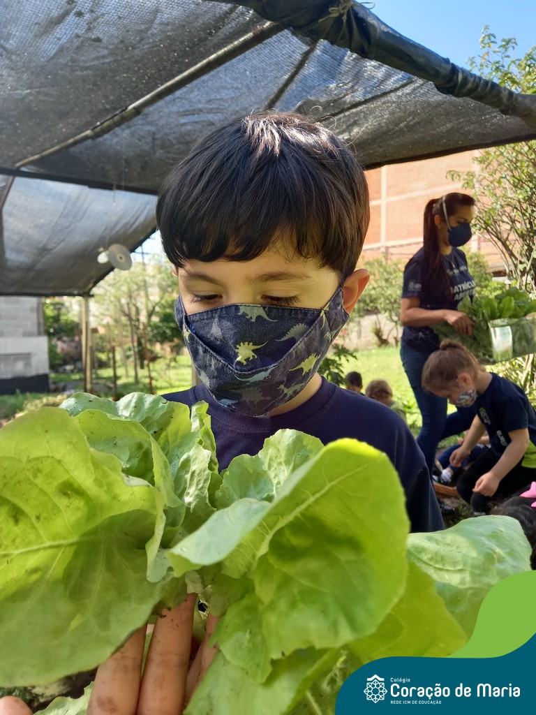 Conhecer a mudinha, plantar, acompanhar o crescimento e colher, esses foram os passos vividos pela turma do Maternal. Há algumas semanas havíamos compartilhado os registros do plantio e agora chegou a hora de colher e saborear. Confira: