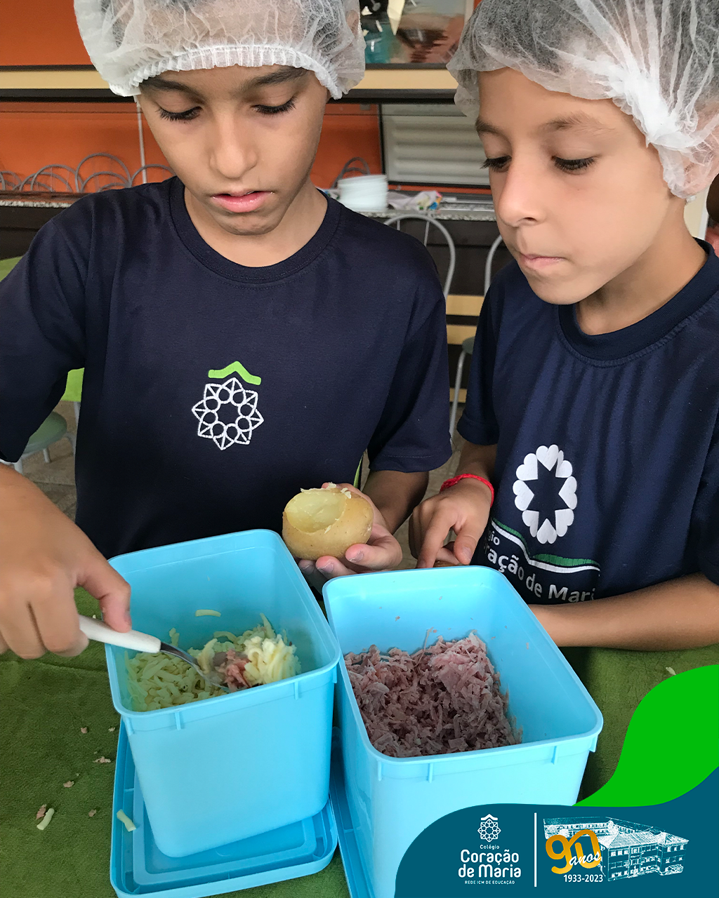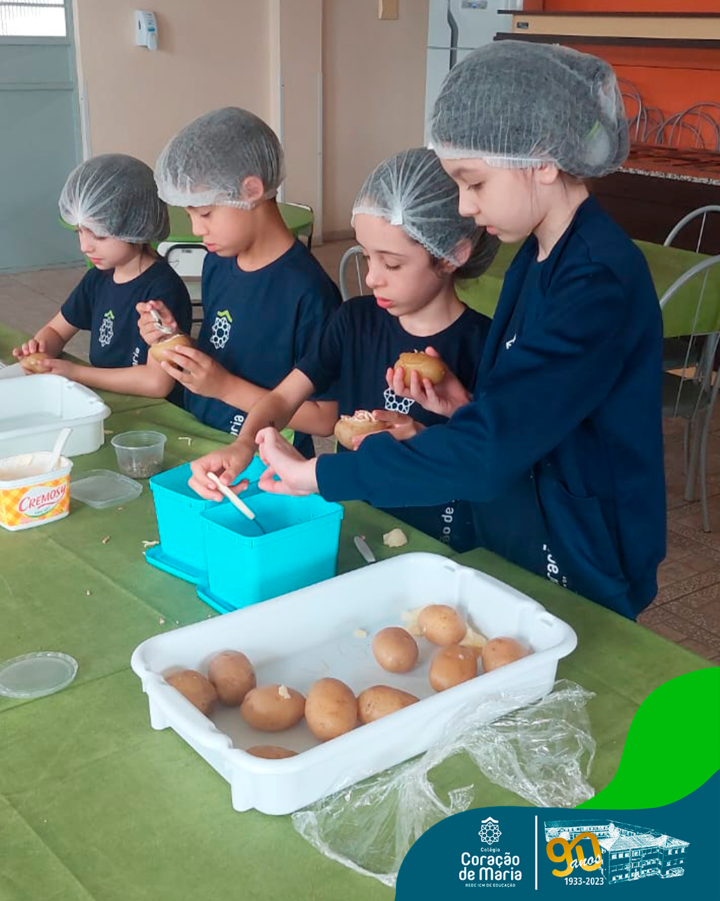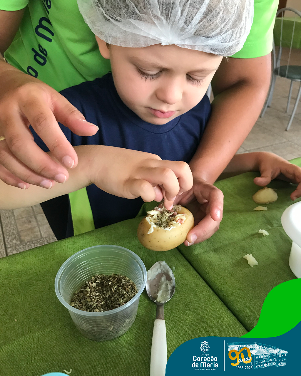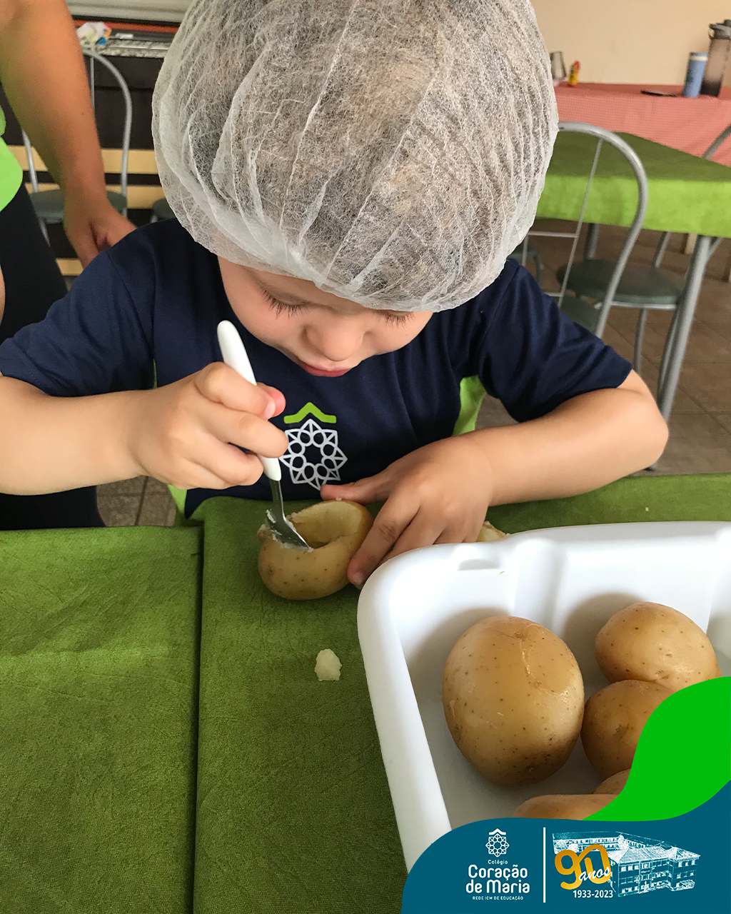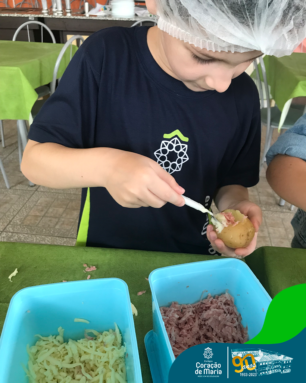 Dentre as atividades planejadas estava o cineminha com pipoca. Os alunos assistiram ao filme ‘’Ratatouille’’. Assim como o ratinho Remy se tornou um grande chef de cozinha, nossos alunos se inspiraram no personagem e, em parceria com a Cantina do Colégio, participaram do preparo da “Batata recheada”, um dos alimentos que estava no cardápio do dia para o almoço. Eles rechearam a sua própria batata com ingredientes de sua preferência. 🥔