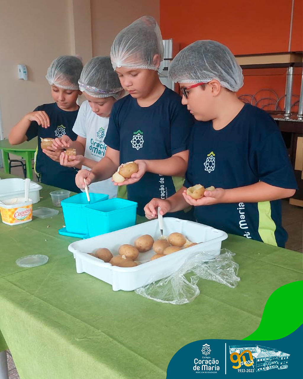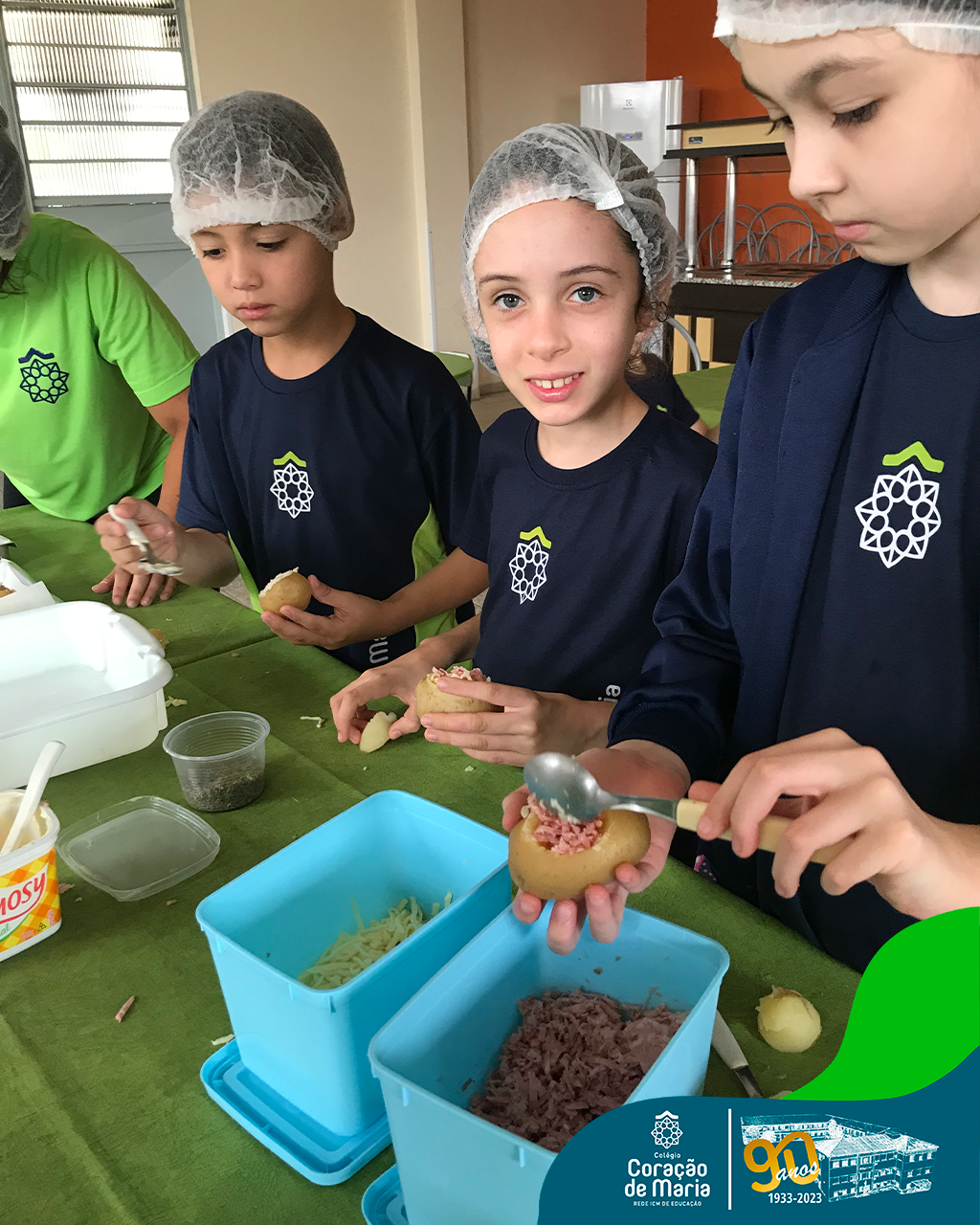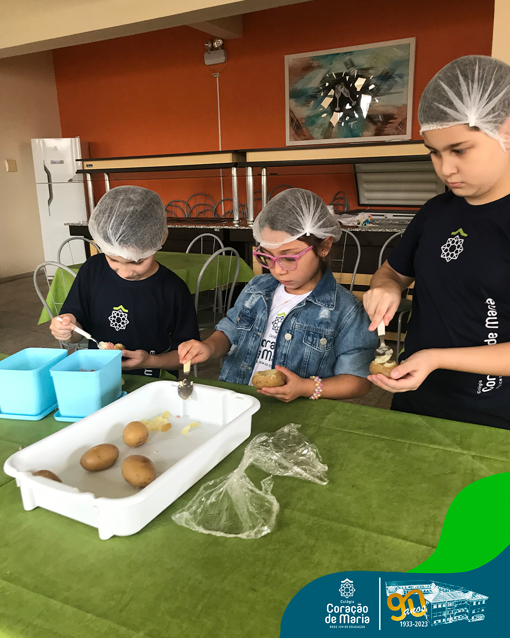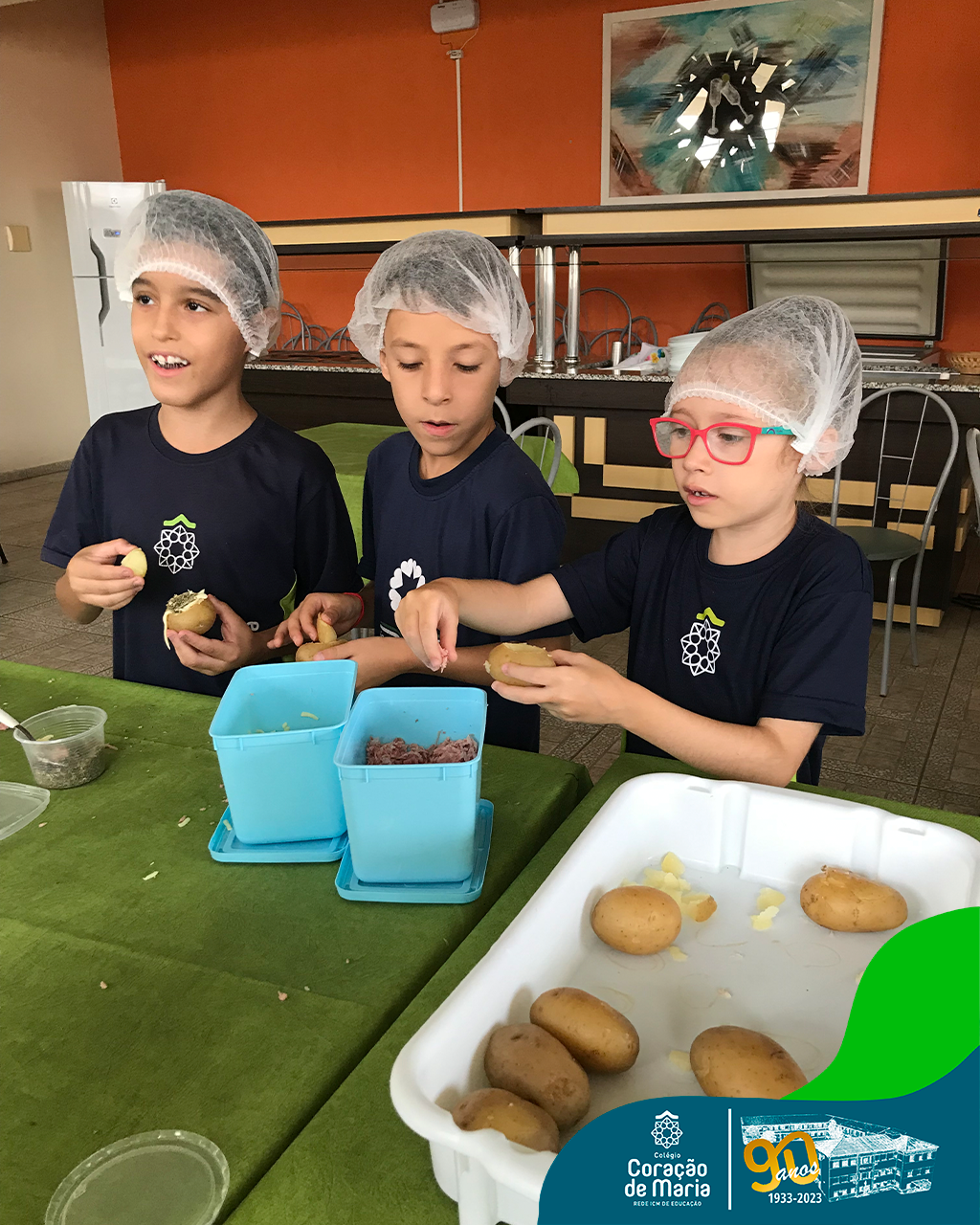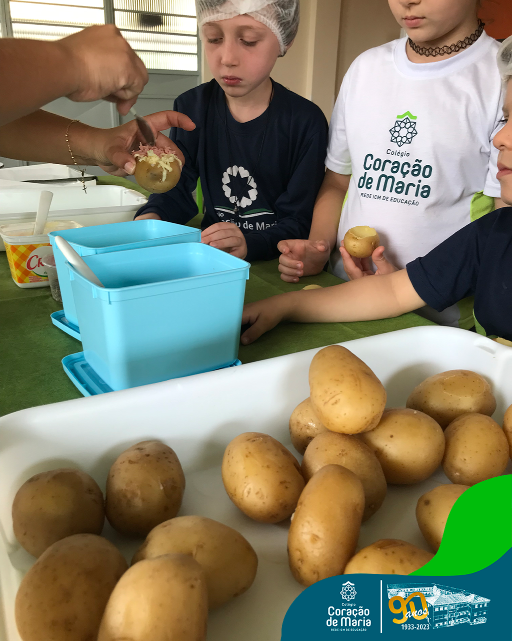 Dentre as atividades planejadas estava o cineminha com pipoca. Os alunos assistiram ao filme ‘’Ratatouille’’. Assim como o ratinho Remy se tornou um grande chef de cozinha, nossos alunos se inspiraram no personagem e, em parceria com a Cantina do Colégio, participaram do preparo da “Batata recheada”, um dos alimentos que estava no cardápio do dia para o almoço. Eles rechearam a sua própria batata com ingredientes de sua preferência. 🥔