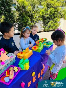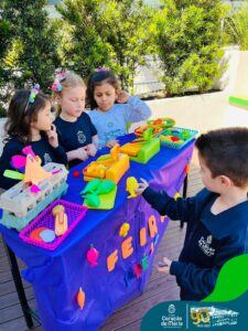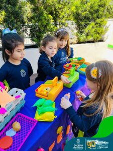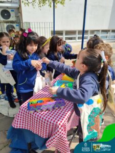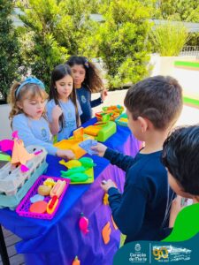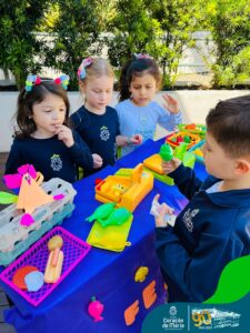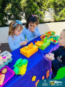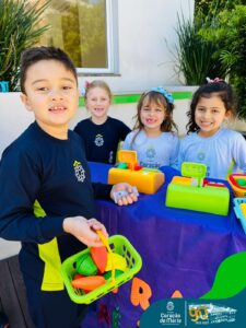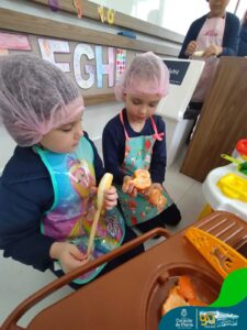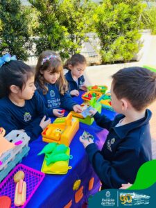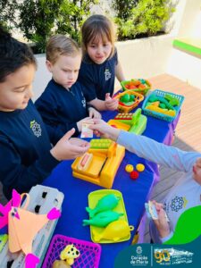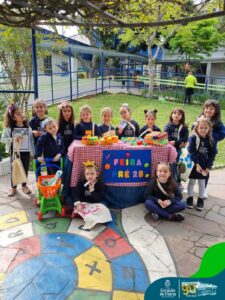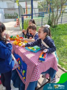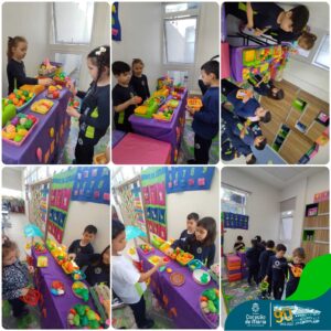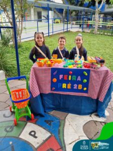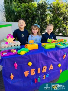 Feira de Brincadeiras: Professores e alunos se divertiram ao máximo com atividades de feirante e consumidor. A troca de “dinheiro” por produtos criou um ambiente dinâmico e participativo.
