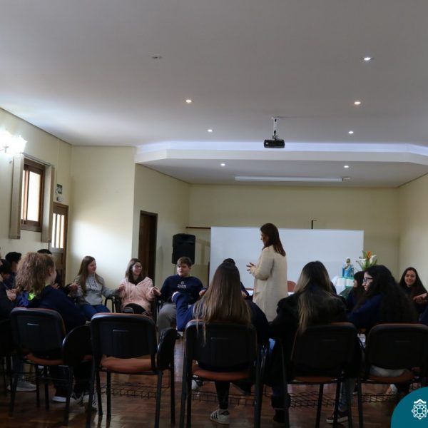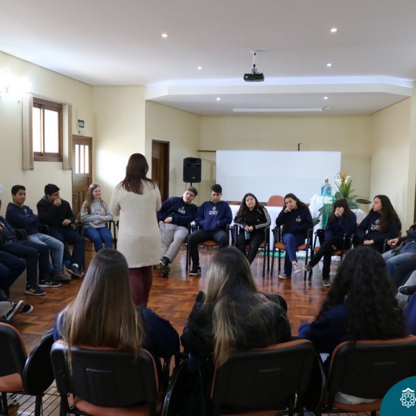 Animados com o convite da Pastoral Escolar, no último sábado, 14 de setembro, os estudantes dos 9ºs anos e Ensino Médio viveram o Dia de Formação – 2019, na Casa de Retiros Nossa Senhora de Lourdes, em Vale Vêneto. As dinâmicas possibilitaram a integração, o autoconhecimento e o repensar seu projeto de vida. Um dos momentos especiais foi o bate-papo com a psicóloga Zuriel Mello de Christo sobre as competências socioemocionais, relações interpessoais e gerenciamento das emoções.