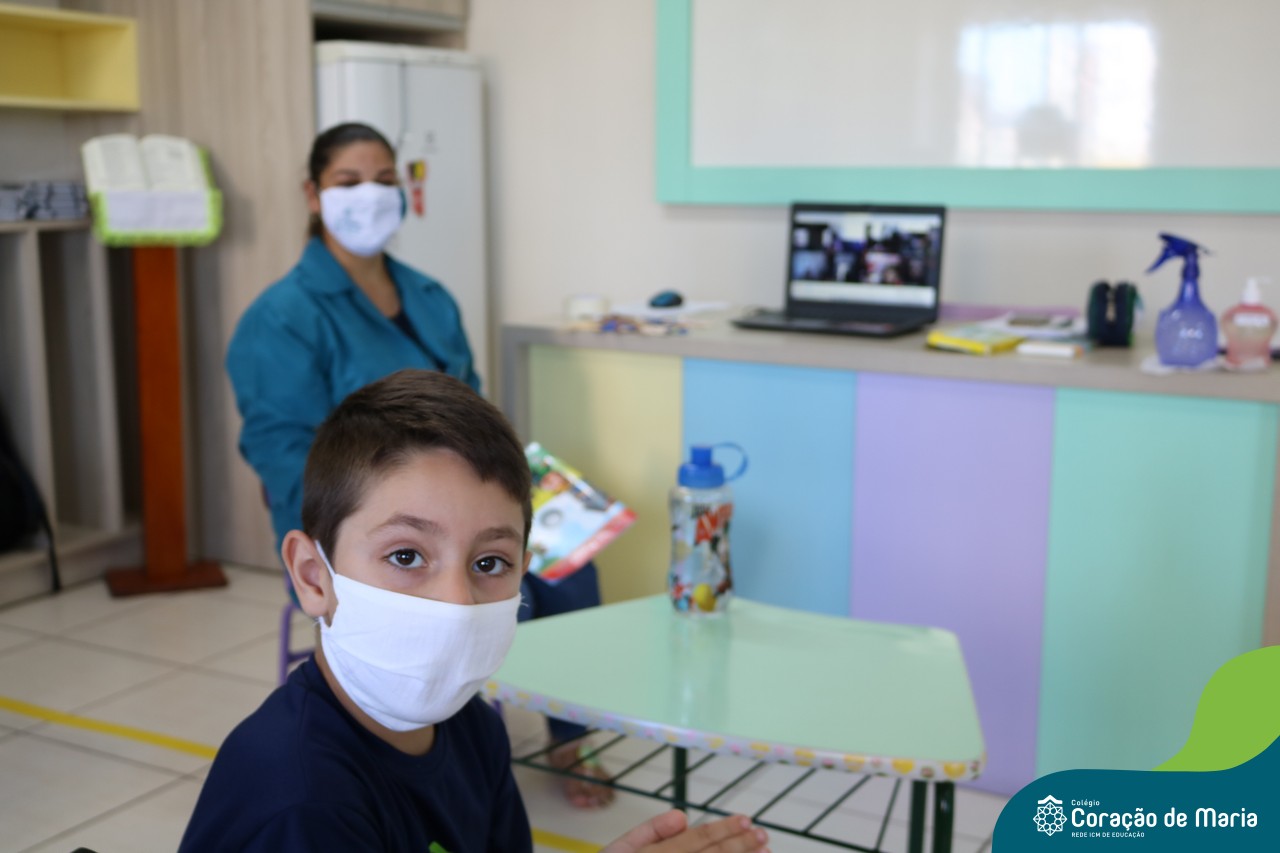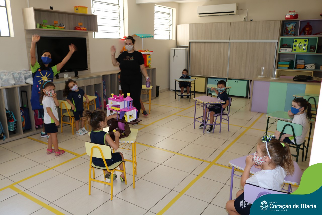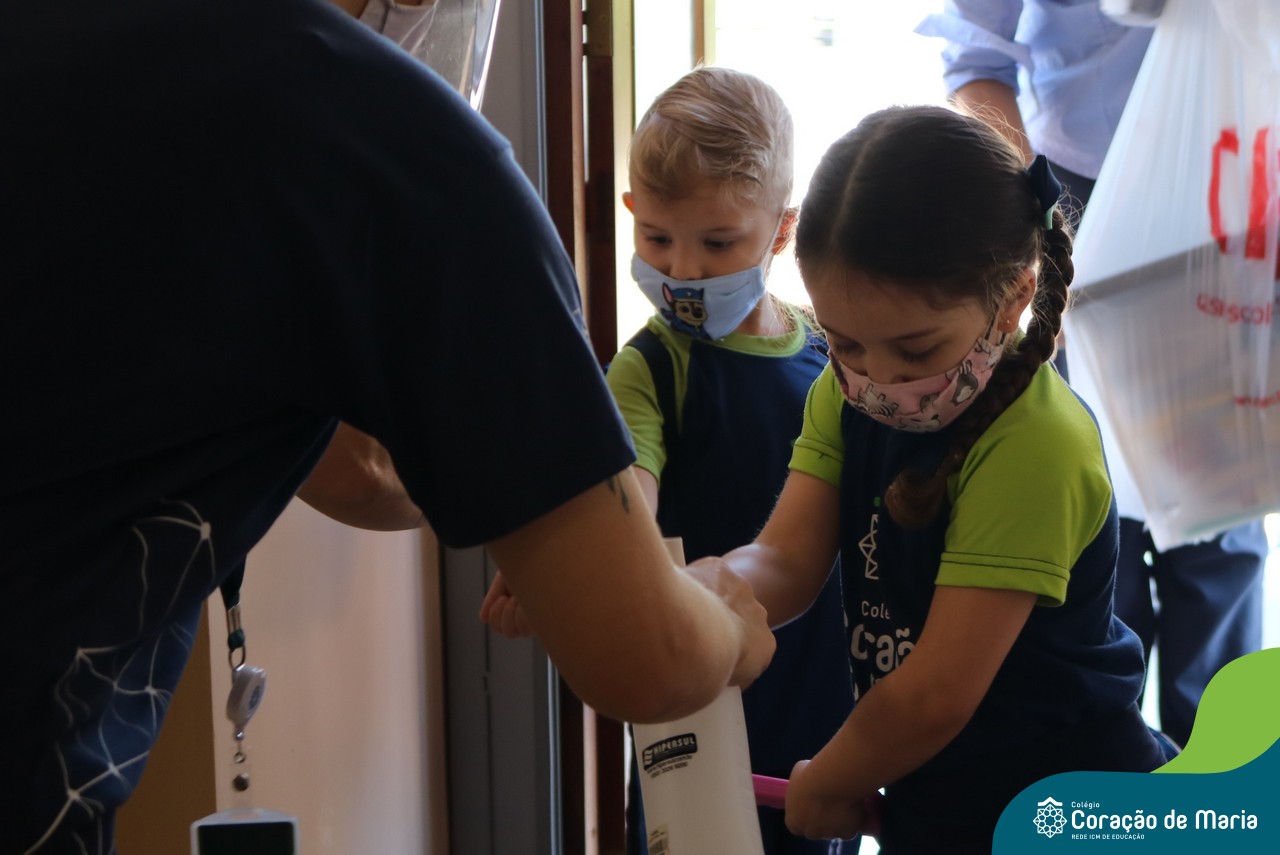 A tarde começou com mais cores aqui no CCM pois a Educação Infantil, conforme decreto municipal, pode adotar o modelo híbrido de escalonamento. Acompanhados de seus responsáveis e com muita segurança, os pequenos foram acolhidos. Um outro grupo acompanha as atividades em tempo real em casa.