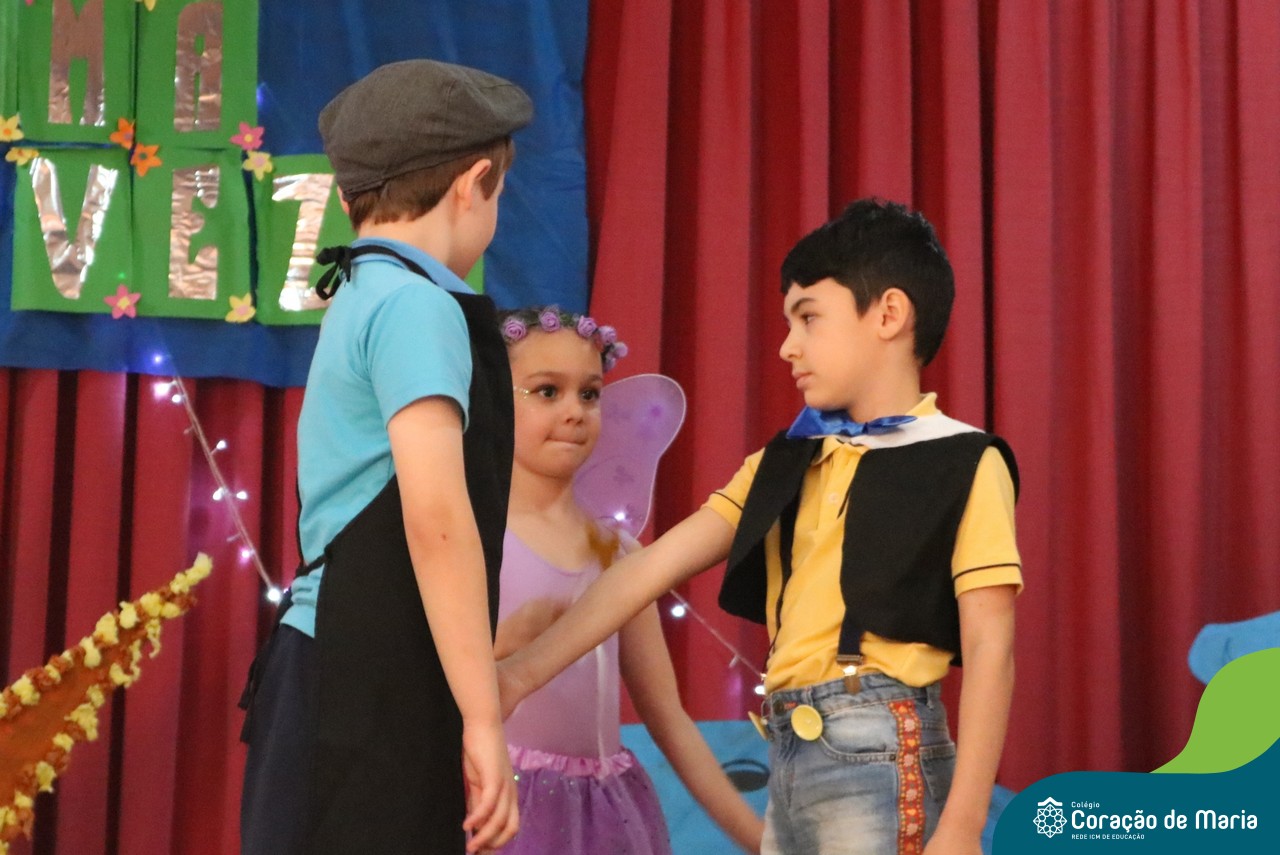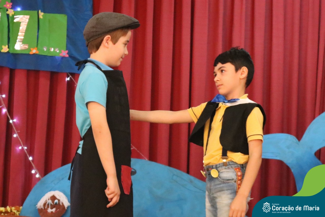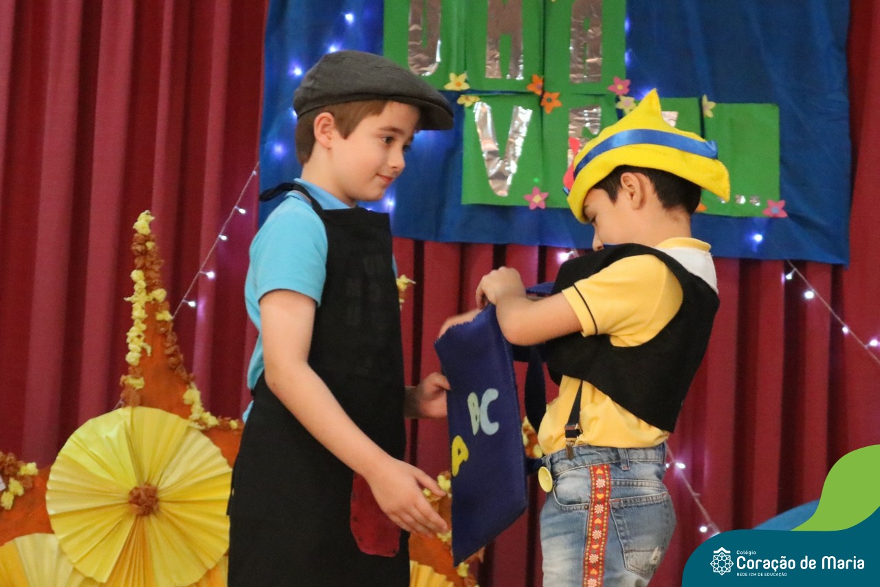 As turminhas do Pré 2 A e B estão em ritmo de despedidas e acolhimento, pois em 2020 iniciam o Ensino Fundamental. No entardecer de 06 de dezembro aconteceu uma linda celebração para agradecer este ciclo que se encerra. Os pequenos também abrilhantaram com a apresentação dos clássicos “Pinóquio” e “Chapeuzinho Vermelho”. Confira alguns momentos: