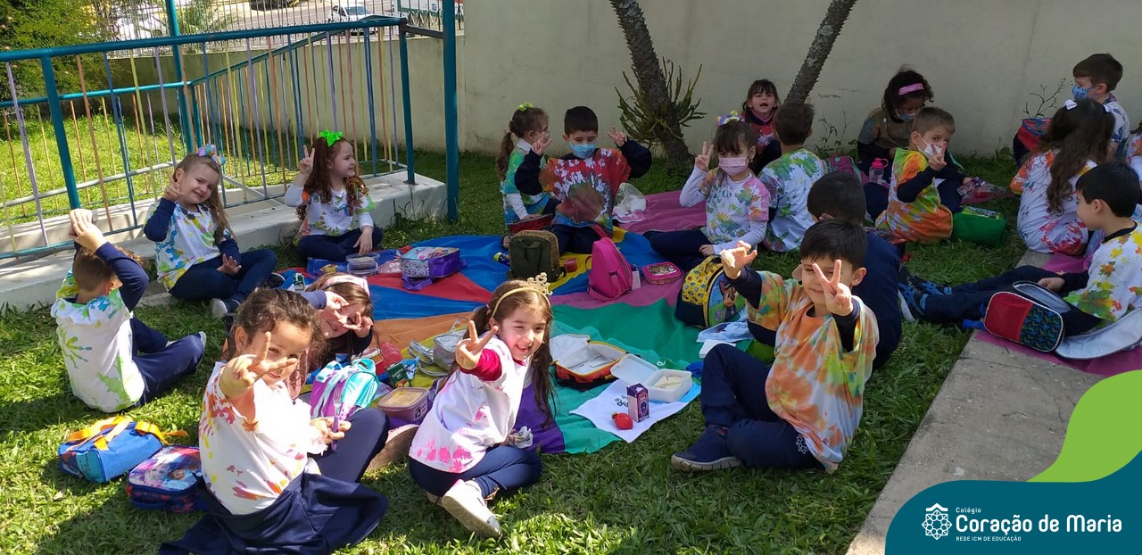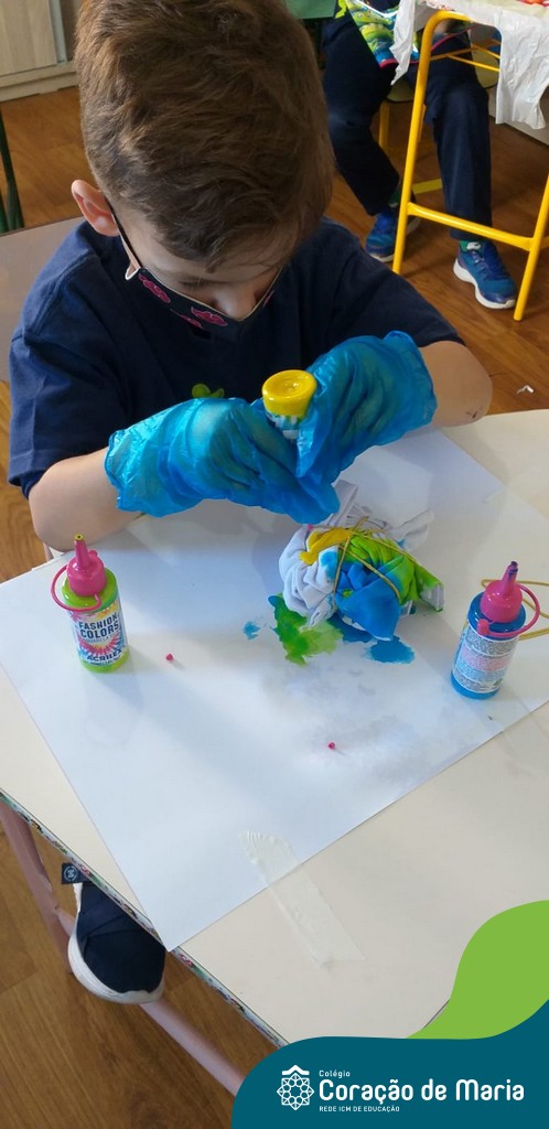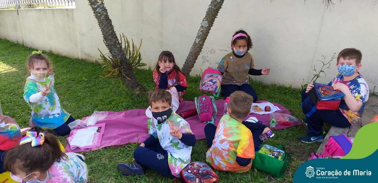 Explosão de cores! A turma Pré 2A coloriu as tardes com a técnica Tie Dye e piquenique das cores na semana da criança. Magia, descoberta, encantamento e muita alegria transformado em amor.
