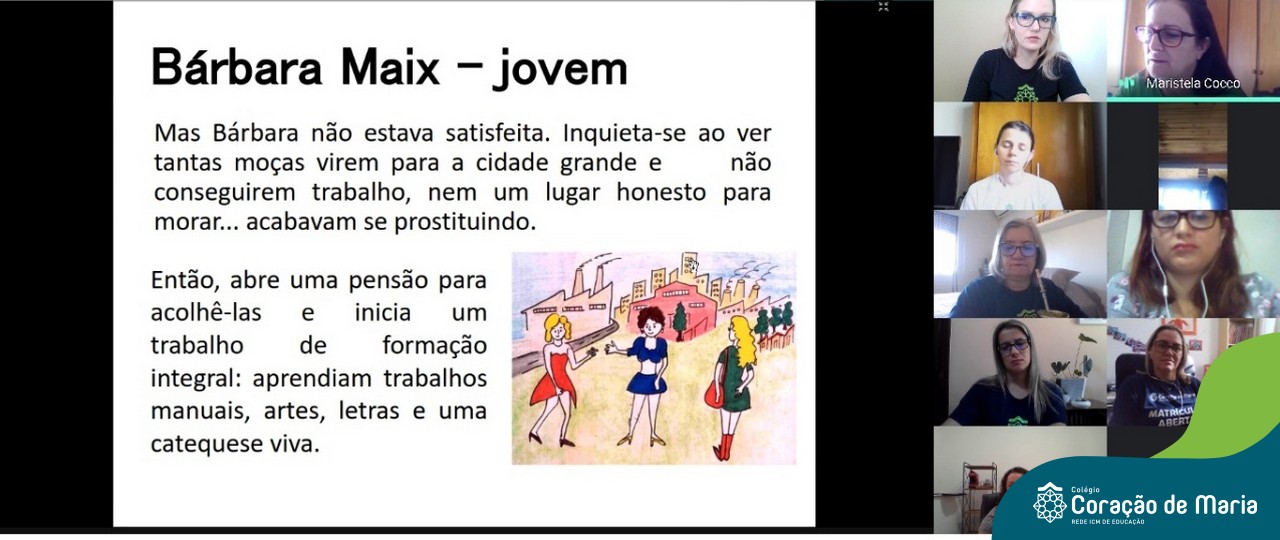 Na semana em que fizemos a memória dos 148 anos da morte de Bárbara Maix, os novos colaboradores participaram de um momento formativo especial conduzido pelo Conselho Administrativo Pedagógico. A formação contemplou múltiplos olhares sobre a vida e a obra da Bem-aventurada: história, projeto pedagógico, gestão e liderança, grafologia, beatificação, processo de canonização e a Congregação hoje.