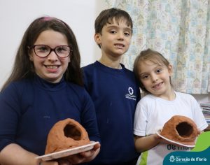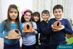 A turma 13, do 1º ano do Ensino Fundamental, está encantada com o aprender a ler e a escrever. Semanalmente as crianças produzem textos. Neste mês, a hora do conto sobre a Lenda do João de Barro, oportunizou a construção de muitos saberes. Confira as fotos da construção da casinha do pássaro joão-de-barro.