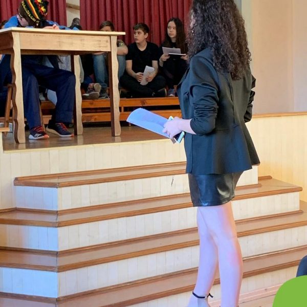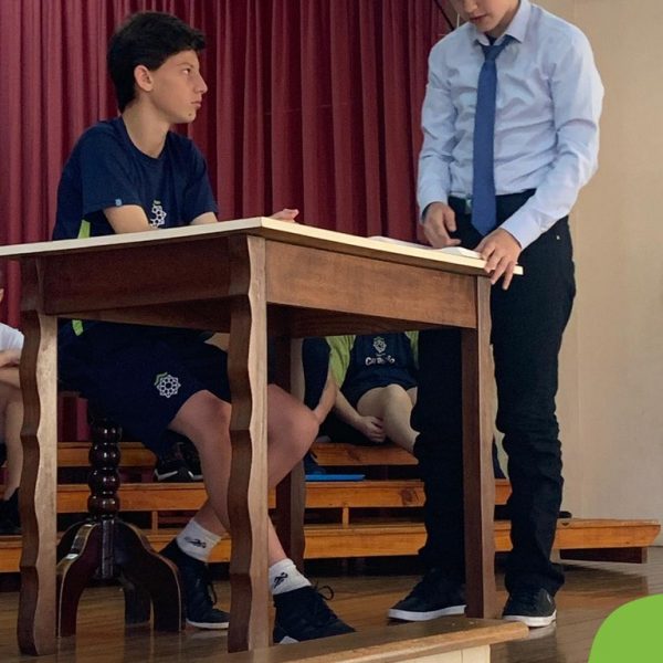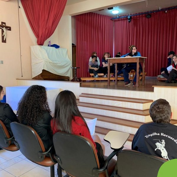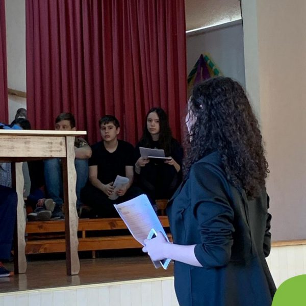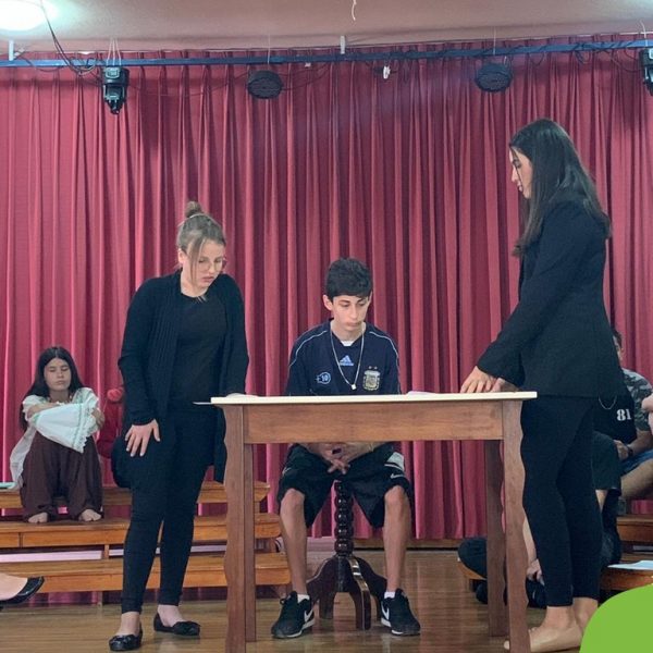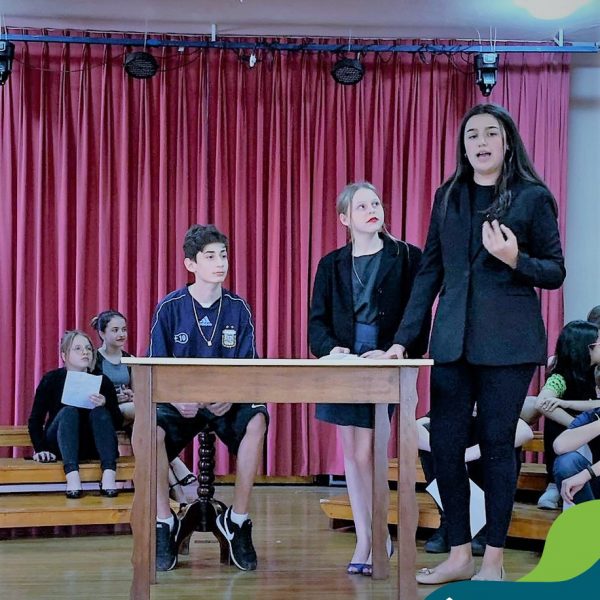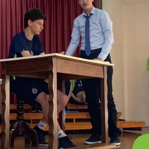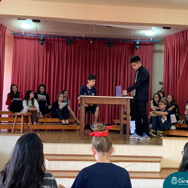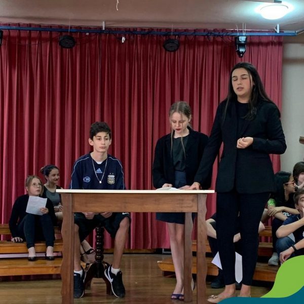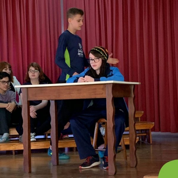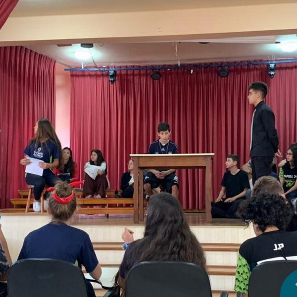 Um tribunal foi montado nas aulas de Língua Portuguesa dos 8ºs anos. A partir da proposta da Professora Cristiane, as turmas simularam um julgamento em que deveriam reavaliar a pena imputada ao réu, Animal . As turmas foram divididas em grupos e assumiram diferentes papéis durante o júri. As habilidades de escuta, reflexão , argumentação, criatividade, empatia, ortografia e riqueza vocabular foram desenvolvidas durante a atividade,bem como a capacidade de ponderação por parte dos alunos, que deveriam ser justos acima de tudo. Foi bastante encantador perceber o engajamento, a postura investigativa e autonomia dos alunos. A atividade culminou em diferentes resultados.