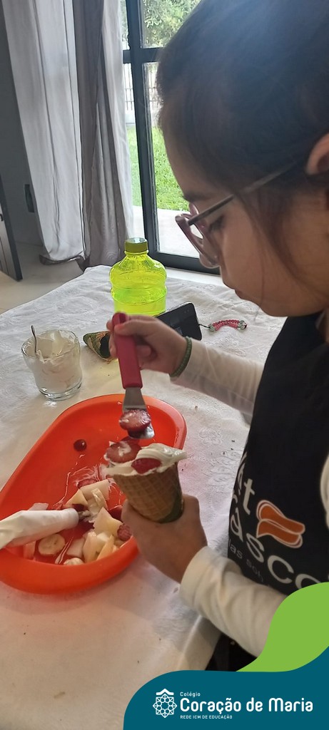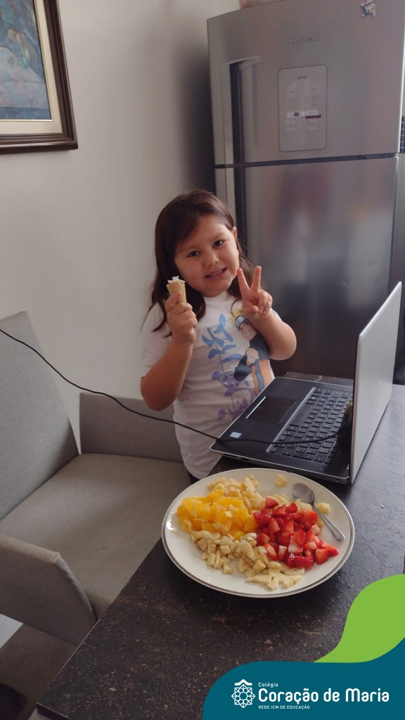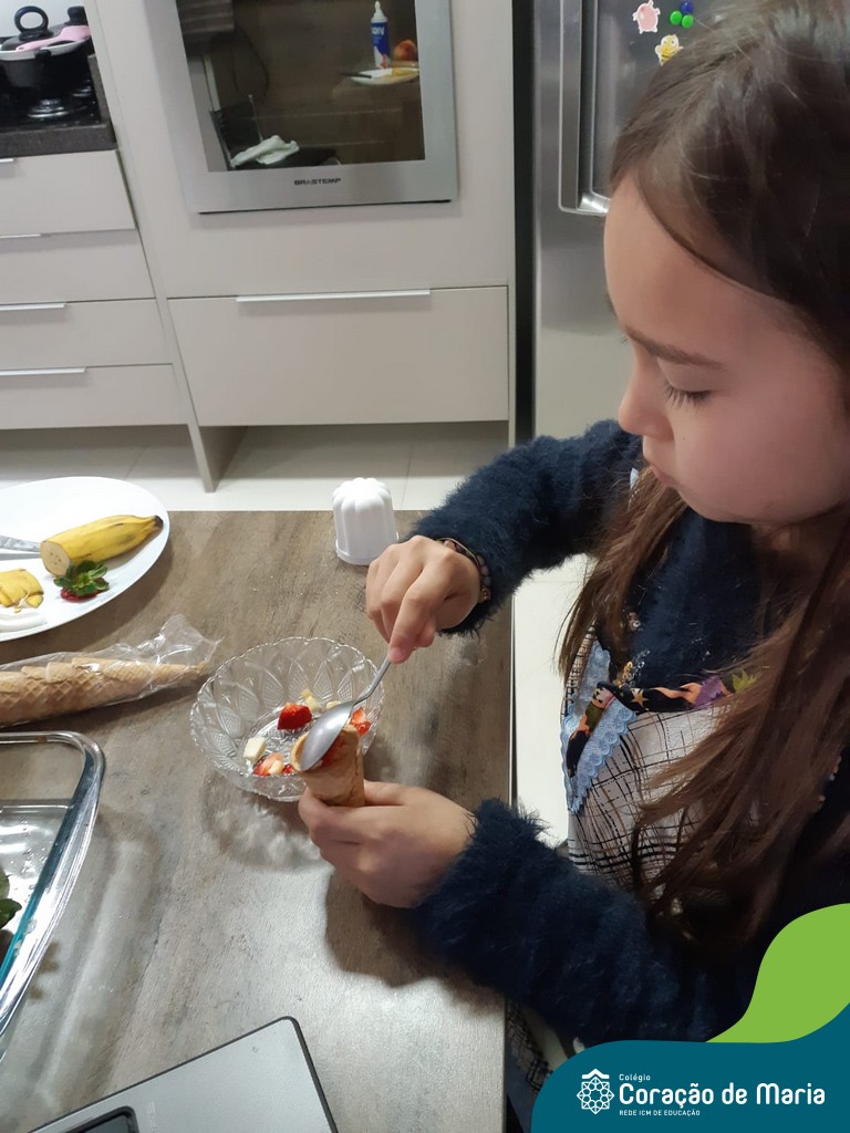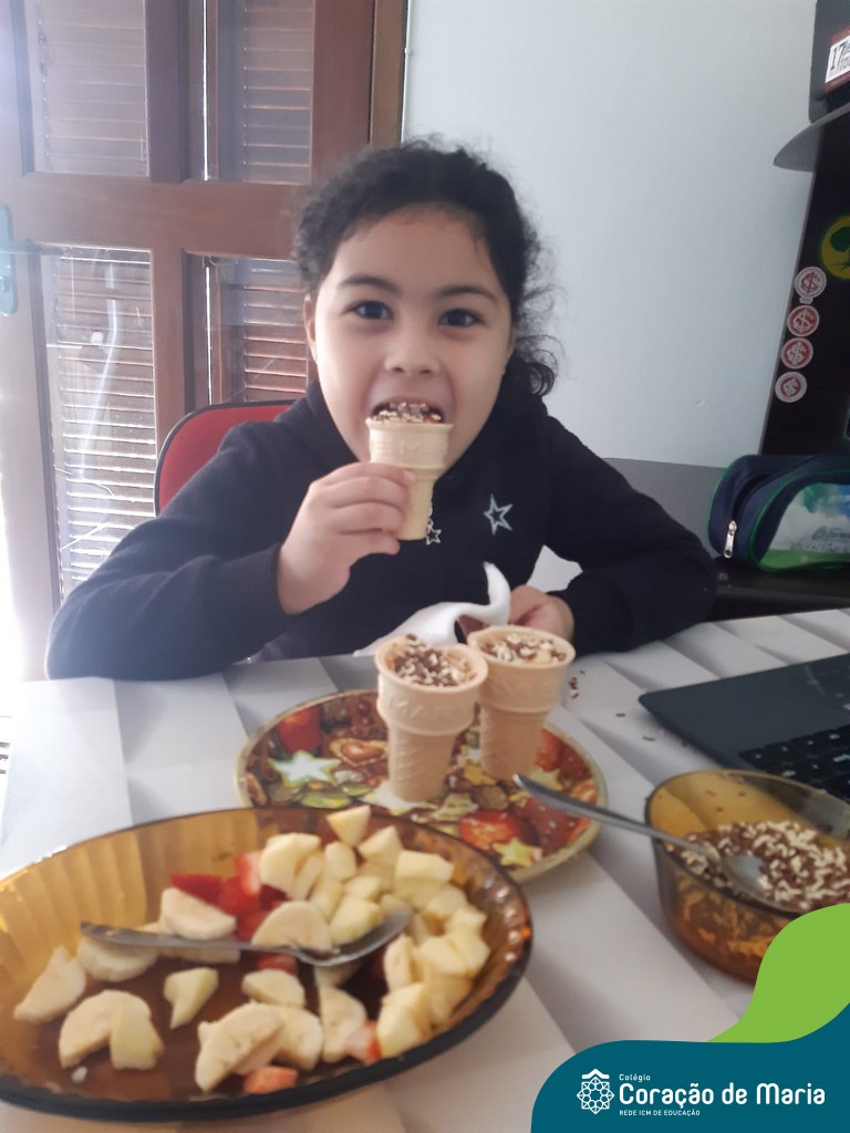 Para comemorar a chegada da Spring, a estação das flores, a teacher Taís preparou com seus alunos uma atividade super delicious! Durante uma aula online no sábado letivo, os estudantes puderam escolher as frutas de sua preferência e prepararam uma deliciosa sobremesa. Alguns incrementaram com chantilly, iogurte, canela em pó para cobertura! Além de aprender o nome das frutas em inglês eles também puderam aproveitar o sabor e as vitaminas delas!