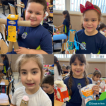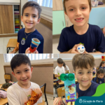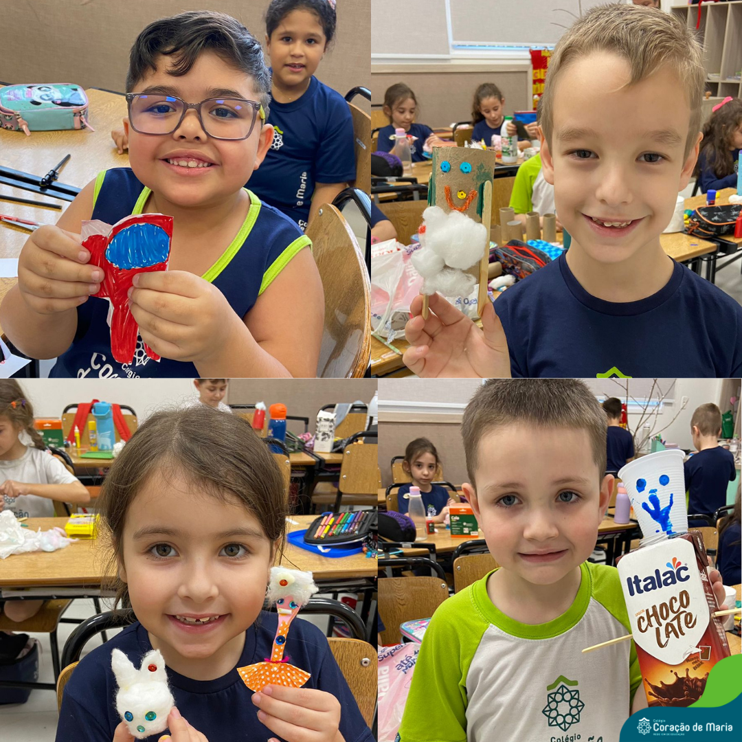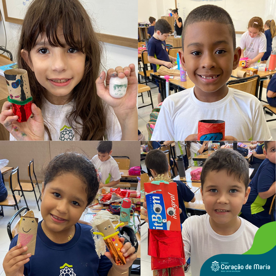 Para a abordagem ficar mais lúdica, as turmas ressignificaram o que seria descartado e construíram os Amigos Recicláveis.