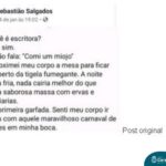 Inspirados na página de humor Sebastião Salgados, os alunos dos oitavos e nonos anos, na aula de Língua portuguesa da Professora Cristiane S. Gonçalves, ressuscitaram um dos melhores memes relacionados a comida. O Festival Miojo Literário consiste na brincadeira com a descrição do ato de comer macarrão instantâneo, simulando o olhar de um escritor (ver postagem original) A postagem gerou uma leva de comentários geniais na página na época , e, nós , não poderíamos ficar de fora. Assim, os alunos trouxeram personagens , autores, youtubers, cantores…enfim, um pouco do universo deles para a prática da escrita criativa e da interação , a partir do diálogo : “-Você é o/ a_______?, -Sou, sim! -Então fala, “comi um miojo”…