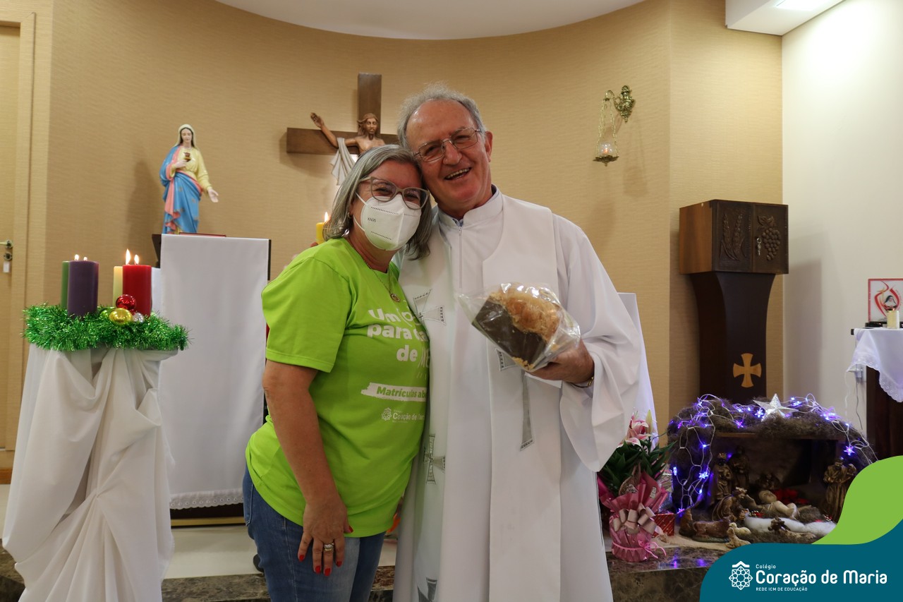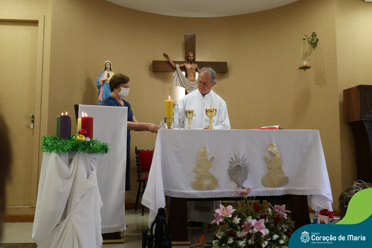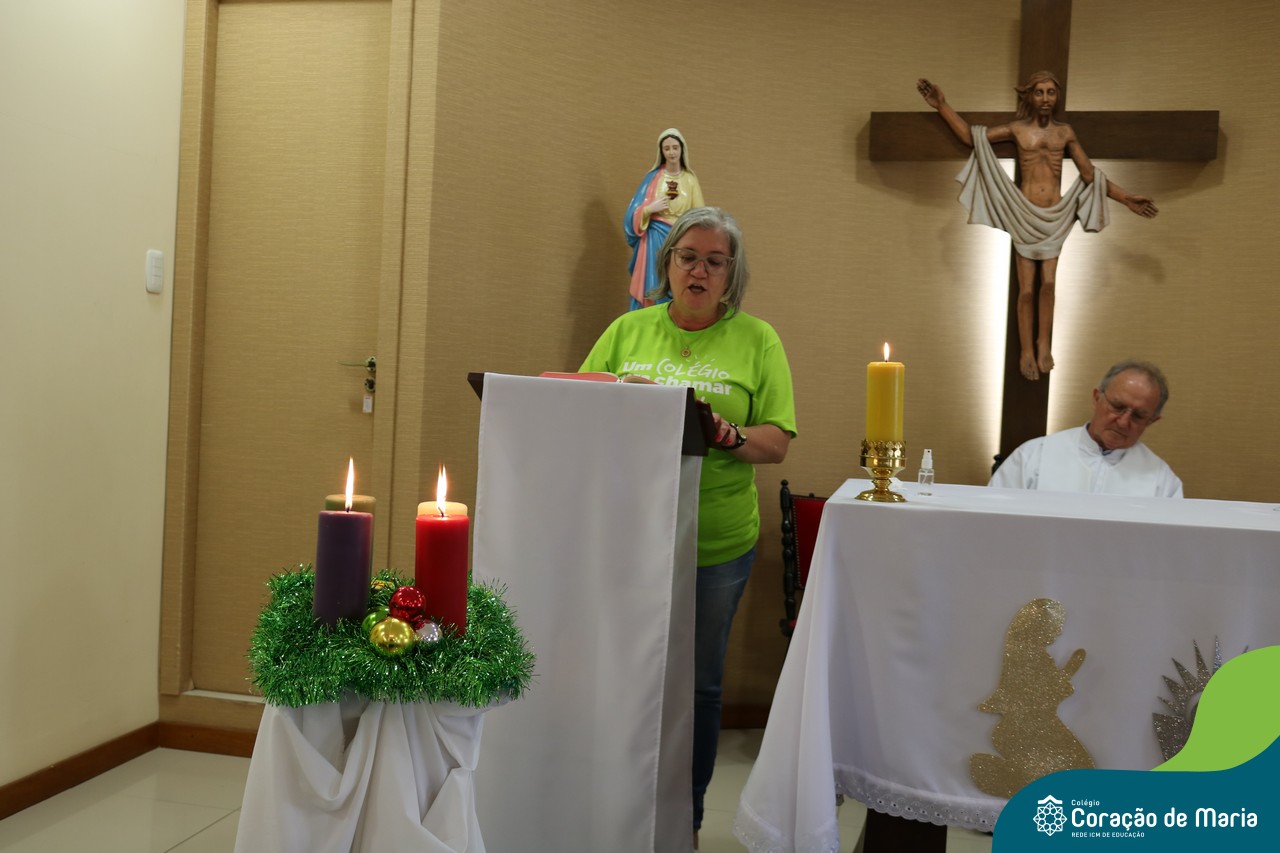Os educadores, no dia 22.12, celebraram antecipadamente o Natal. Durante a Missa se agradeceu pela vida, pelo ano letivo que se encerrou; também se homenageou a Diretora e a Vice-diretora e foi realizado um lindo momento de envio para a Irmã Georgina, que assume uma nova missão em Bagé. Após houve confraternização oferecida pela direção.