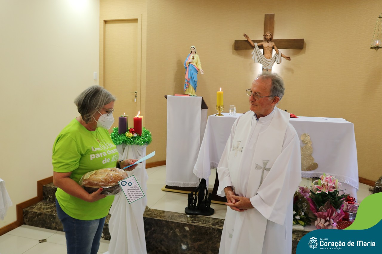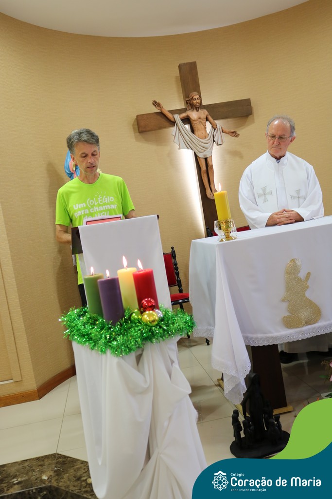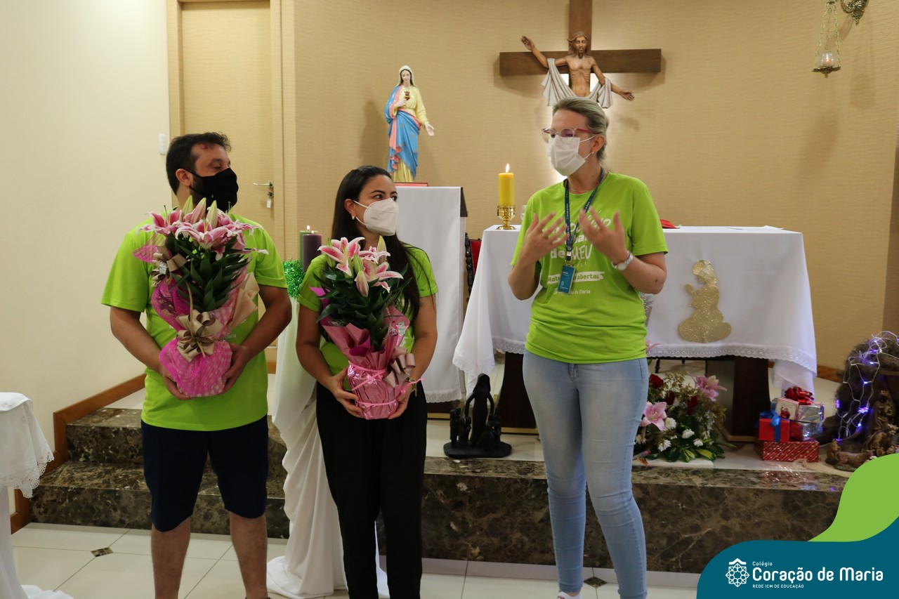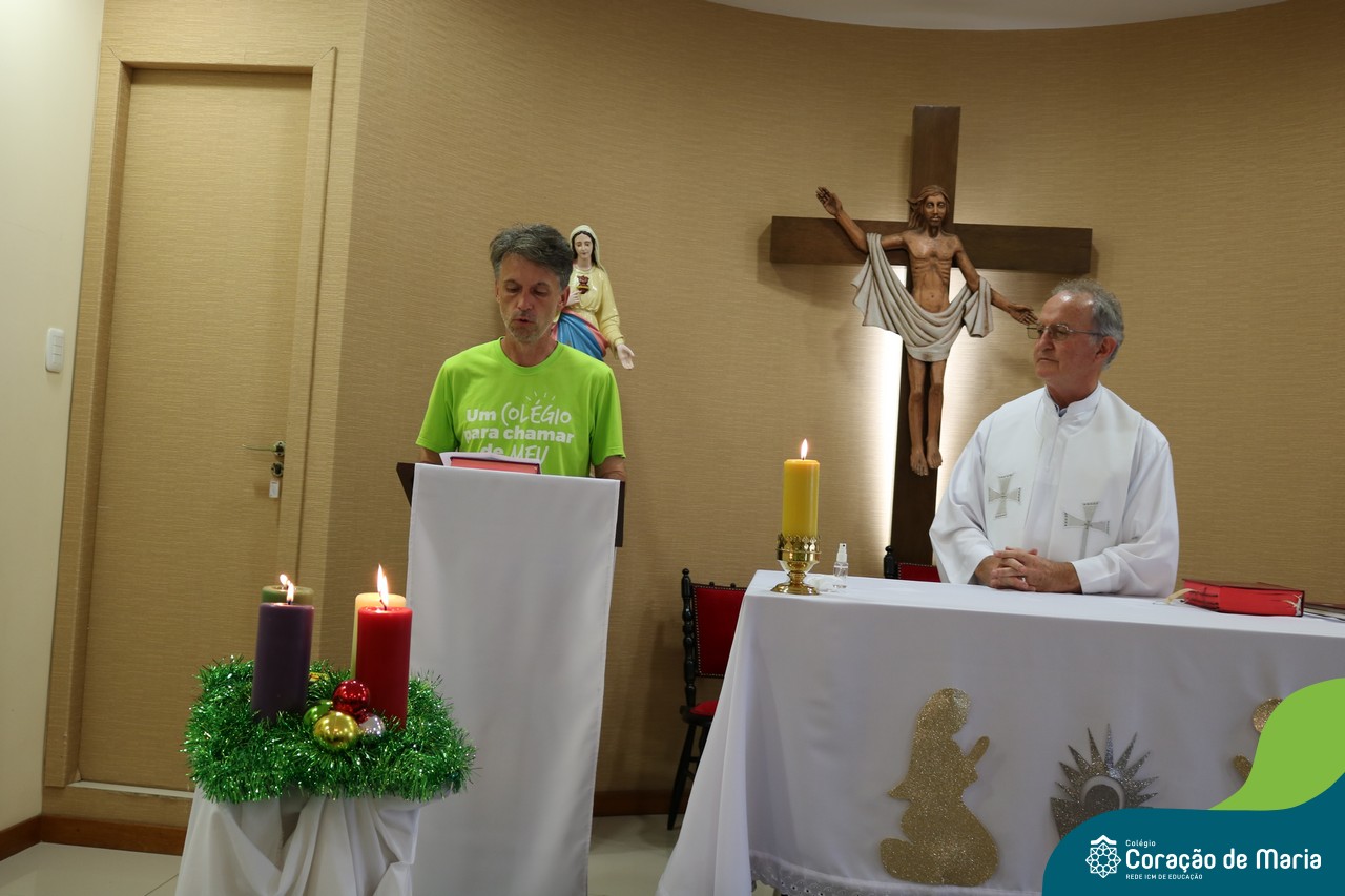 Os educadores, no dia 22.12, celebraram antecipadamente o Natal. Durante a Missa se agradeceu pela vida, pelo ano letivo que se encerrou; também se homenageou a Diretora e a Vice-diretora e foi realizado um lindo momento de envio para a Irmã Georgina, que assume uma nova missão em Bagé. Após houve confraternização oferecida pela direção.