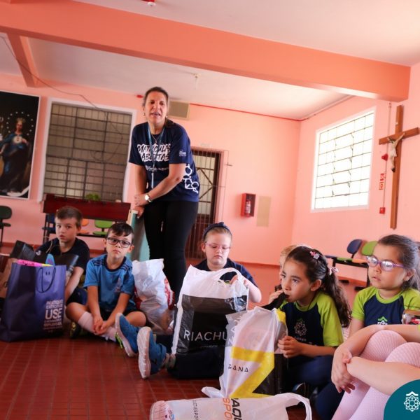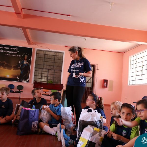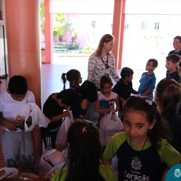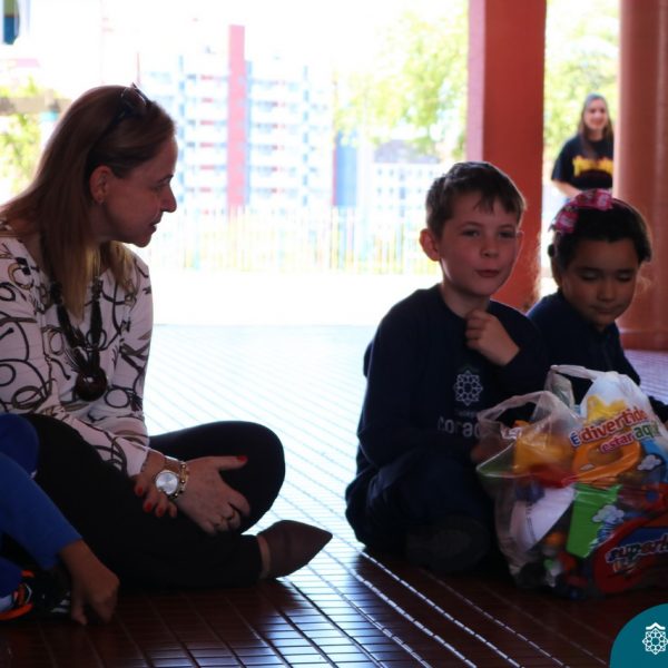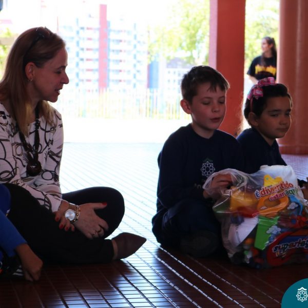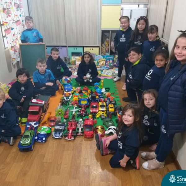 O Turno Extracurricular desenvolveu no mês de outubro uma campanha de arrecadação de brinquedos e livros, tendo apoio dos alunos da Educação Infantil e Anos Iniciais. A ideia foi compartilhar alegria com crianças mais necessitadas, no mês destinando a elas. No dia 24 de outubro, professoras e alunos representantes da EMEI Montanha Russa vieram receber as expressivas e carinhosas doações aqui no Colégio.