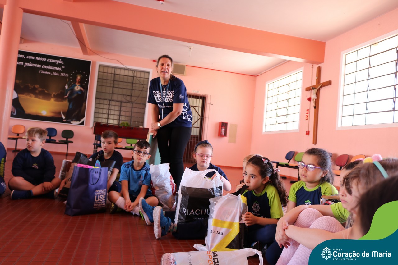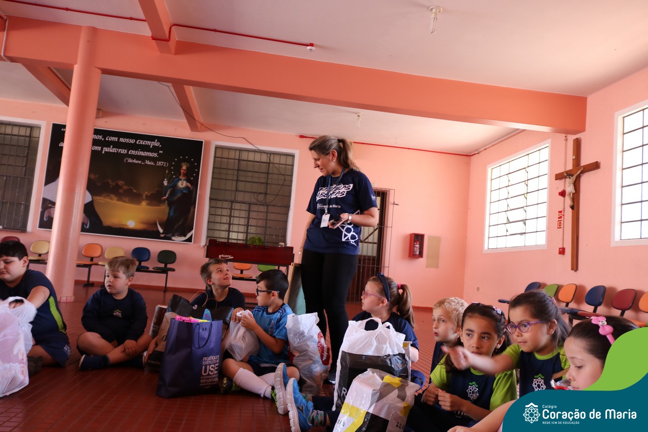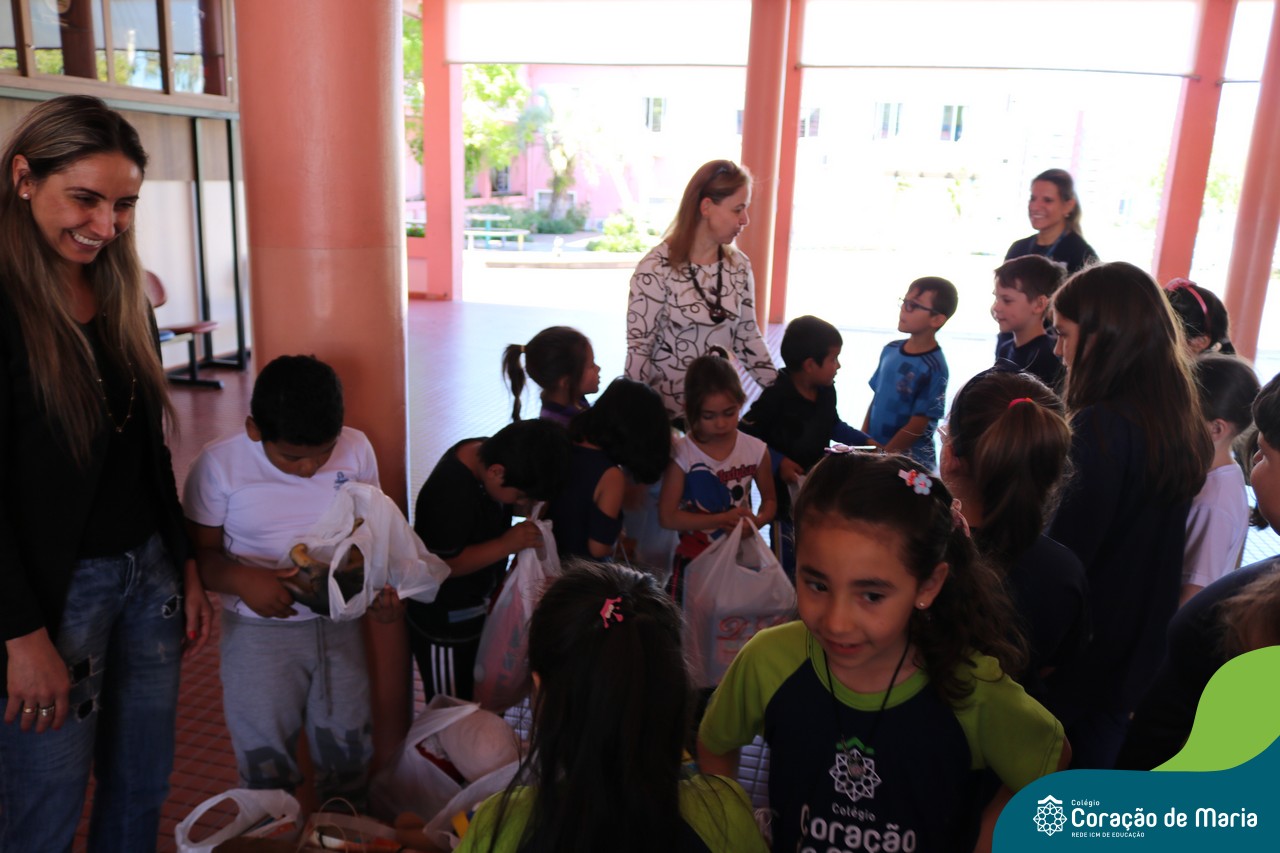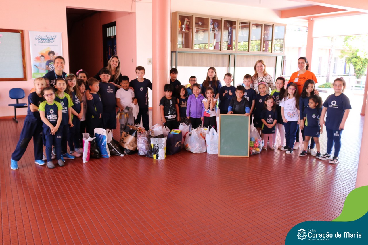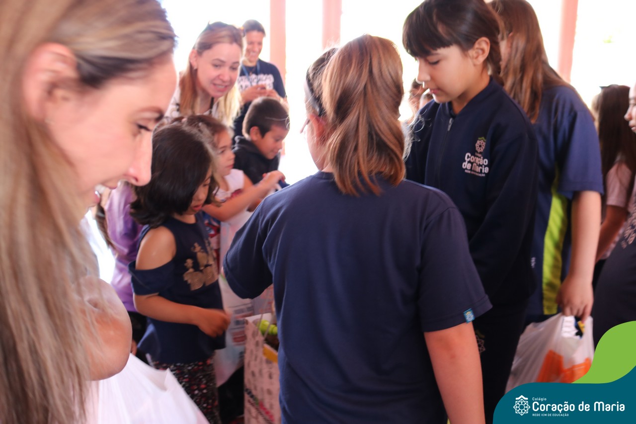 O Turno Extracurricular desenvolveu no mês de outubro uma campanha de arrecadação de brinquedos e livros, tendo apoio dos alunos da Educação Infantil e Anos Iniciais. A ideia foi compartilhar alegria com crianças mais necessitadas, no mês destinando a elas. No dia 24 de outubro, professoras e alunos representantes da EMEI Montanha Russa vieram receber as expressivas e carinhosas doações aqui no Colégio.