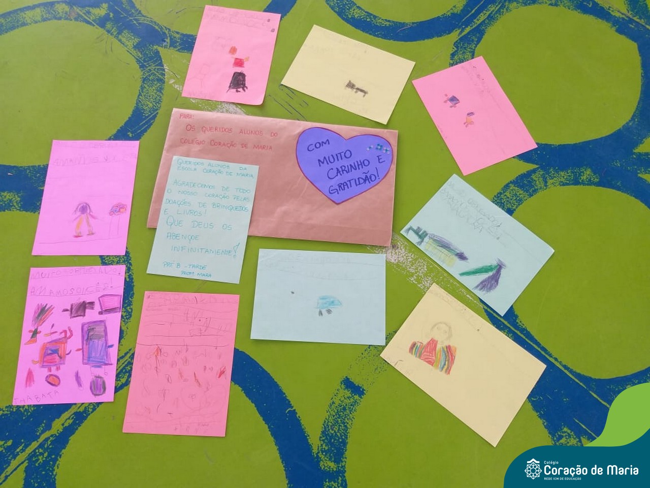 Como forma de expressar sua gratidão, as crianças da Montanha Russa enviaram para os alunos do Colégio Coração de Maria uma carta repleta de carinho e amor.