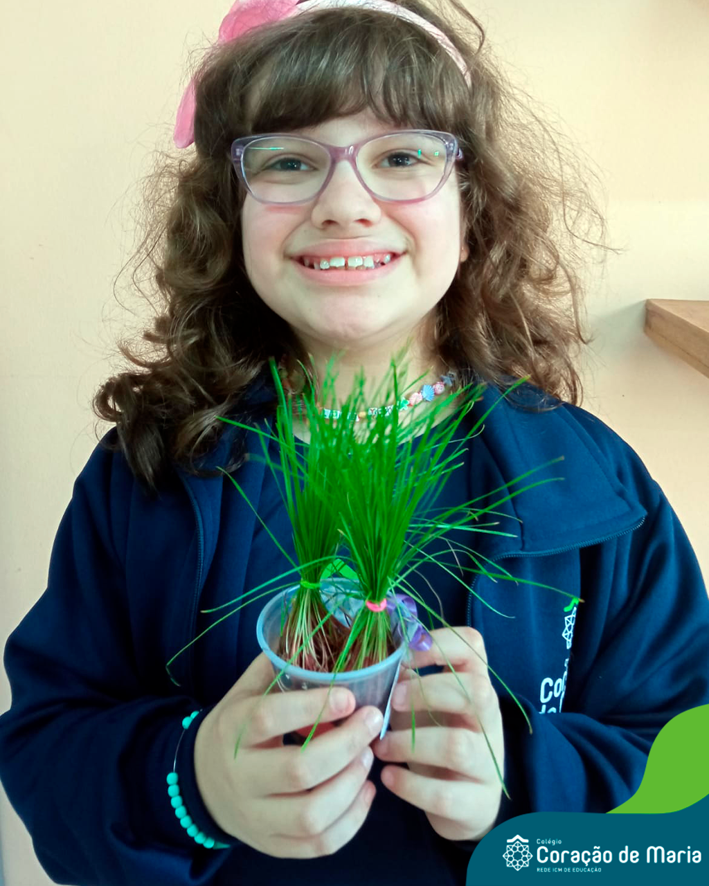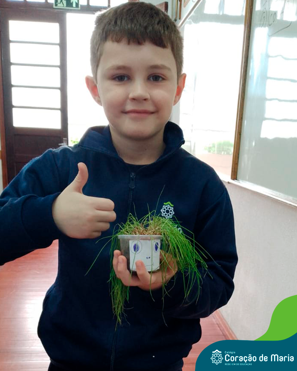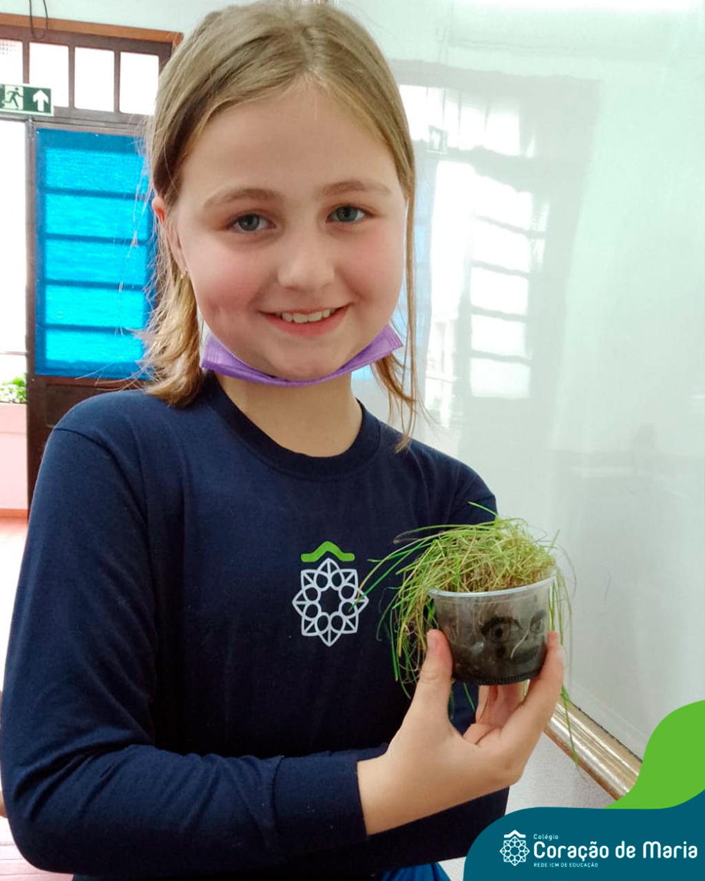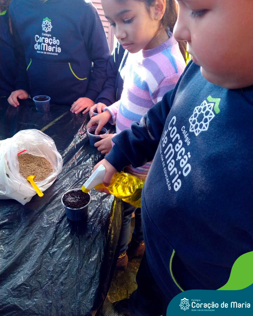 Para experienciar a teoria, os alunos plantaram sementes de alpiste acompanhando deste o plantio, o cultivo, a germinação e o crescimento, podendo construir e participar deste projeto de forma prática e envolvente.