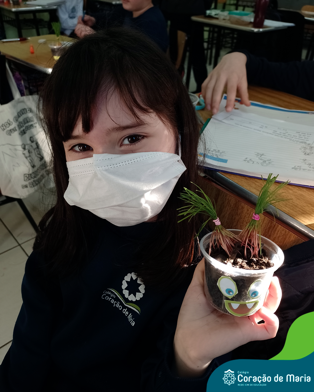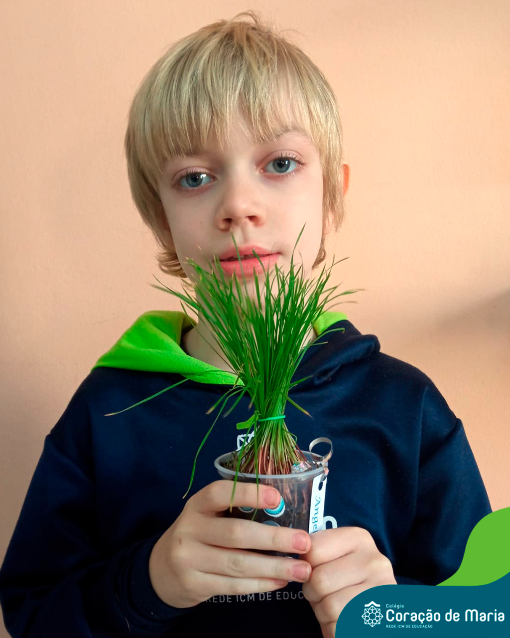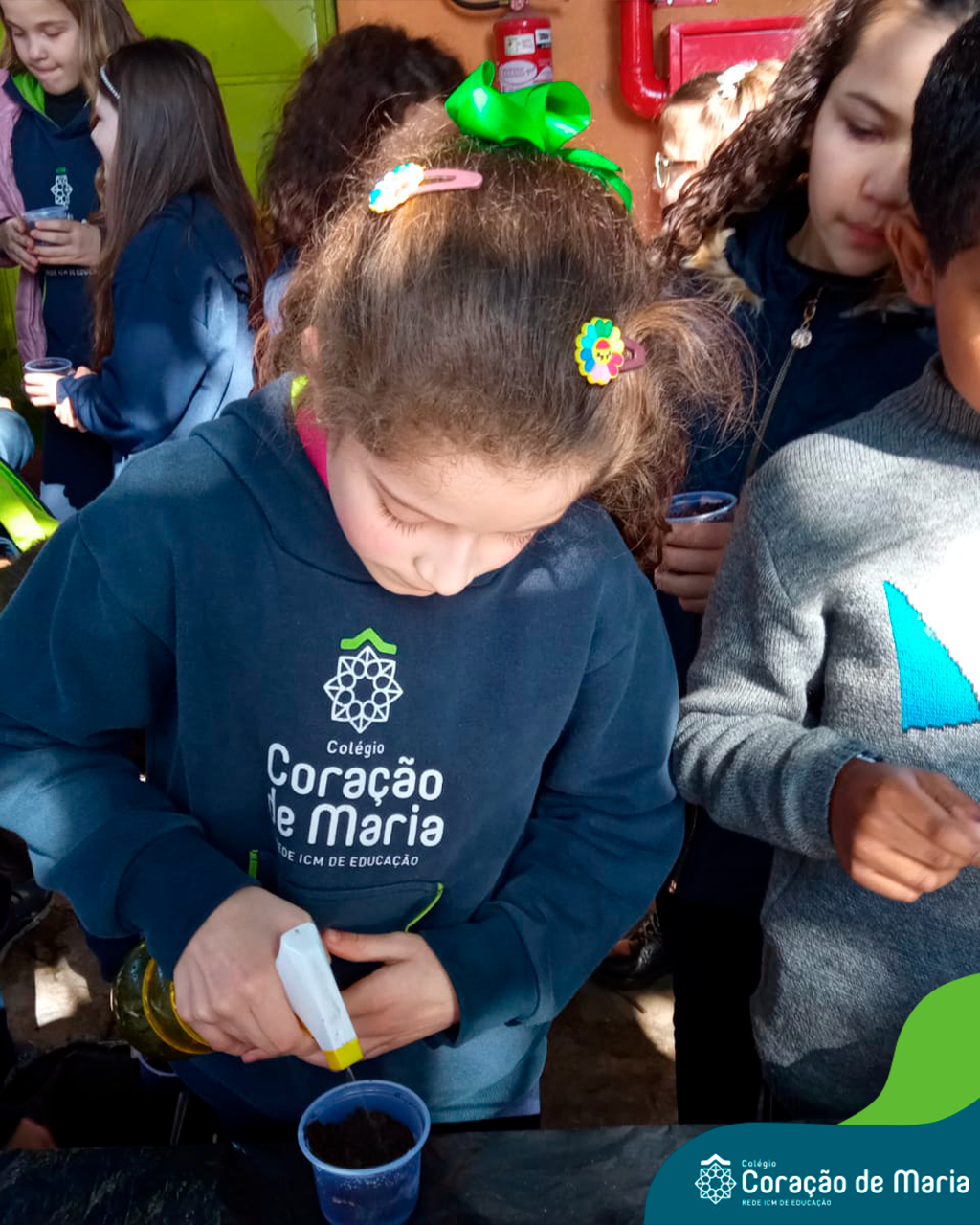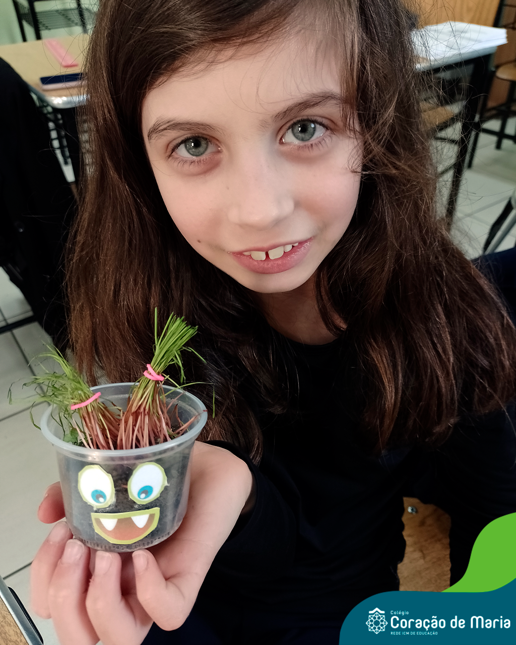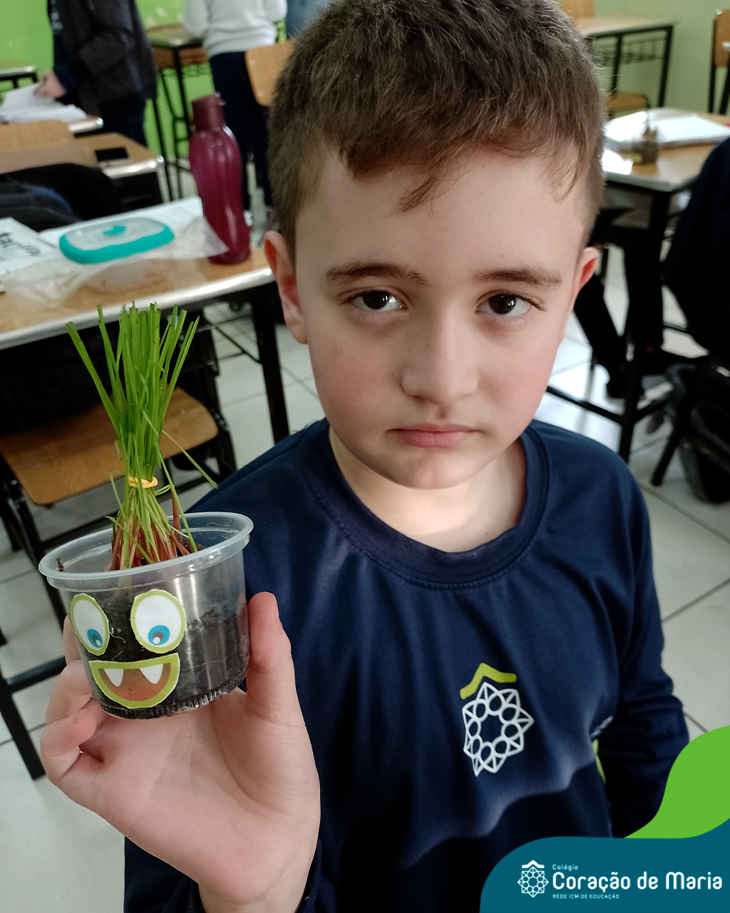 Para experienciar a teoria, os alunos plantaram sementes de alpiste acompanhando deste o plantio, o cultivo, a germinação e o crescimento, podendo construir e participar deste projeto de forma prática e envolvente.