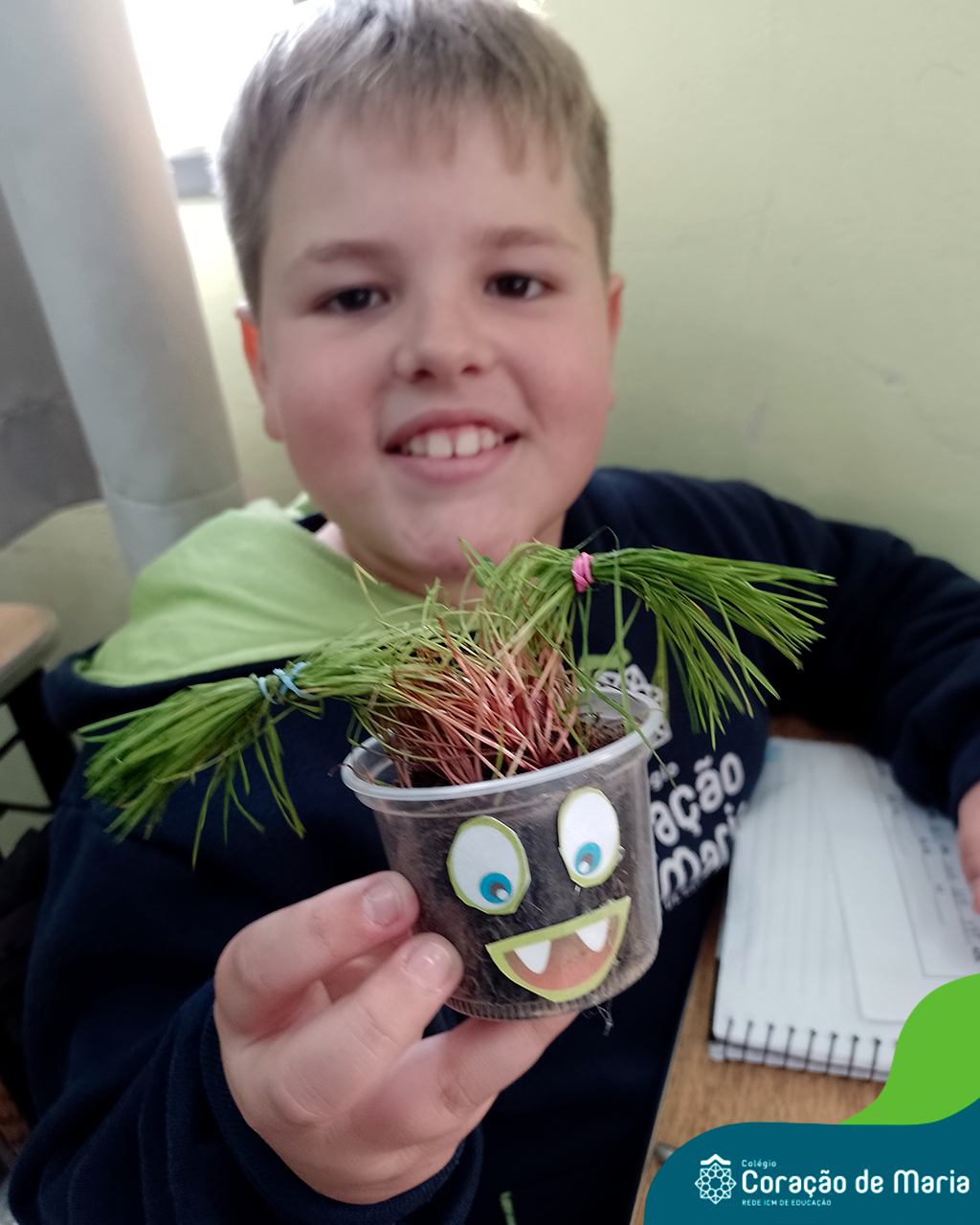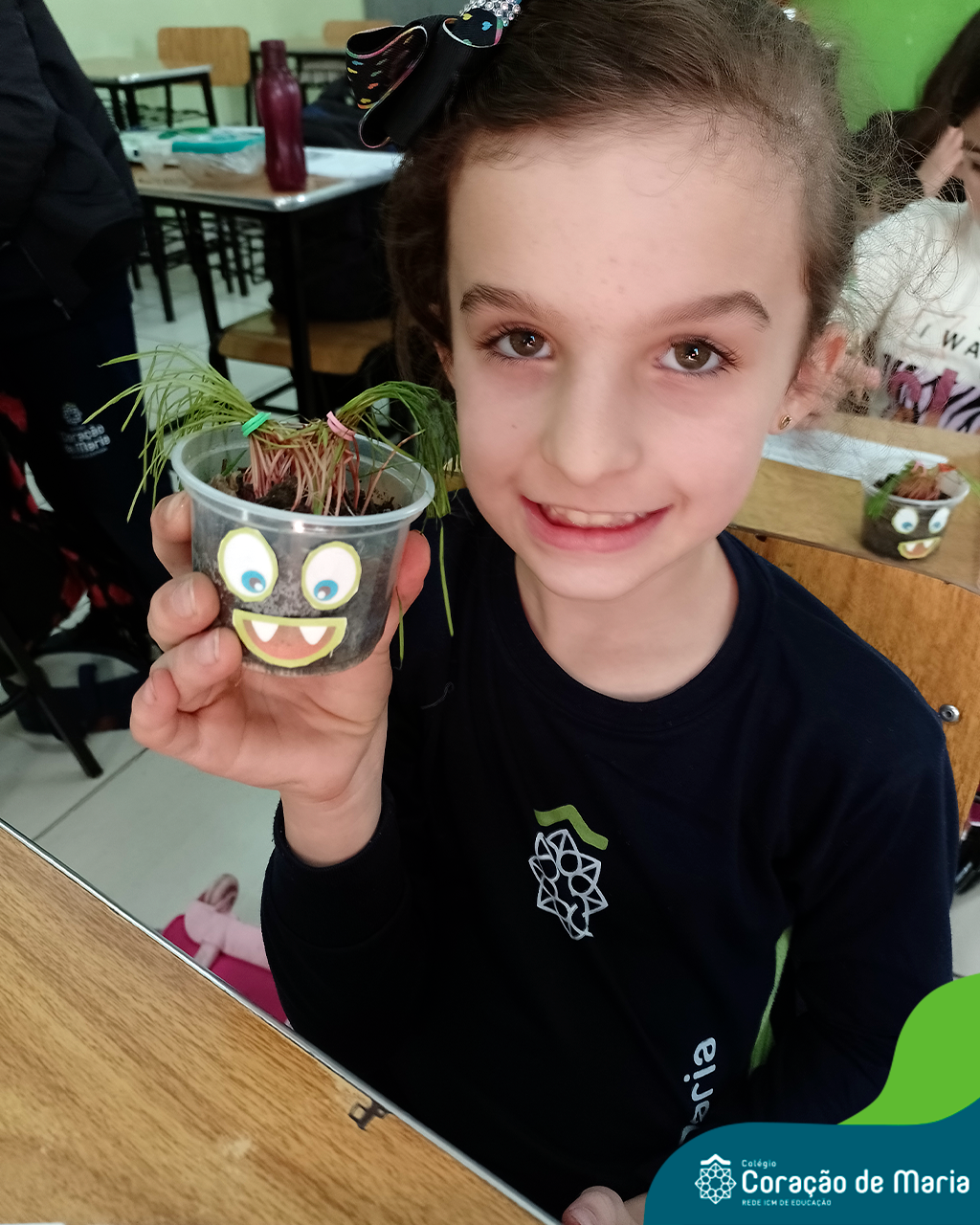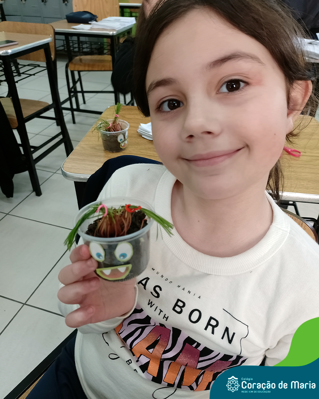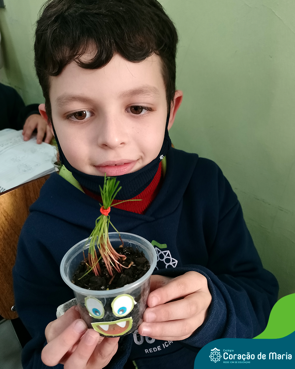 Para experienciar a teoria, os alunos plantaram sementes de alpiste acompanhando deste o plantio, o cultivo, a germinação e o crescimento, podendo construir e participar deste projeto de forma prática e envolvente.