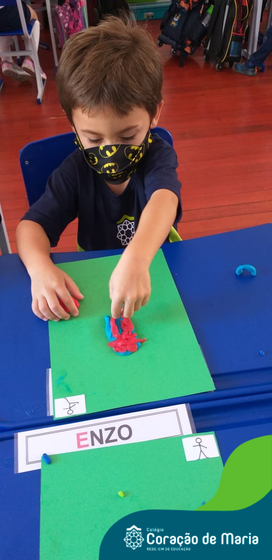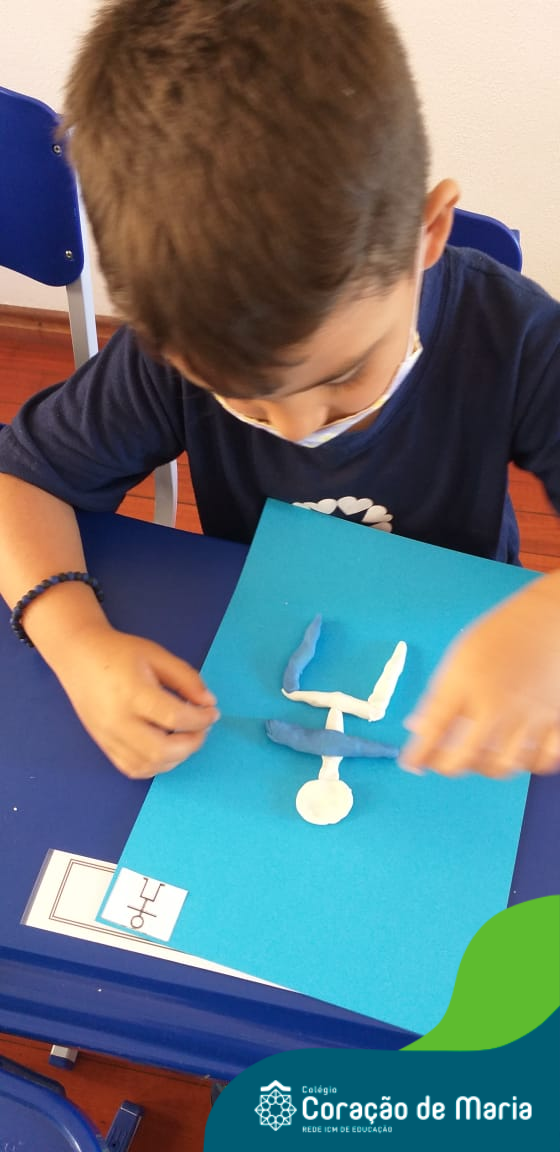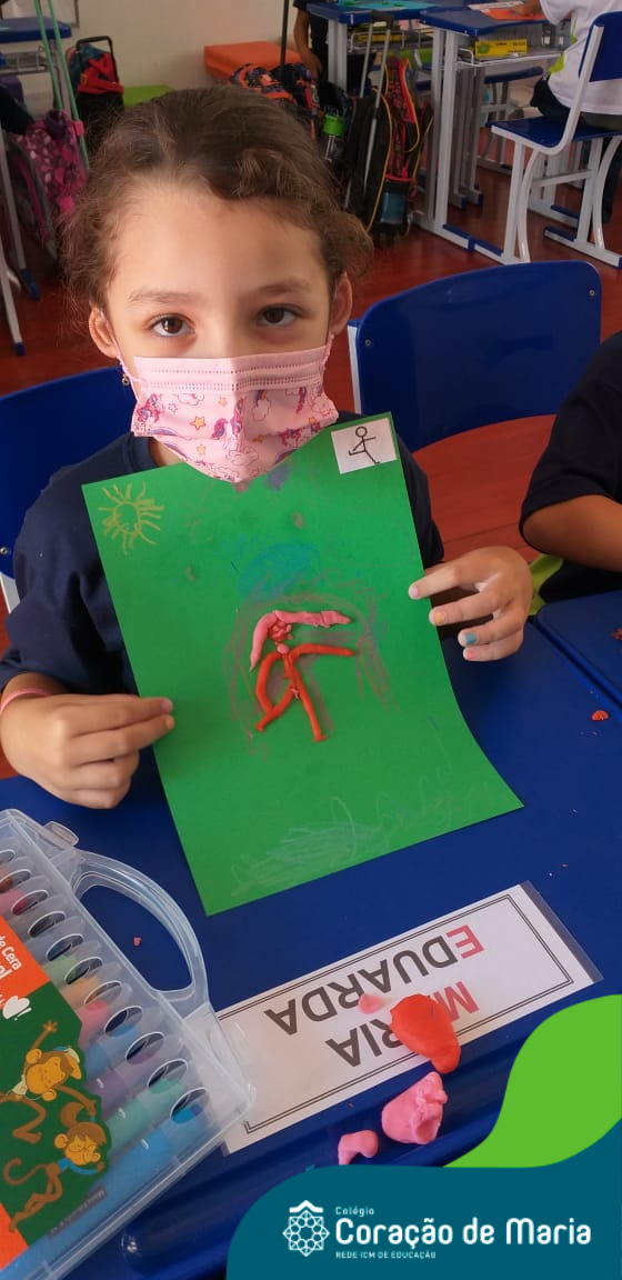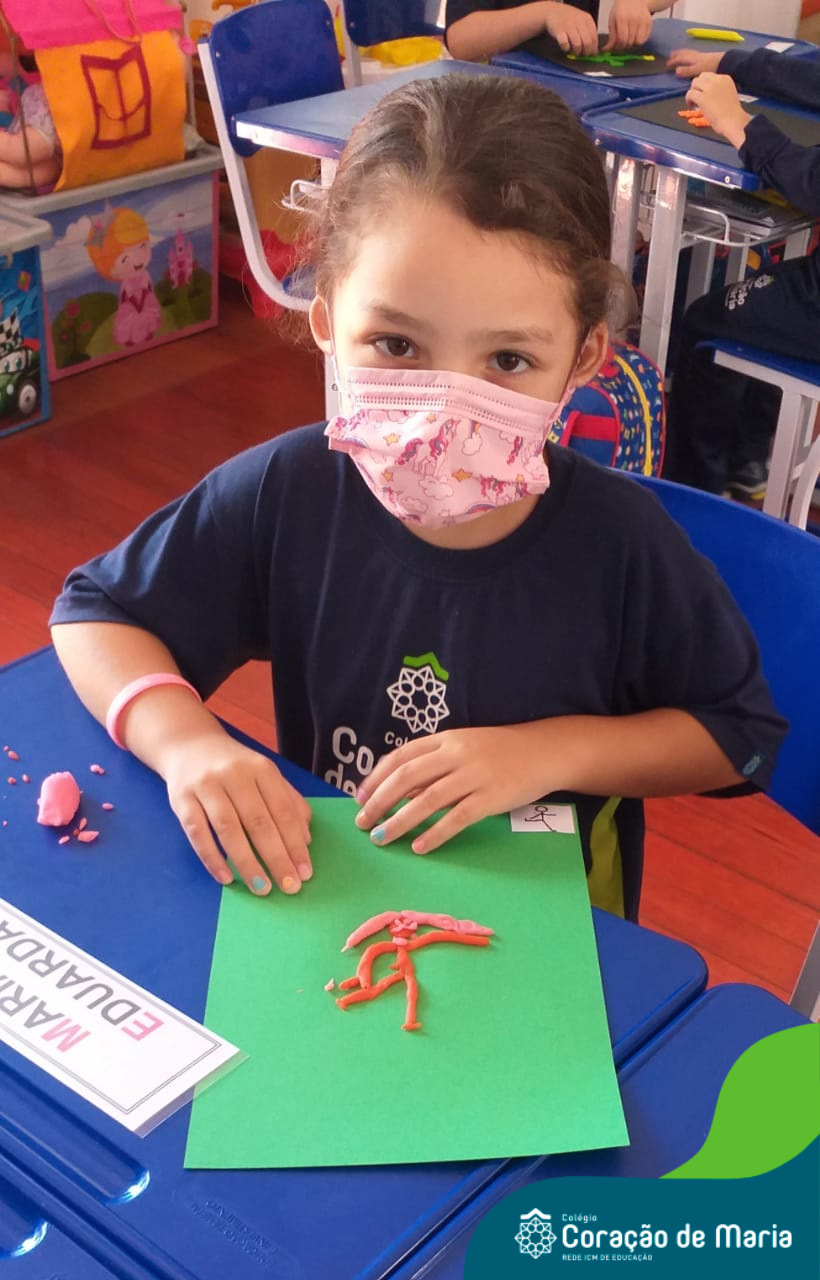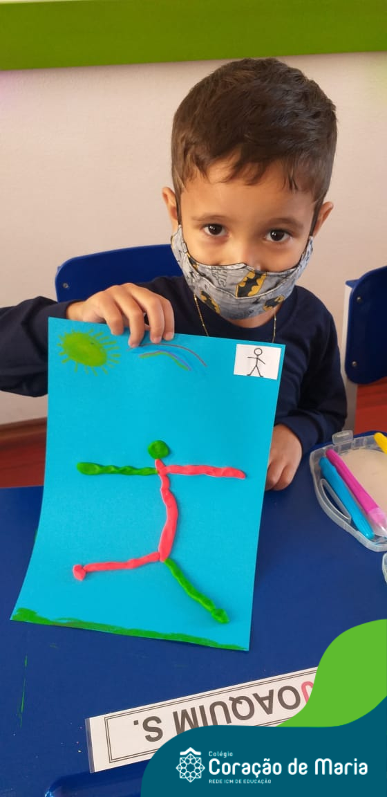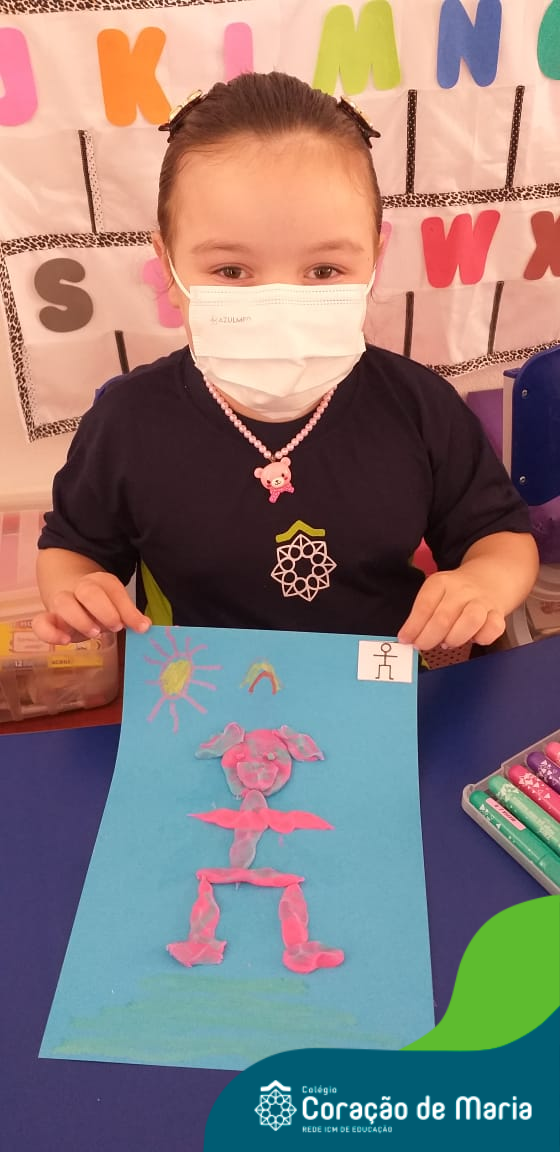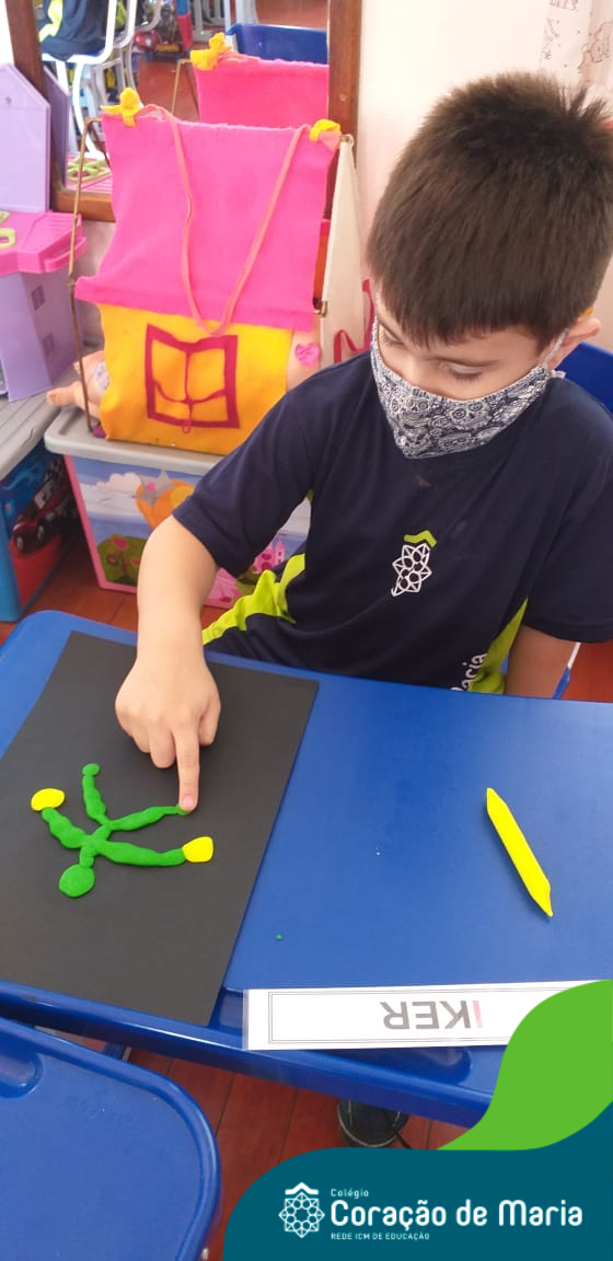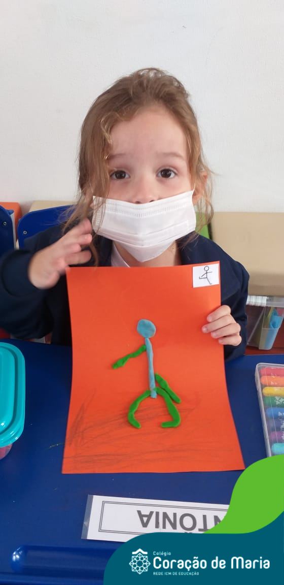 Uma das formas que a turma Pré 2B trabalhou o esquema corporal foi modelando o corpo com massinha. Desta forma, aprimoraram a habilidade motora fina, estimulando a criatividade e a concentração e descobrindo novas formas, cores e texturas.