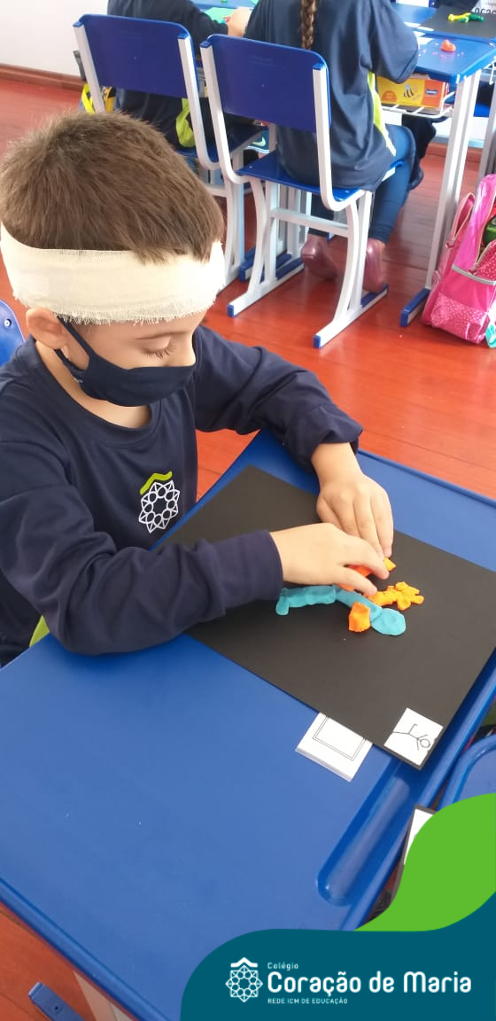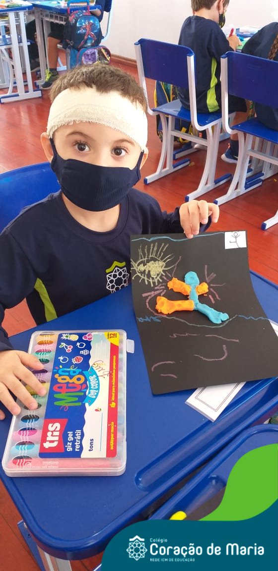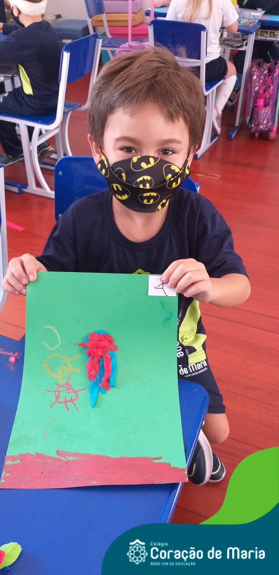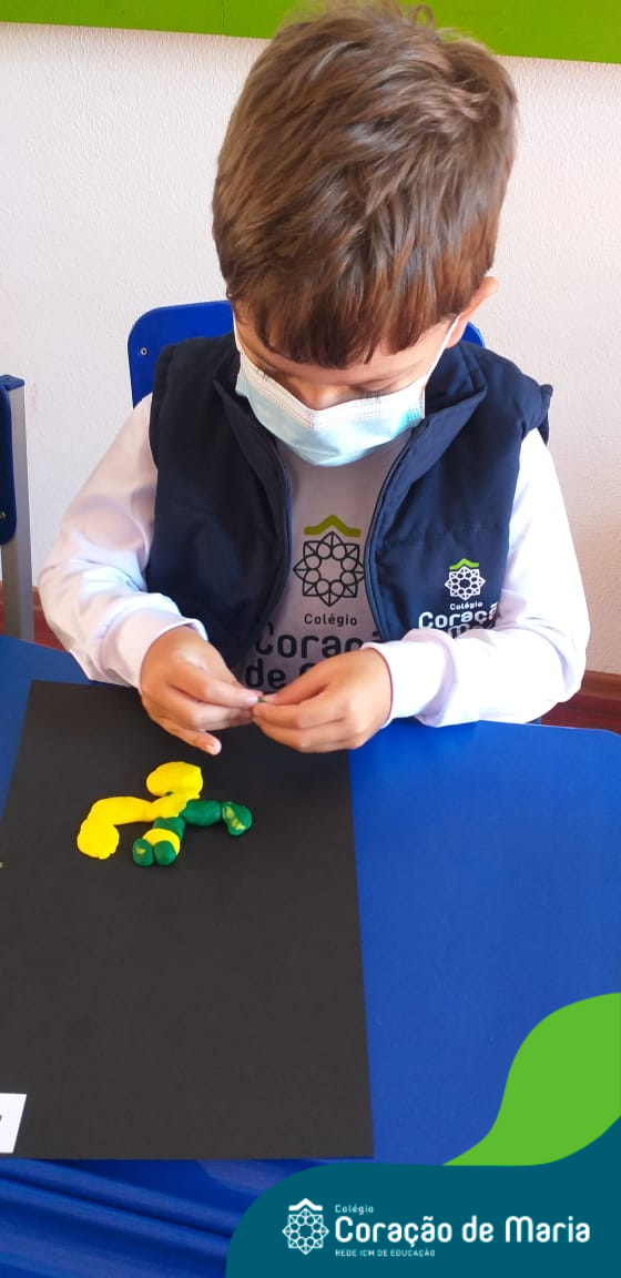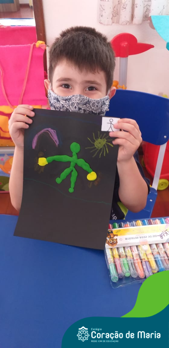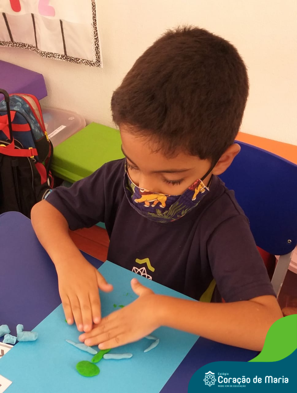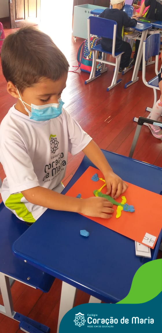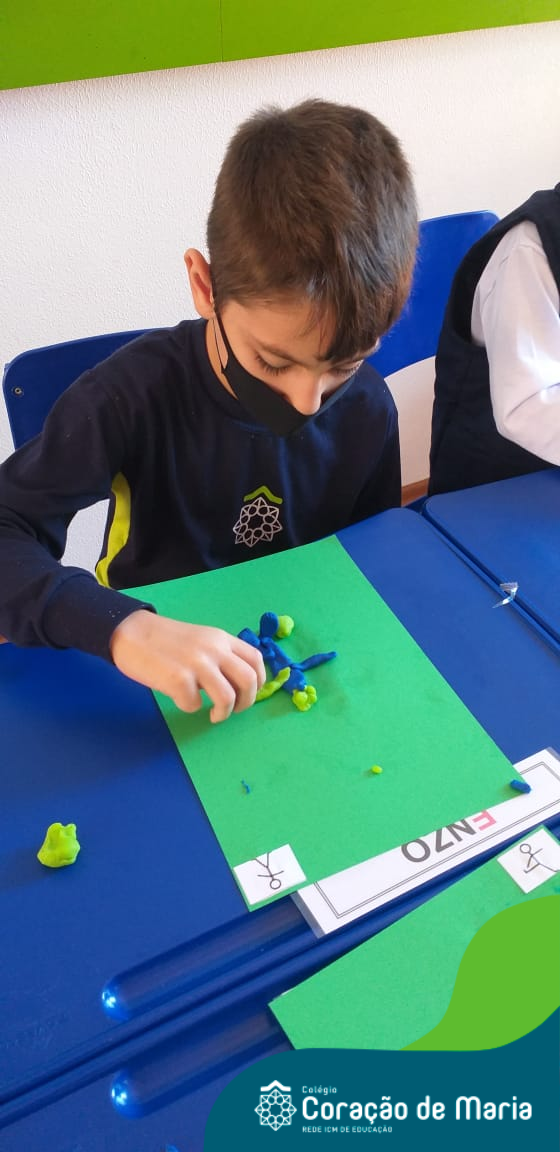 Uma das formas que a turma Pré 2B trabalhou o esquema corporal foi modelando o corpo com massinha. Desta forma, aprimoraram a habilidade motora fina, estimulando a criatividade e a concentração e descobrindo novas formas, cores e texturas.