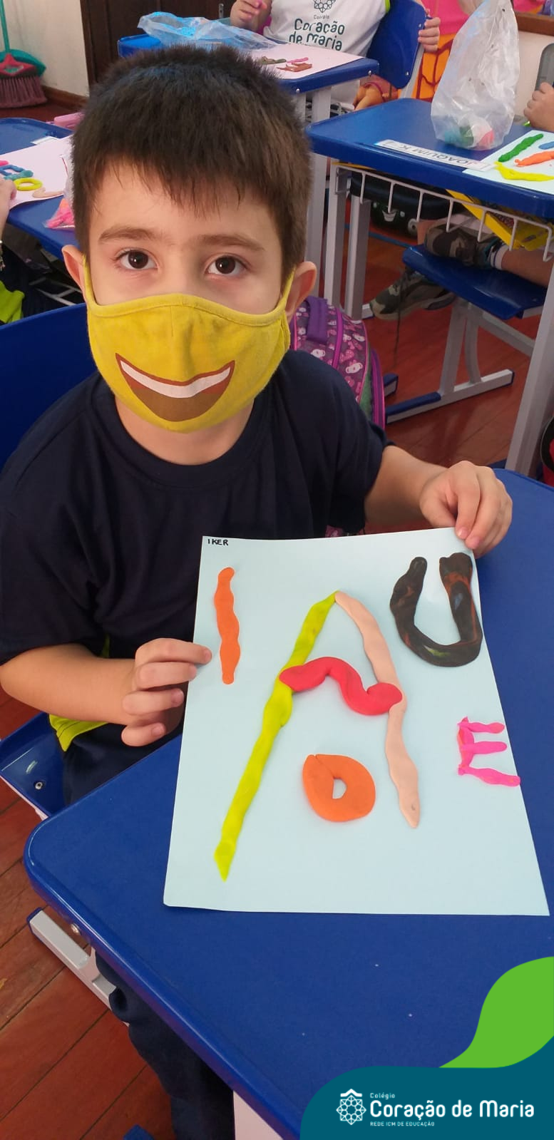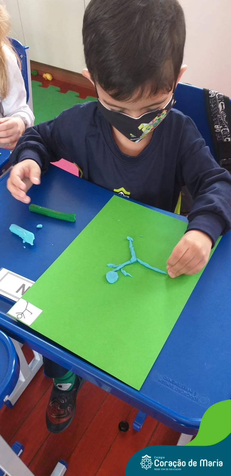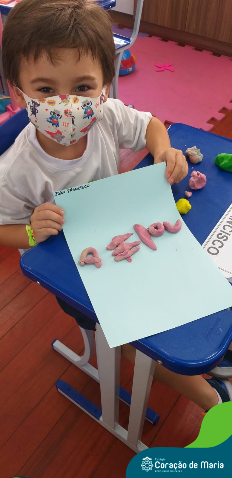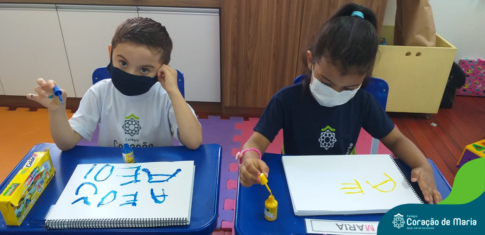 Essa descoberta aconteceu através de um circuito, onde experienciaram e manipularam materiais como, areia colorida, massinha de modelar e tinta para escrever, modelar e fazer o traçado das novas amigas. Foi um momento cheio de significados, partilha e integração, além de desenvolver e aprimorar novas habilidades.