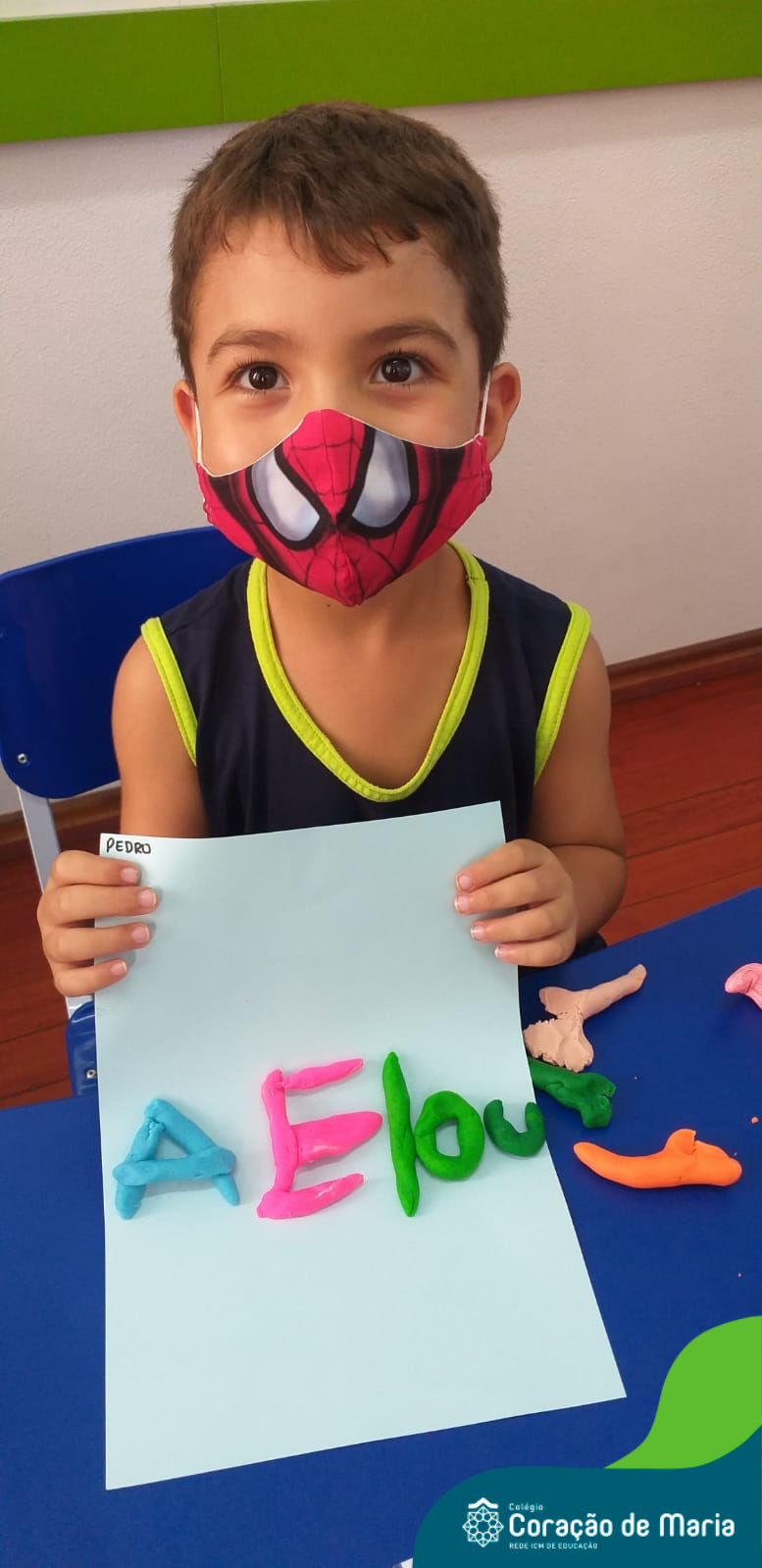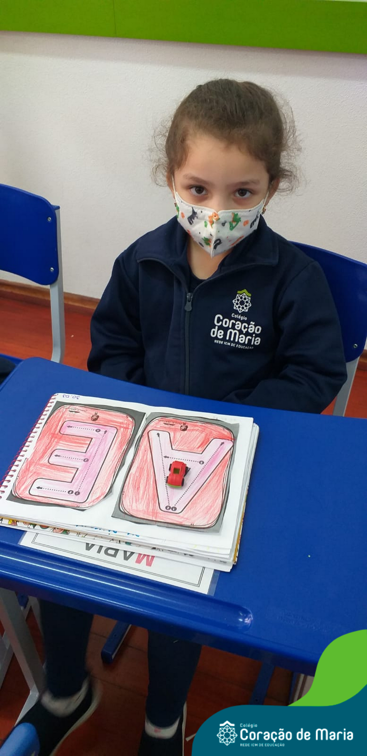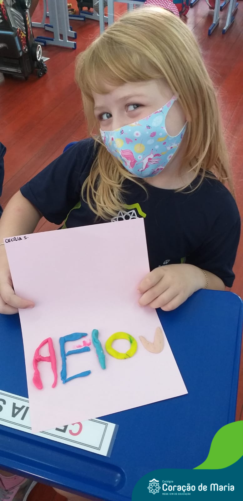 A turma Pré 2B descobriu cinco novas amigas muito importantes no processo de alfabetização e letramento, as vogais.