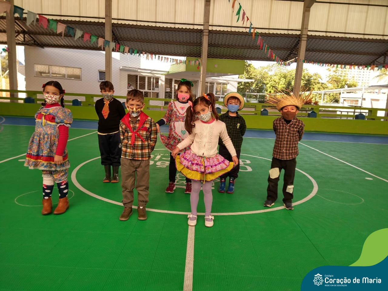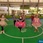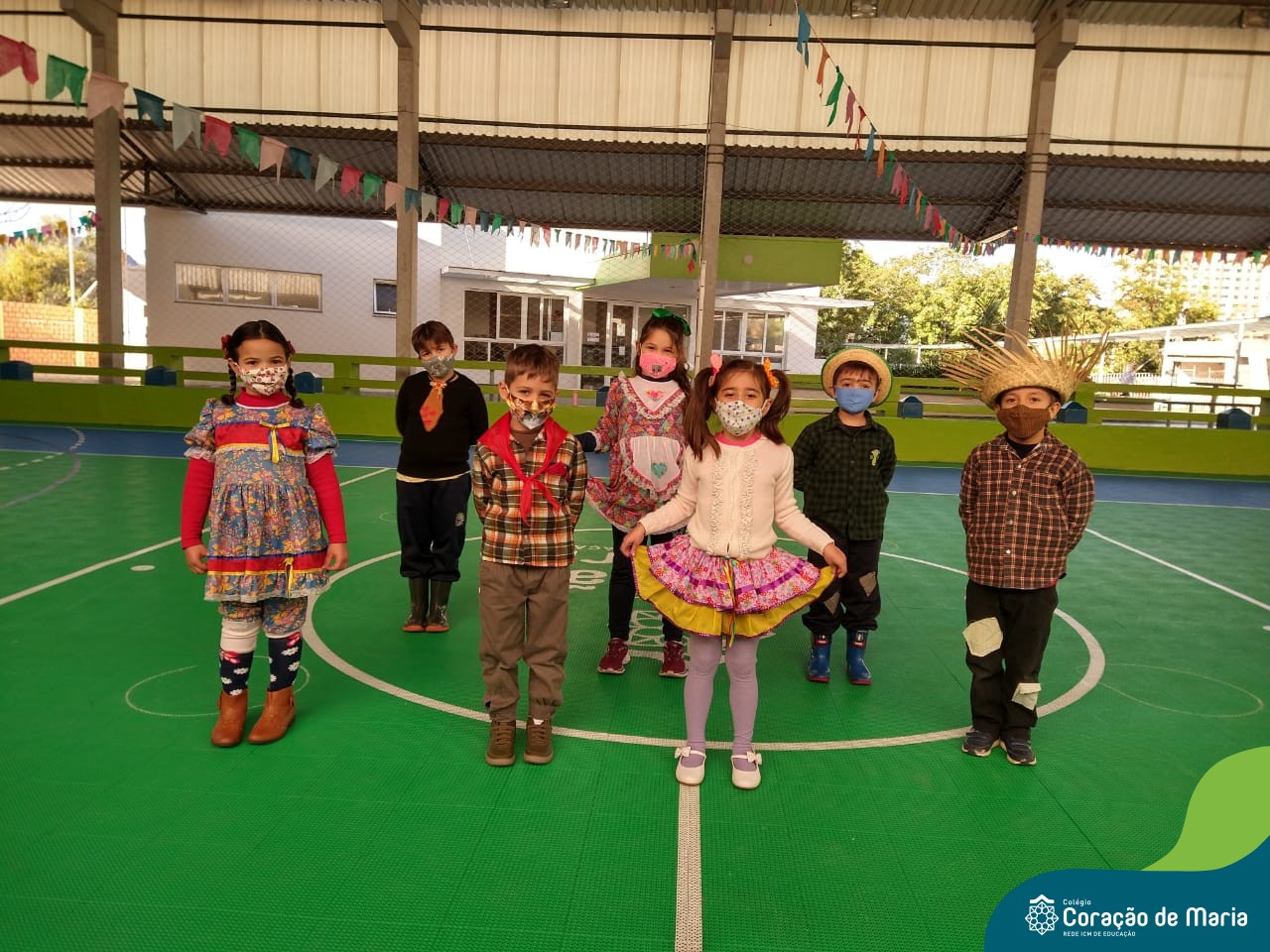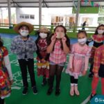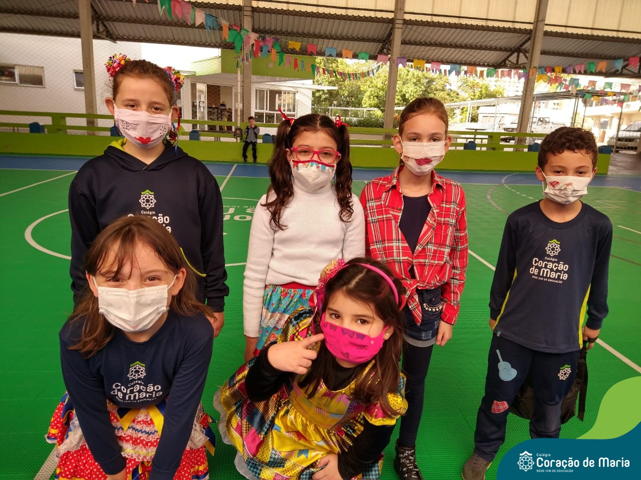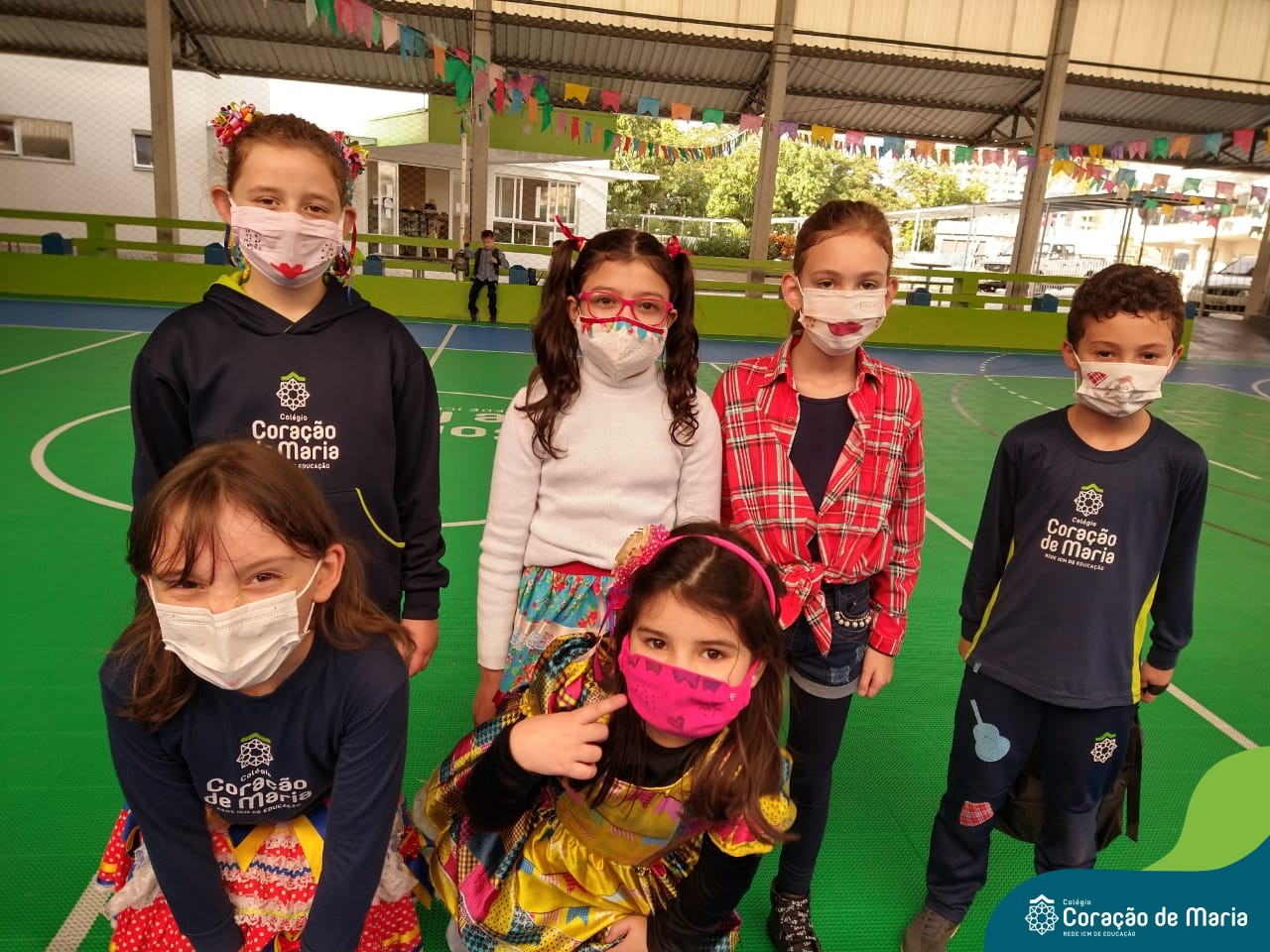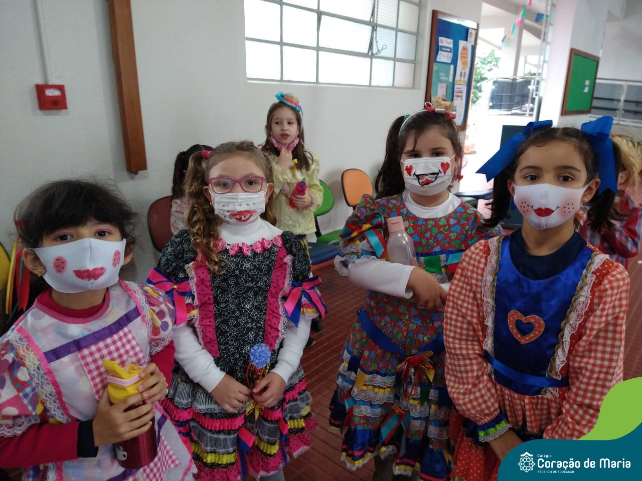 As aulas de Educação Física na Educação infantil e Anos Iniciais estão bem juninas neste mês. A professora Fabiana nos enviou alguns registros da Quadrilha e das máscaras temáticas confeccionadas.