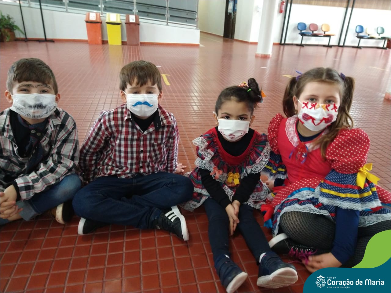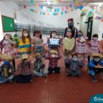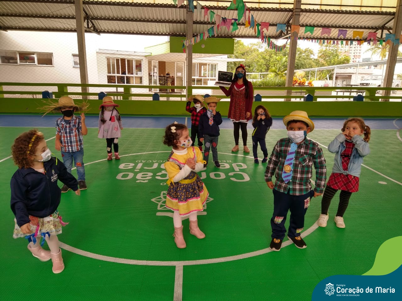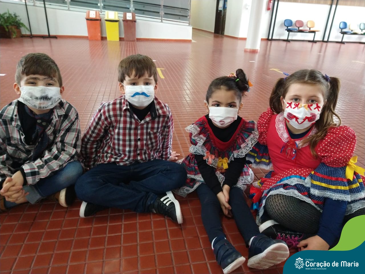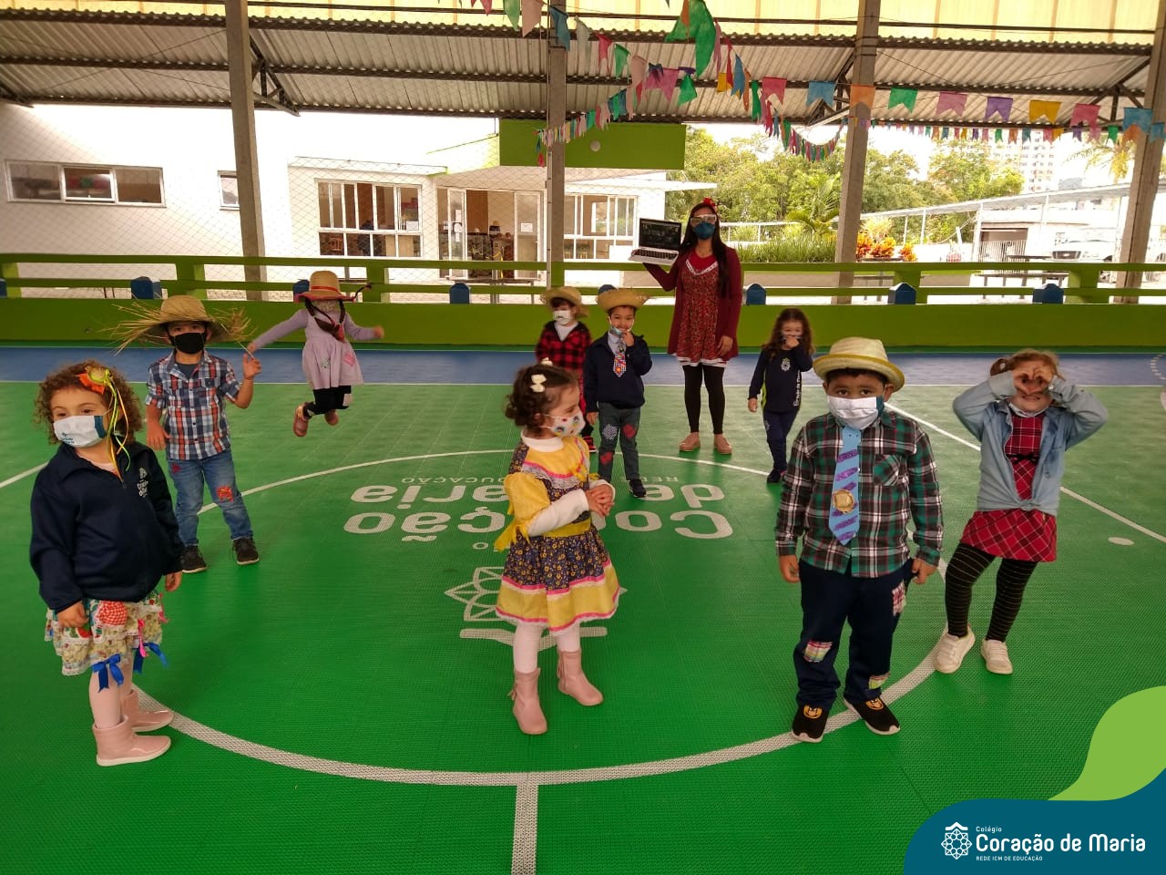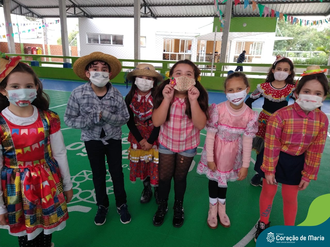 As aulas de Educação Física na Educação infantil e Anos Iniciais estão bem juninas neste mês. A professora Fabiana nos enviou alguns registros da Quadrilha e das máscaras temáticas confeccionadas.