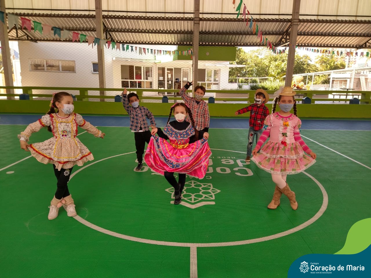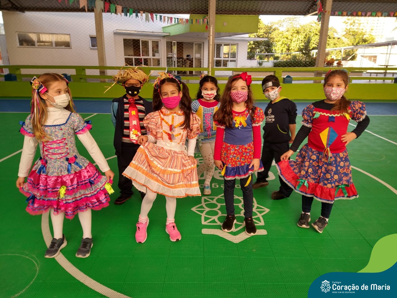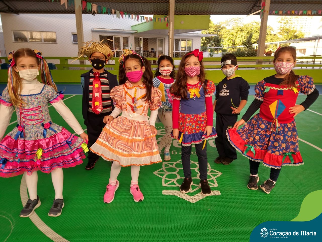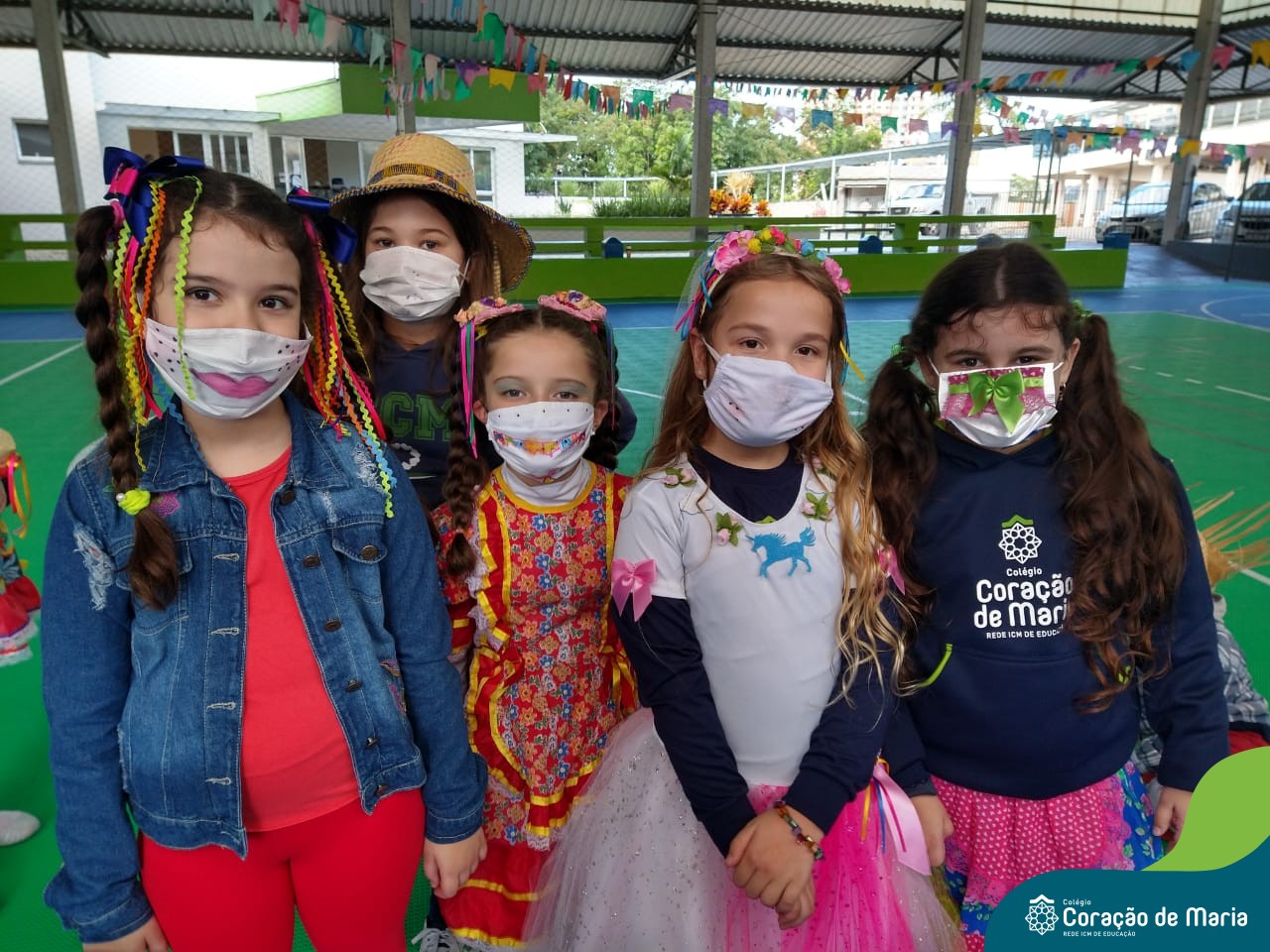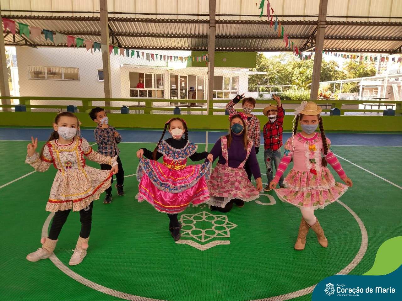 As aulas de Educação Física na Educação infantil e Anos Iniciais estão bem juninas neste mês. A professora Fabiana nos enviou alguns registros da Quadrilha e das máscaras temáticas confeccionadas.