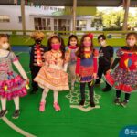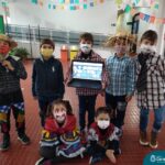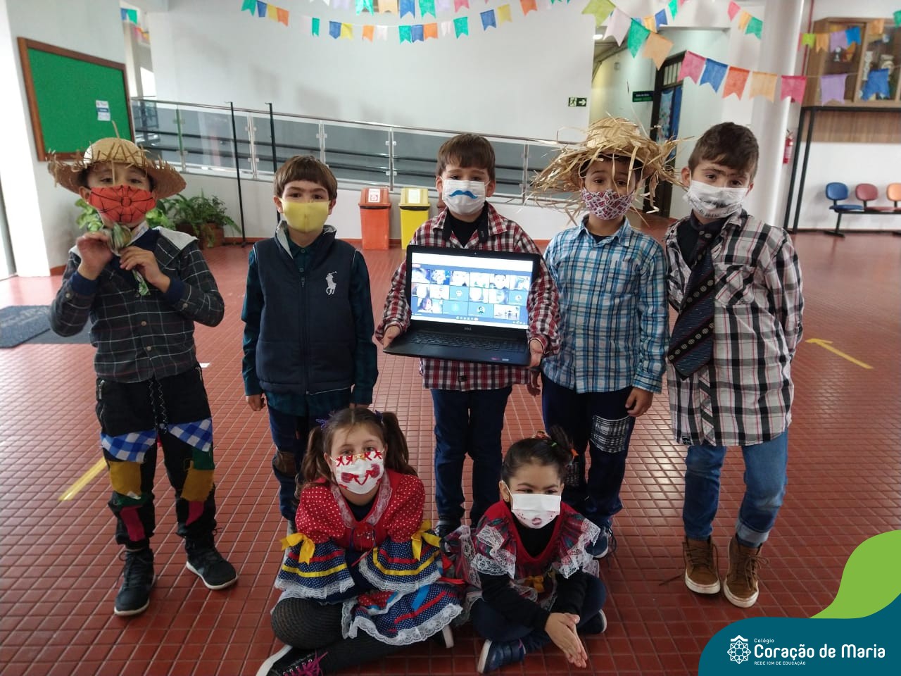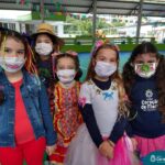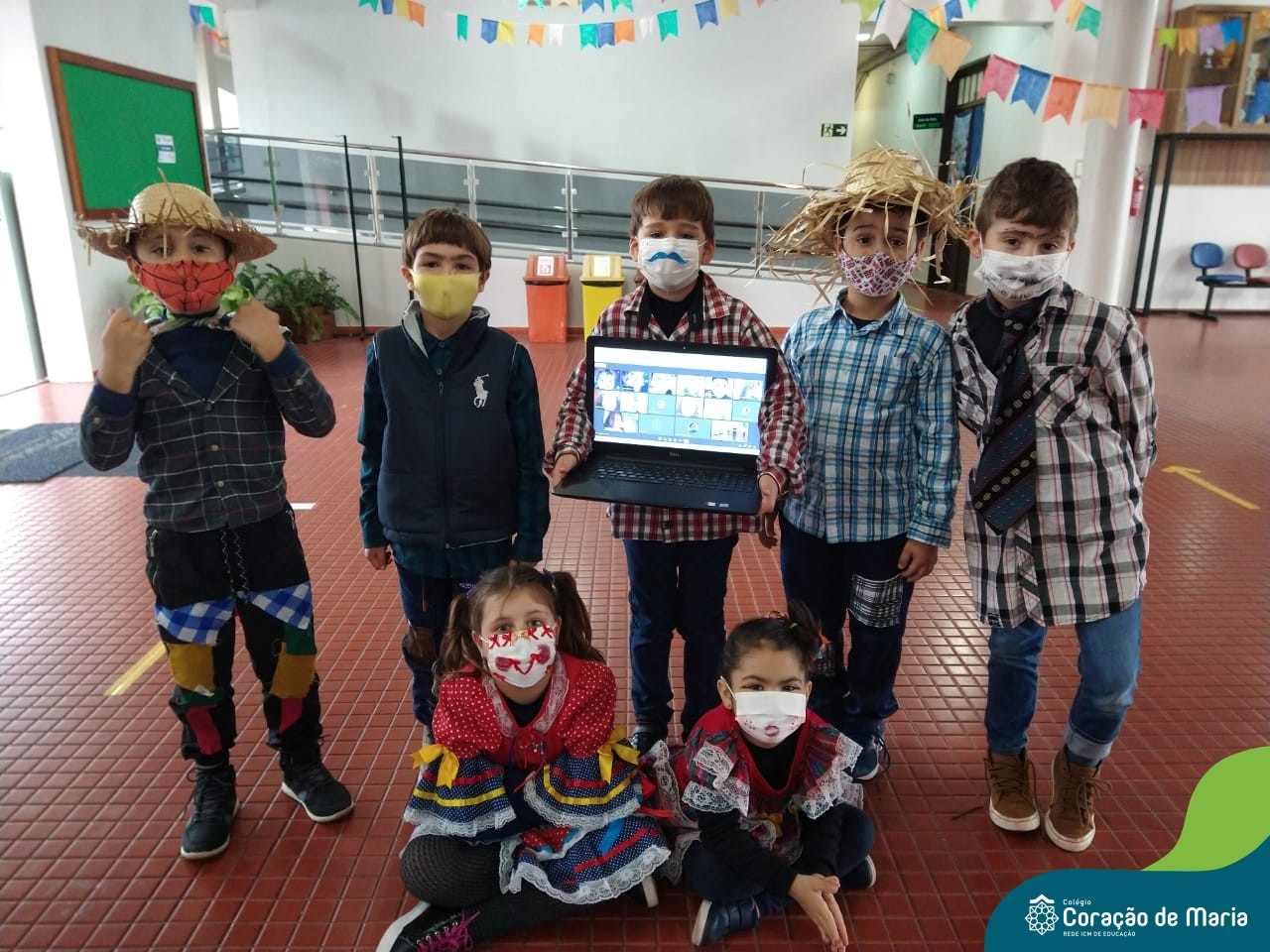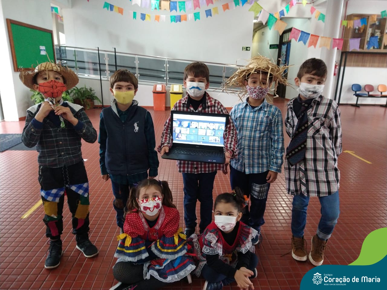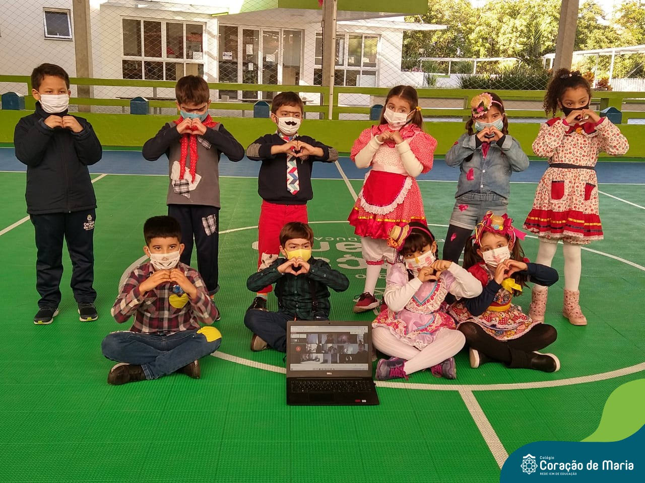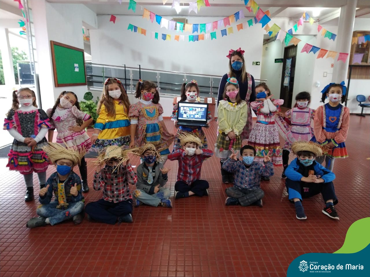 As aulas de Educação Física na Educação infantil e Anos Iniciais estão bem juninas neste mês. A professora Fabiana nos enviou alguns registros da Quadrilha e das máscaras temáticas confeccionadas.