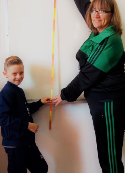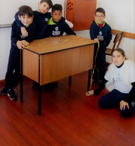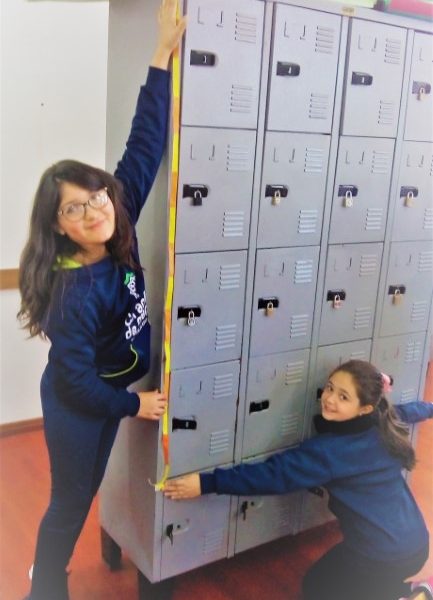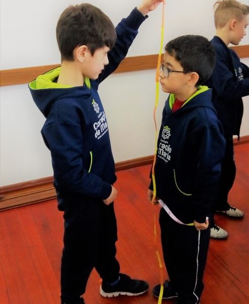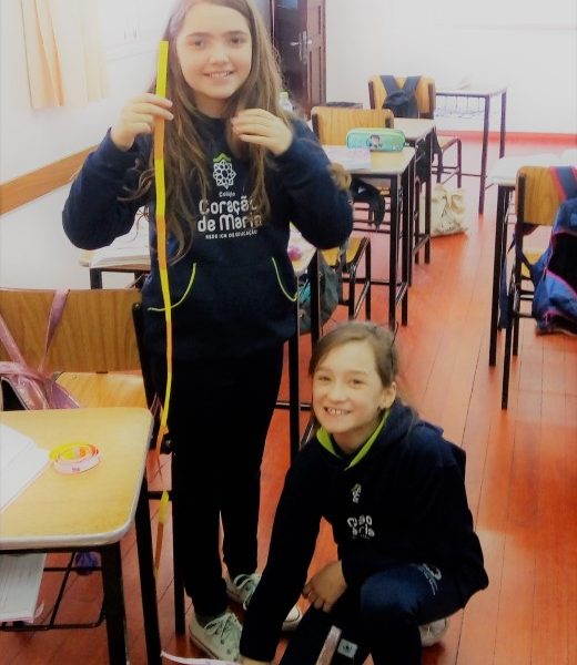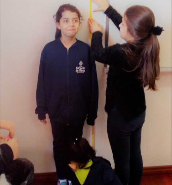 Os alunos da Turma 33 (3º ano do Ensino Fundamental) refletiram sobre como eram verificadas as medidas antes da existência dos equipamentos. Colocando a “mão na trena”, formaram grupos para verificar o tamanho de alguns objetos da sala de aula. Já que todos estão crescendo em conhecimento, mas também em estatura, verificaram a altura e construíram um gráfico com as medidas de cada colega e da professora.
