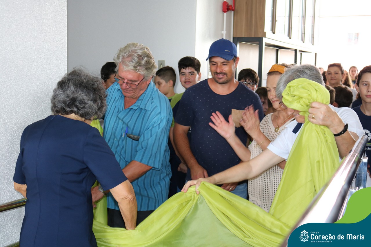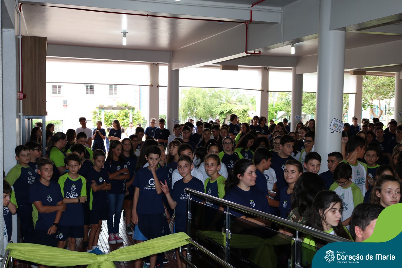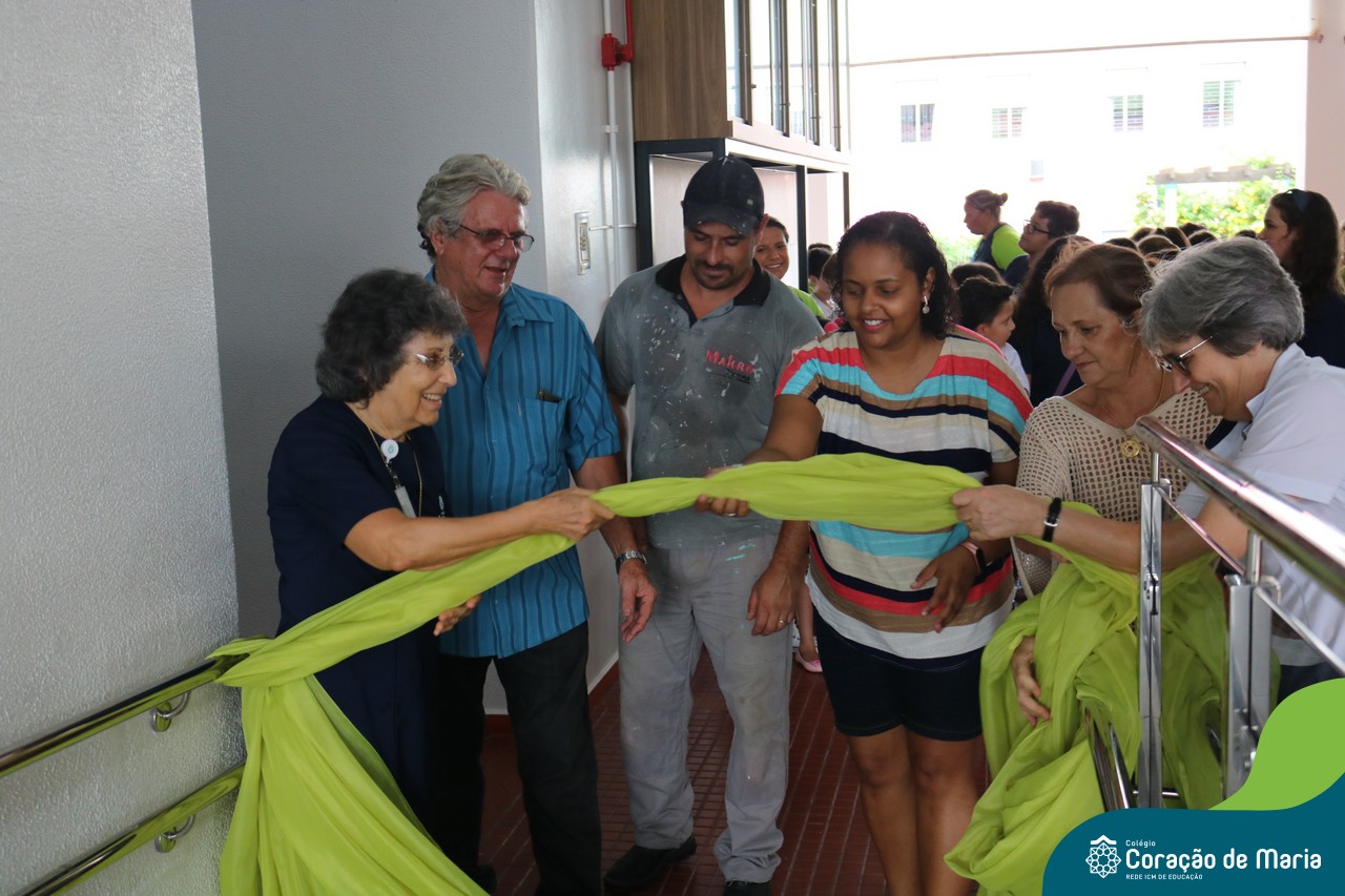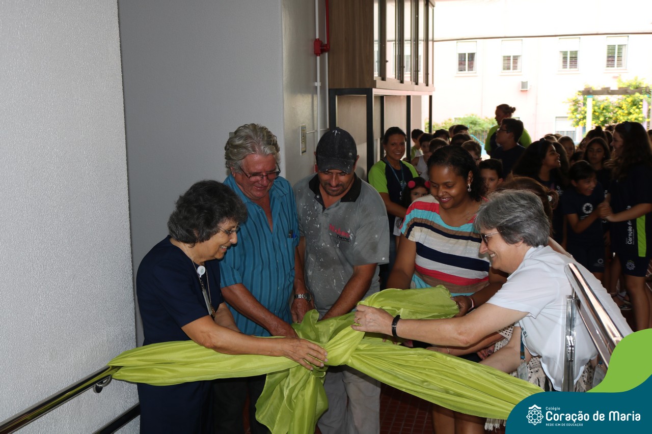Após o desenlace da fita inaugural, os alunos e educadores foram convidados a acessar o segundo andar pela rampa.