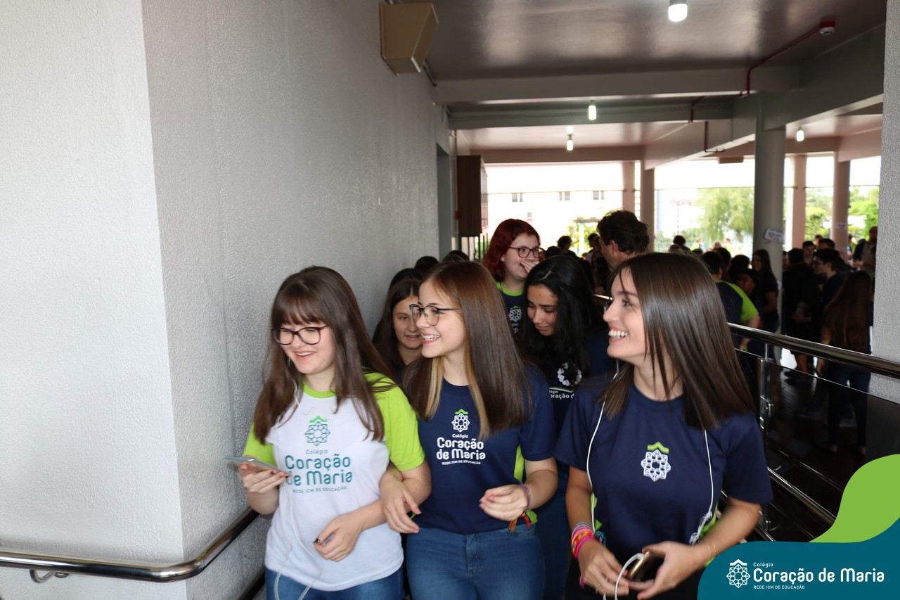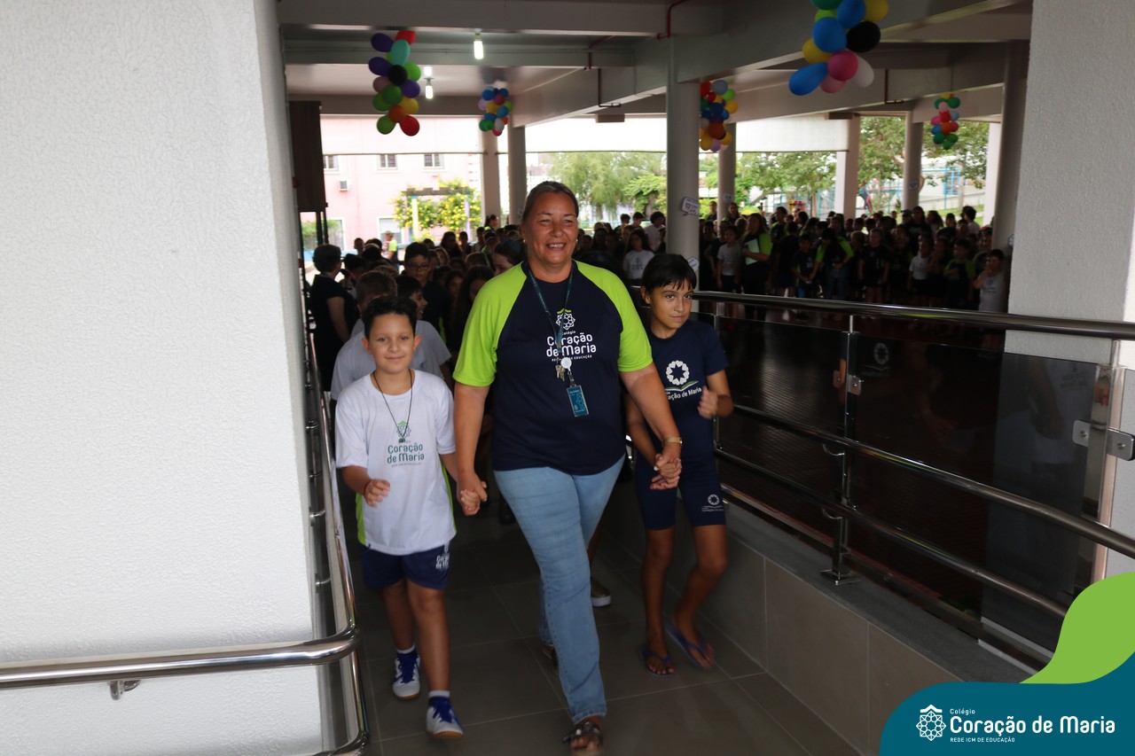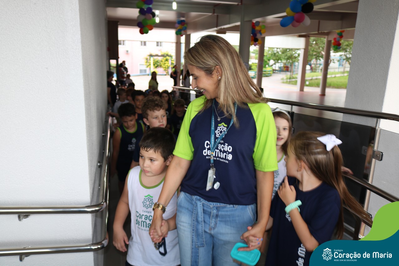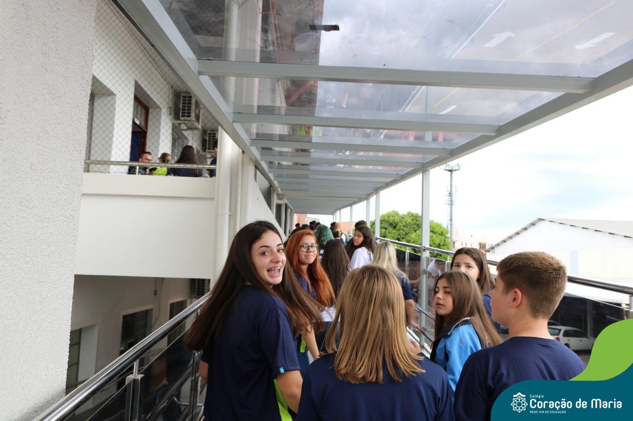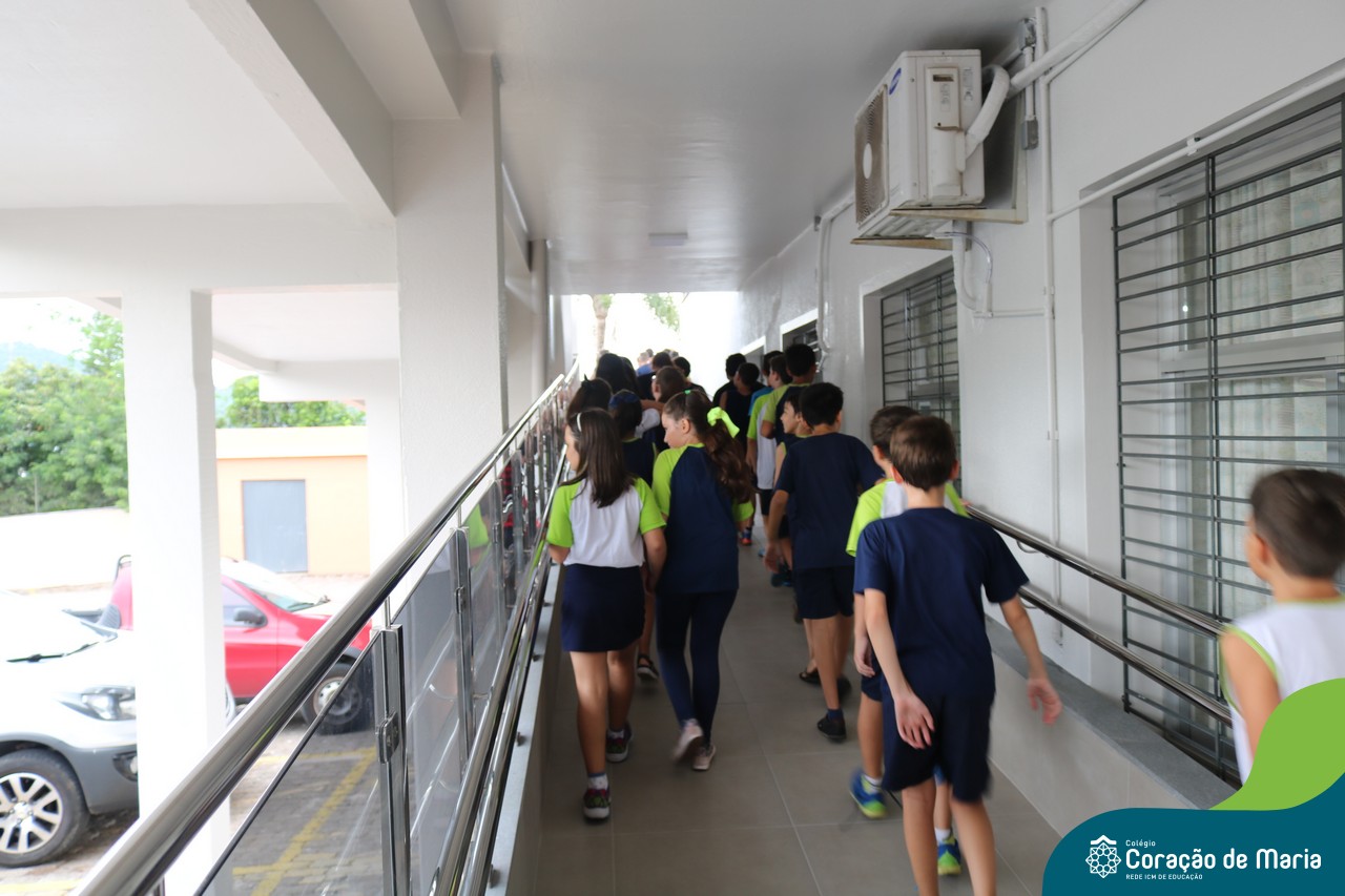 Após o desenlace da fita inaugural, os alunos e educadores foram convidados a acessar o segundo andar pela rampa.