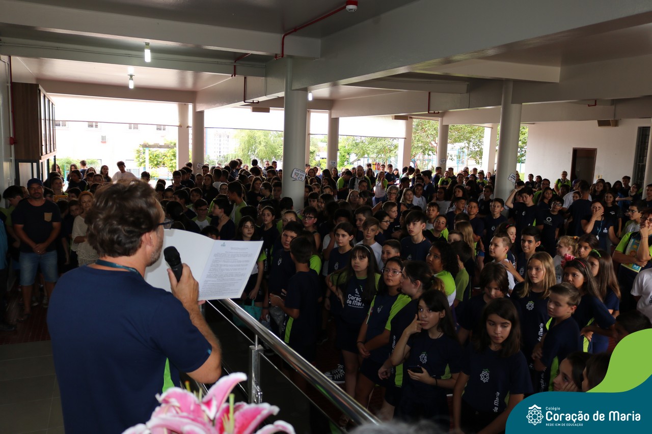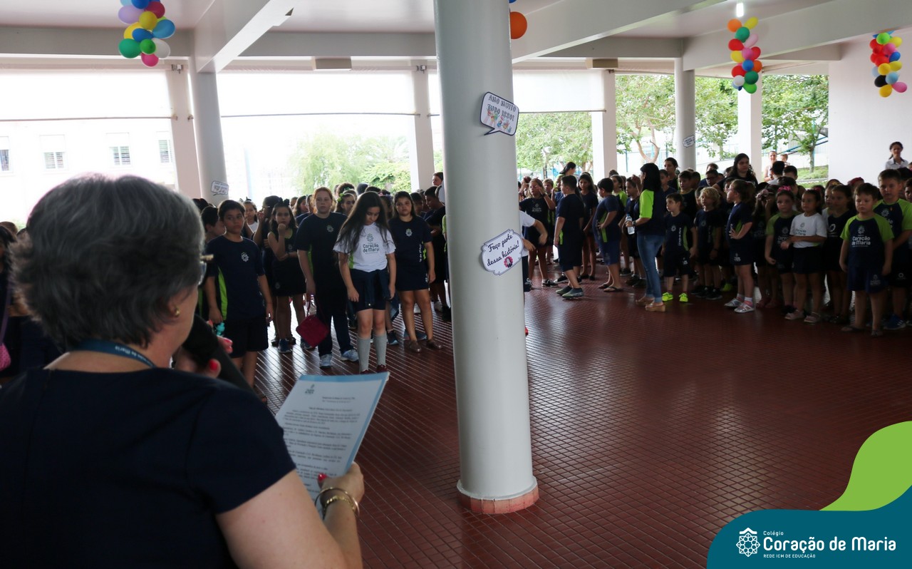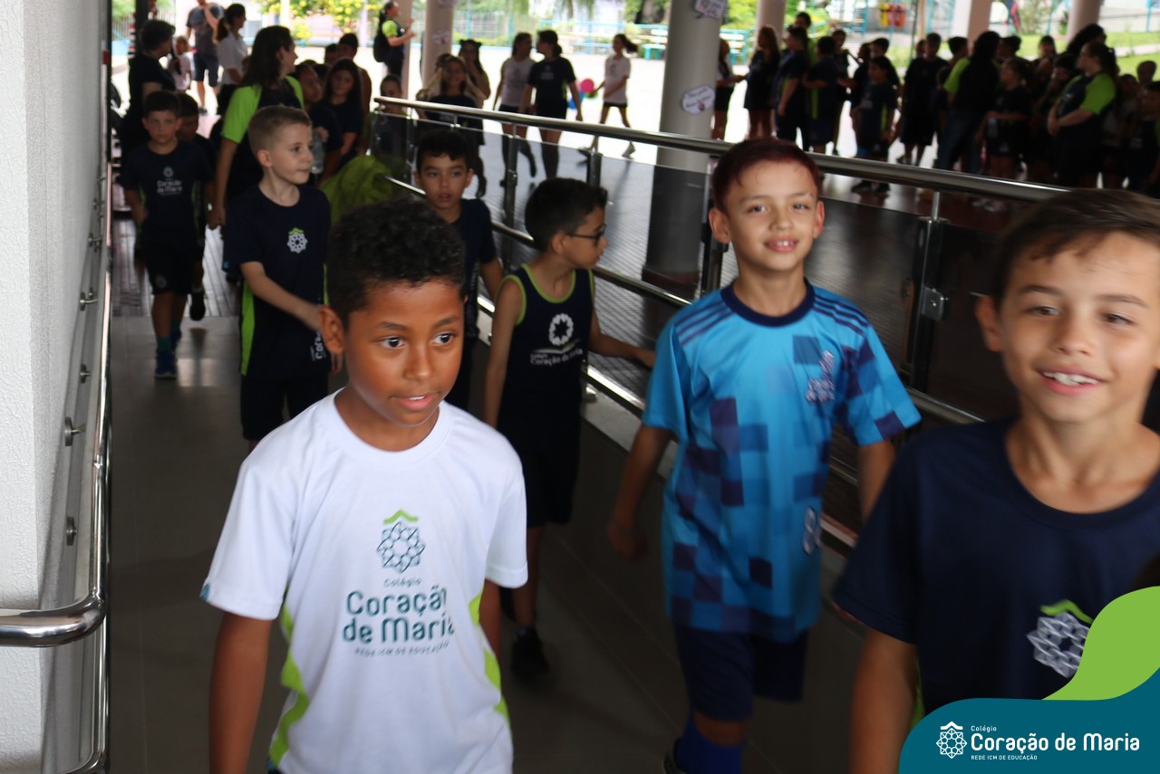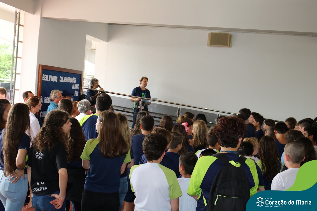 Após o desenlace da fita inaugural, os alunos e educadores foram convidados a acessar o segundo andar pela rampa.