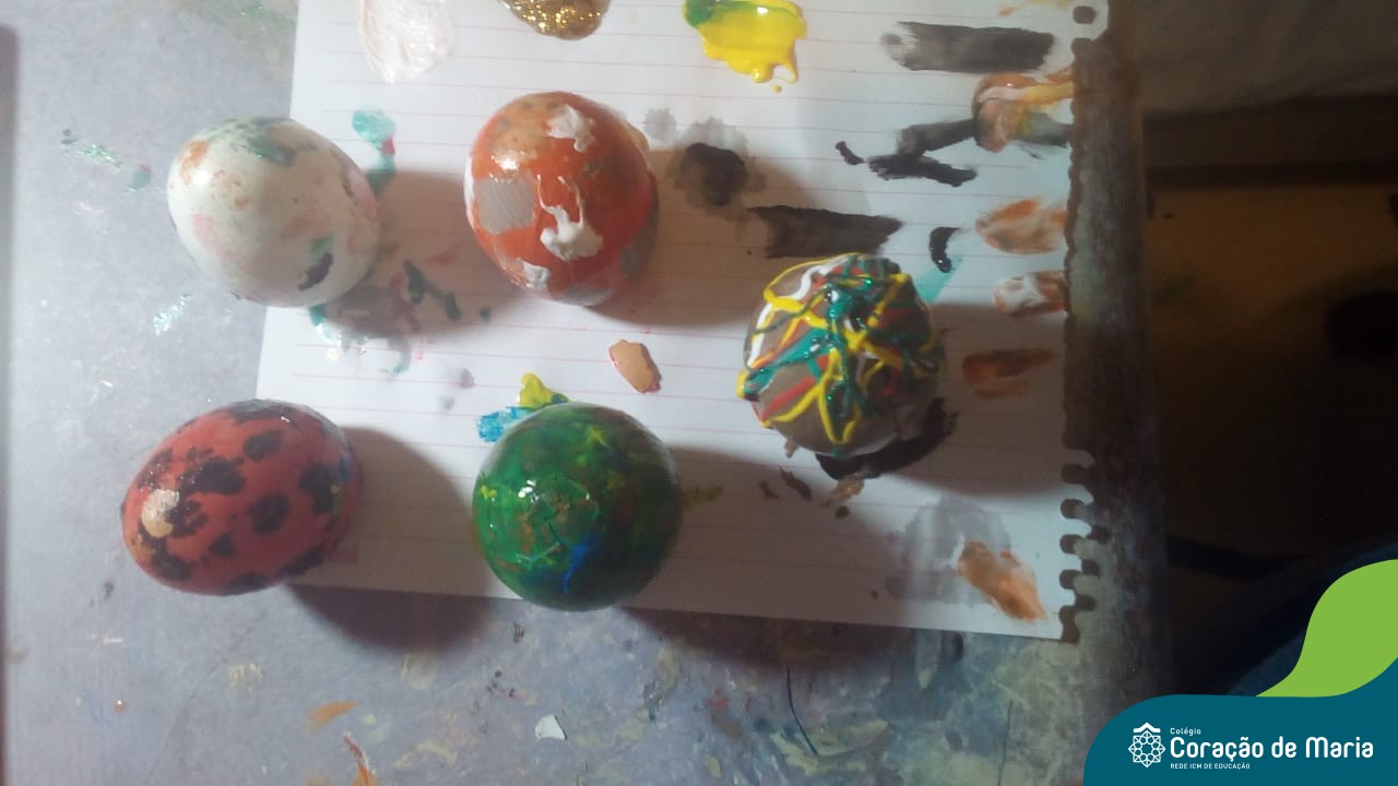 Os alunos da turma 52, após trabalharem o verdadeiro significado da Páscoa, mostraram , de modo diferente, suas habilidades de pintura.