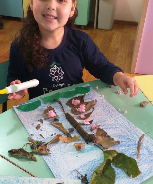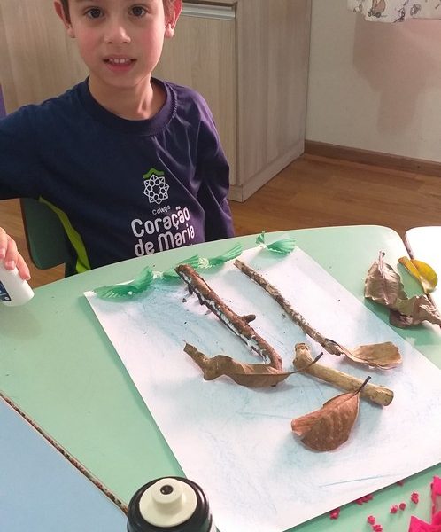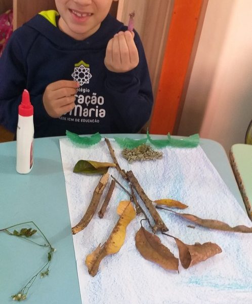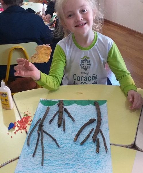 A partir da Hora do Conto com a história “A última árvore do mundo”, as crianças do Pré 2A foram até a horta e o pomar do Colégio para explorar o lugar e buscar folhas secas, sementes, galhos, gravetos, flores…para criar uma nova árvore, dando assim um novo significado as folhas do outono e salientando a importância da mesma em nossas vidas.