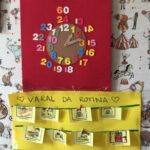 Além do calendário, que é trabalhado diariamente em aula, a rotina e o relógio também são instrumentos que explicam e compõem o cotidiano das crianças.