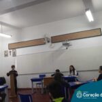 A disciplina de Ensino Religioso visa contribuir para a formação integral dos estudantes, promovendo o protagonismo e o comprometimento com a vida em sociedade. Ao longo de 2023, os estudantes do 8º ano (turmas 81, 82 e 83) trabalharam em alguns temas relacionados à prática de ações sociais e ao cuidado com a nossa casa comum. No último trimestre, abordamos dois temas centrais: “Religiões e Políticas Públicas” e a “Missão Social da Igreja”. Foi possível conhecer a concepção de justiça em diferentes tradições religiosas e aprender sobre algumas pessoas e líderes religiosos, que dedicaram suas vidas para fazer o bem. Uma das atividades sobre esse tema consistia em simular uma sessão da Câmara Municipal, onde os estudantes desempenharam papéis de protagonistas. Três estudantes por turma foram escolhidos para serem: um presidente, secretário-geral e mestre de cerimônia (os três estudantes decidiram o papel de cada um). Os demais estudantes foram divididos em pequenos grupos.