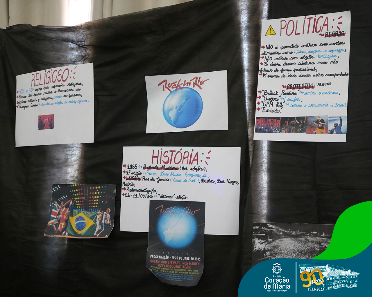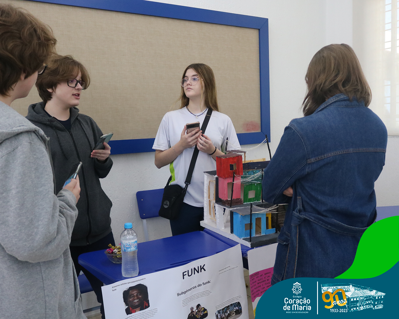 Os estudantes do Ensino Fundamental Anos Finais e da 3ª série do Ensino Médio, com a mediação dos professores, apresentaram uma análise histórica, social, cultural, econômica e religiosa a partir dos diversos estilos musicais e festivais. Com criatividade e expertise, os participantes fizeram uso do aprofundamento teórico das aulas agregado com a experiência musical, por meio de estandes.