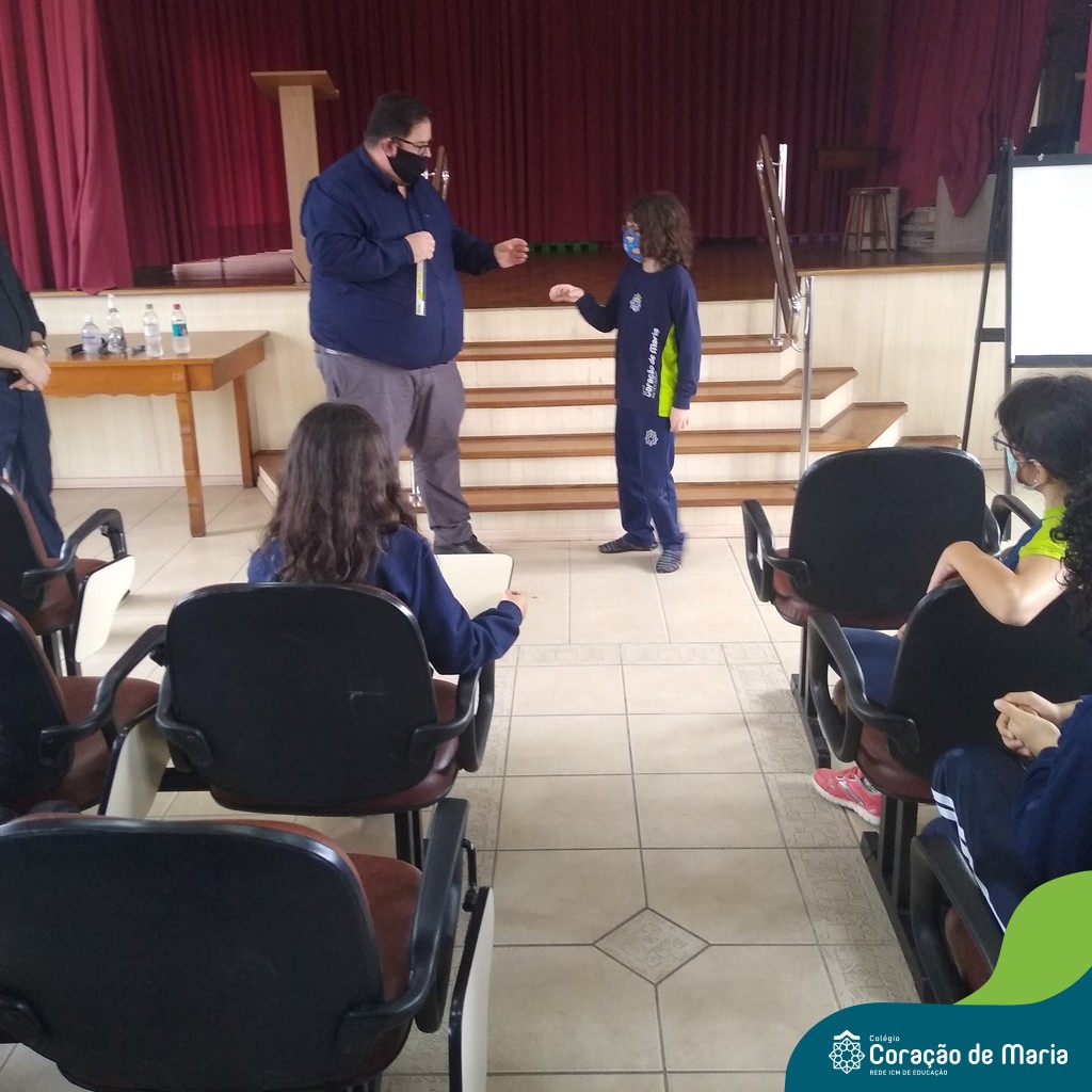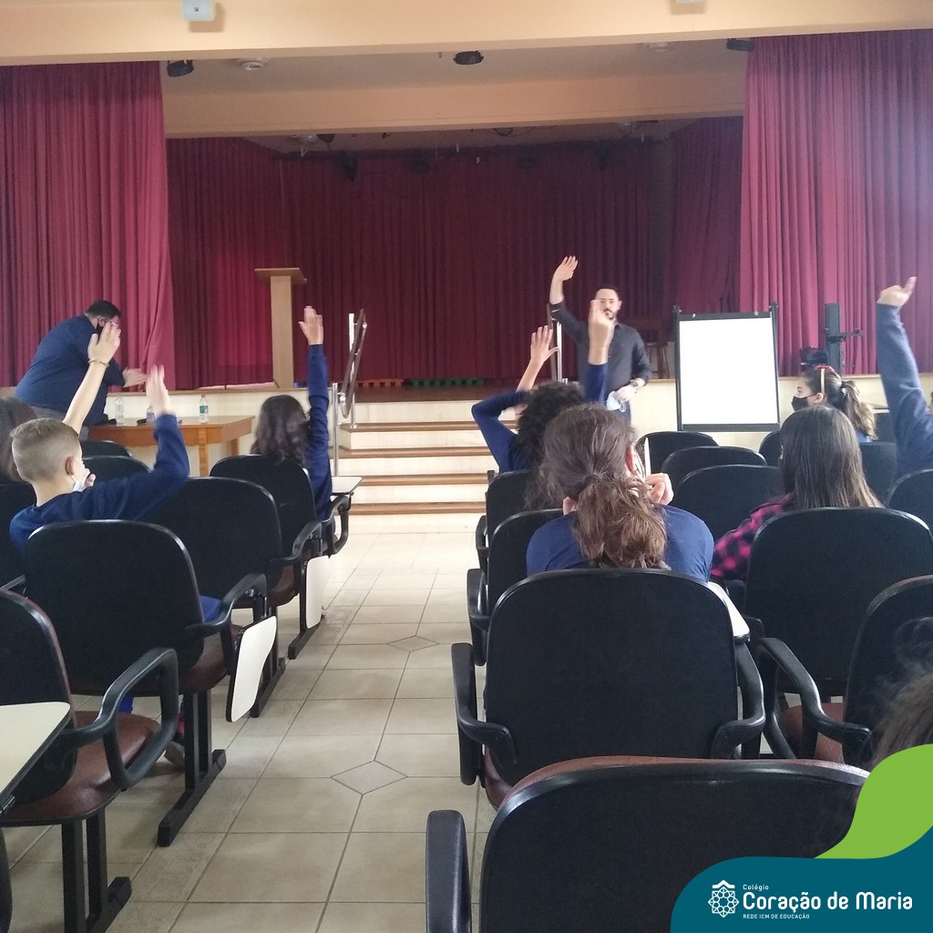 Na Semana Nacional do Trânsito, os 4ºs e 5ºs anos do Ensino Fundamental participaram de um momento especial, com o palestrante Marcelo Taborda, especialista em trânsito.