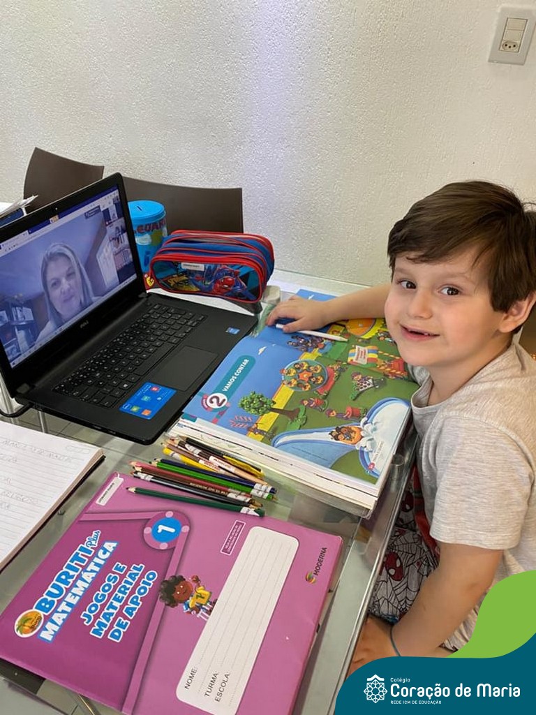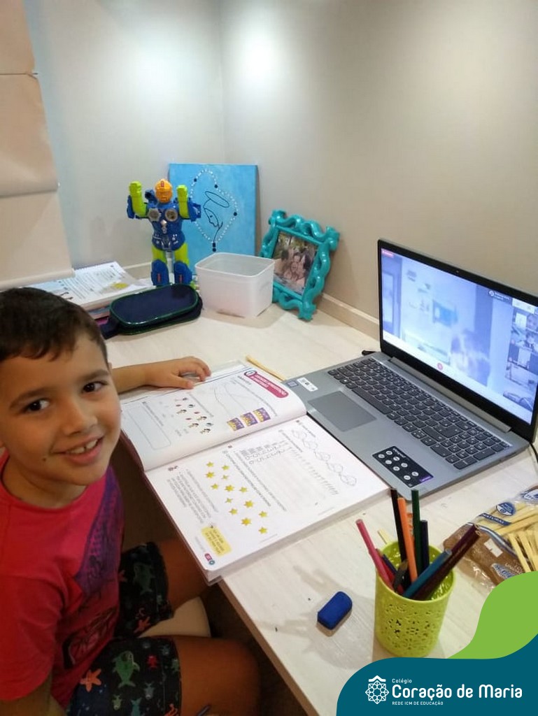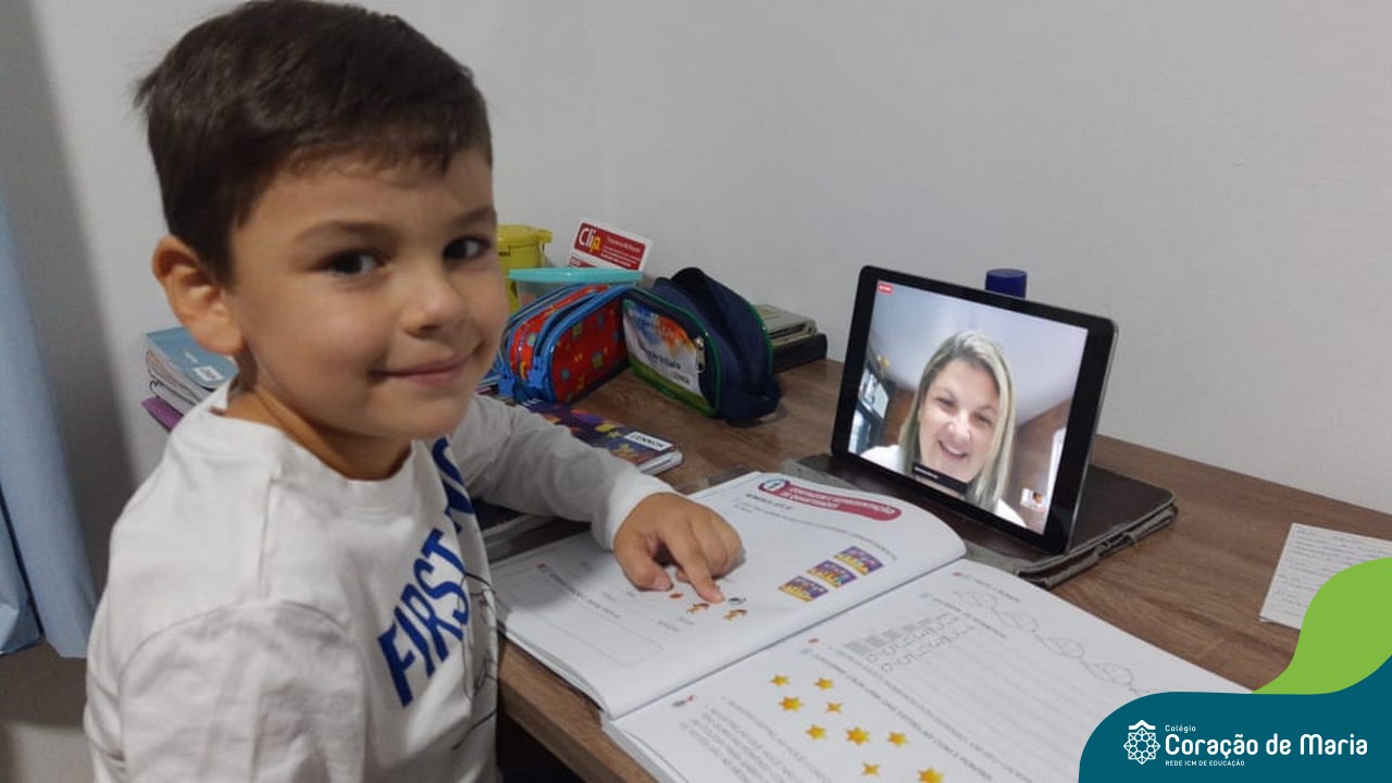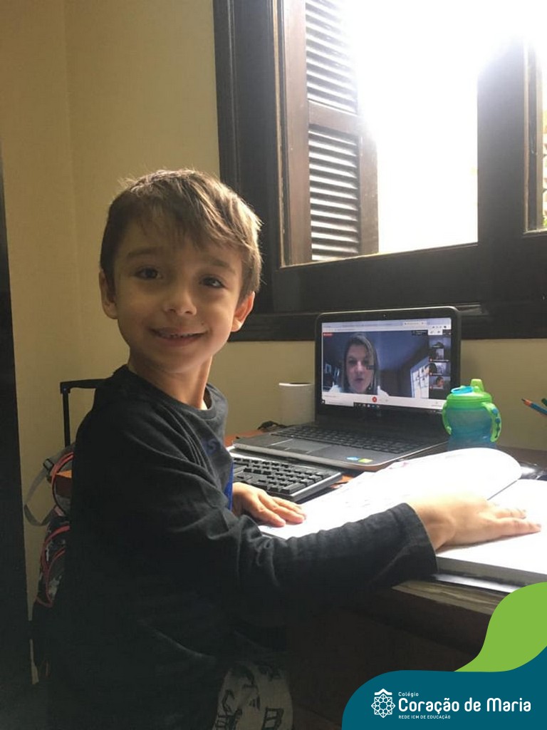 As aulas online para a Turma 14 estão sendo muito especiais pois é uma forma de aprender mais e também rever os colegas e a professora. Compilamos alguns depoimentos dos pequenos: “Adoro ver a profe e os colegas na aula online” ; “Almoço e já me arrumou para a aula!”; “Quero que o coronavírus vá logo, para ir lá na escola” ; “Tenho saudade da biblioteca e da pracinha!”; “Vou querer abraçar muito todos vocês!”; “Profe eu já estou lendo as palavras sozinho!”.