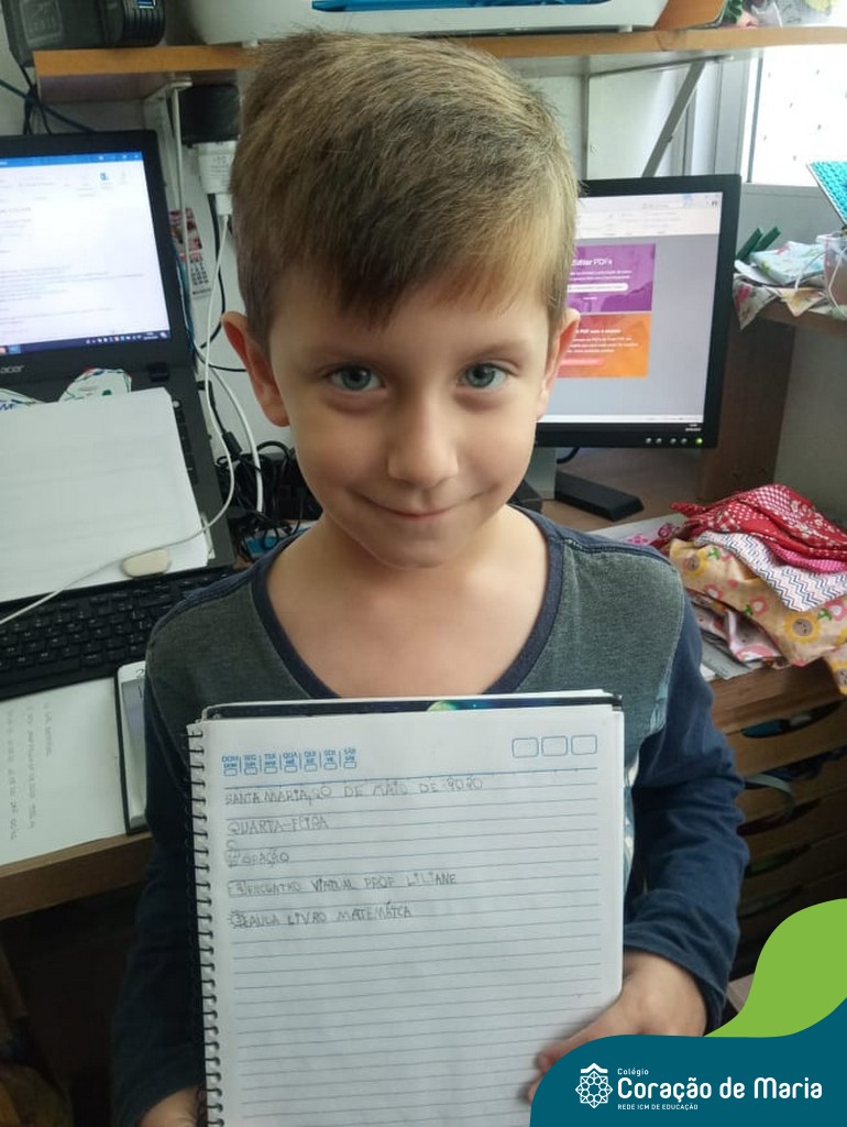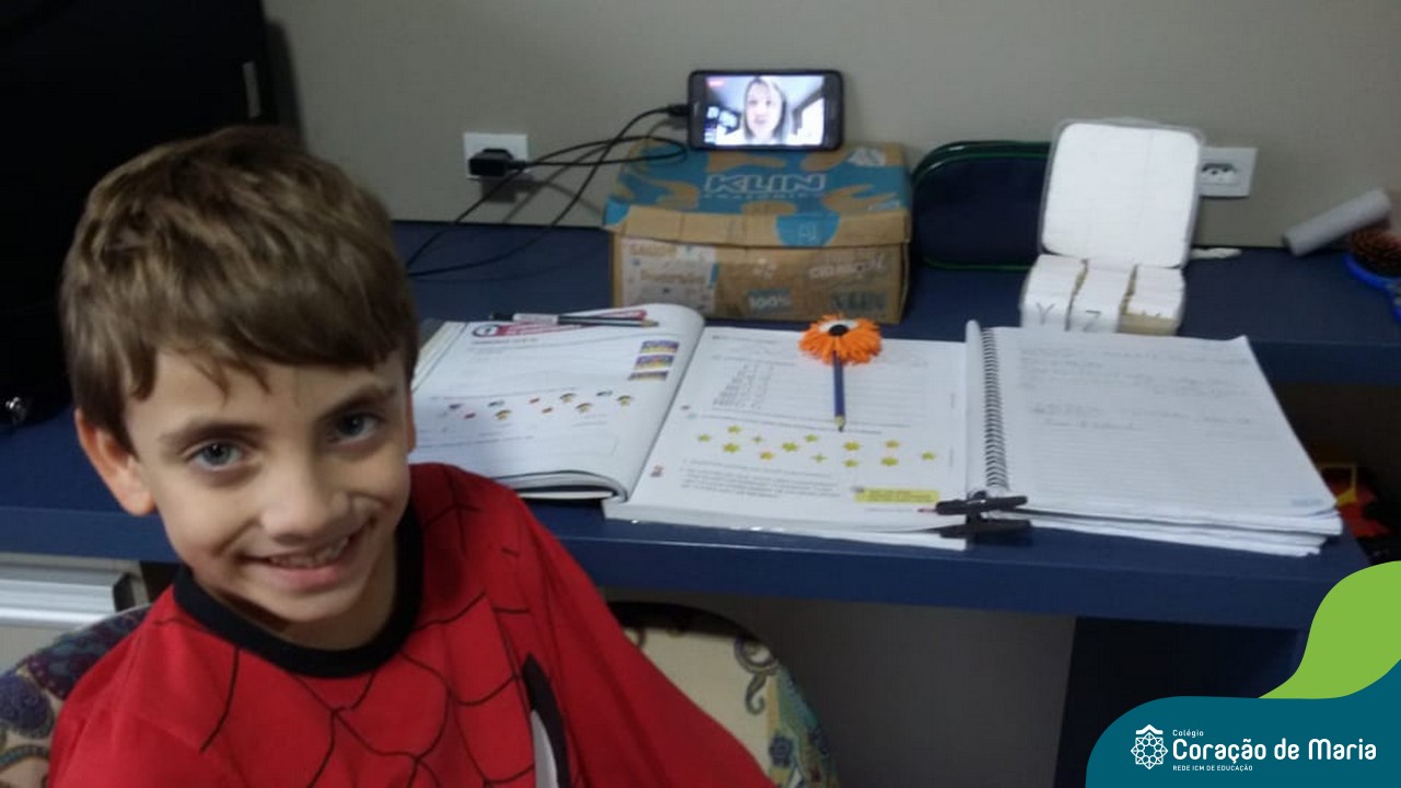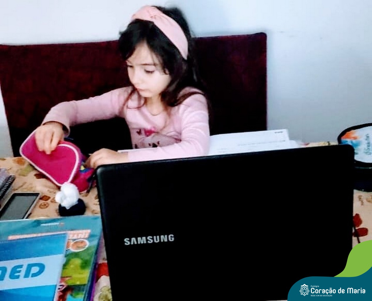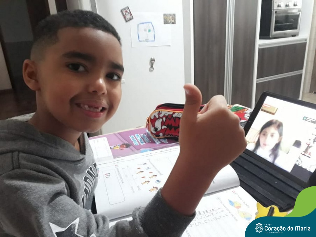 As aulas online para a Turma 14 estão sendo muito especiais pois é uma forma de aprender mais e também rever os colegas e a professora. Compilamos alguns depoimentos dos pequenos: “Adoro ver a profe e os colegas na aula online” ; “Almoço e já me arrumou para a aula!”; “Quero que o coronavírus vá logo, para ir lá na escola” ; “Tenho saudade da biblioteca e da pracinha!”; “Vou querer abraçar muito todos vocês!”; “Profe eu já estou lendo as palavras sozinho!”.