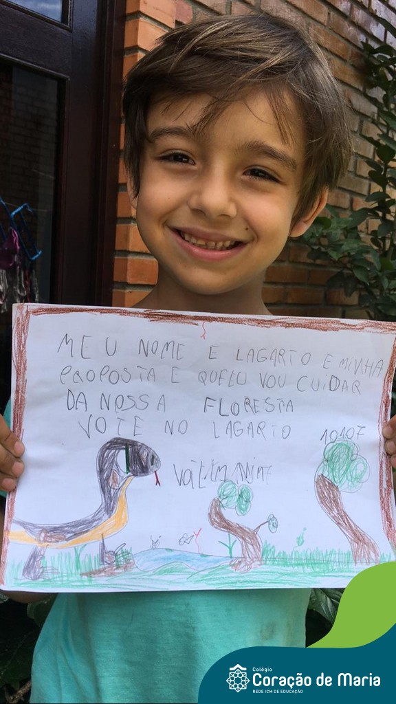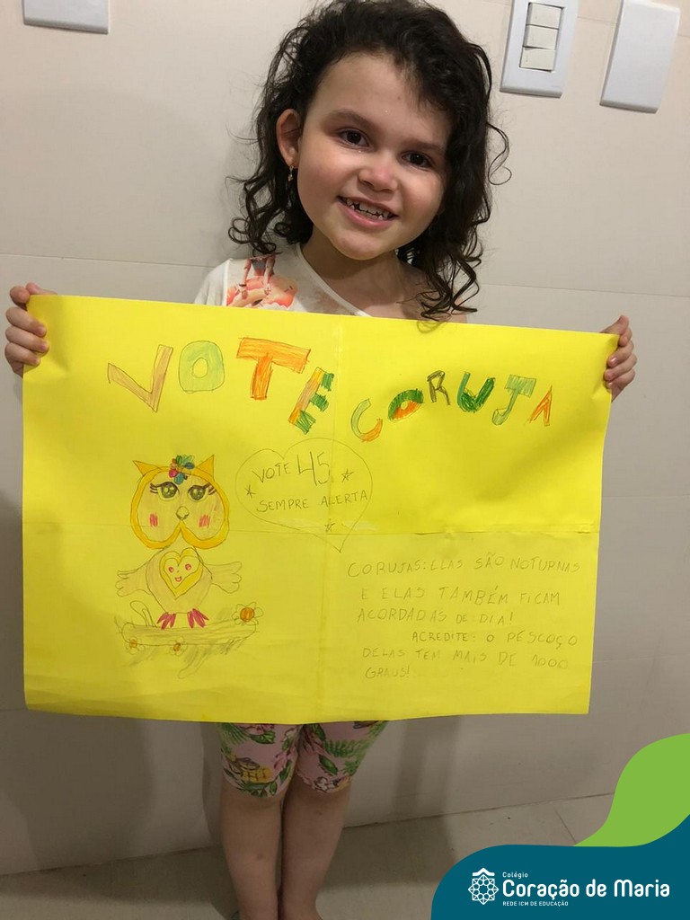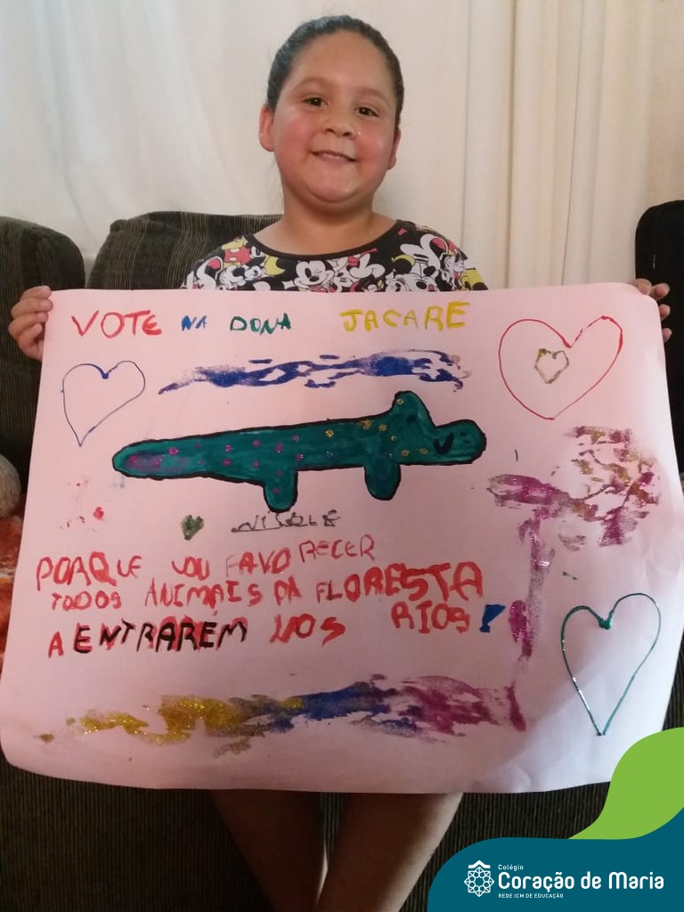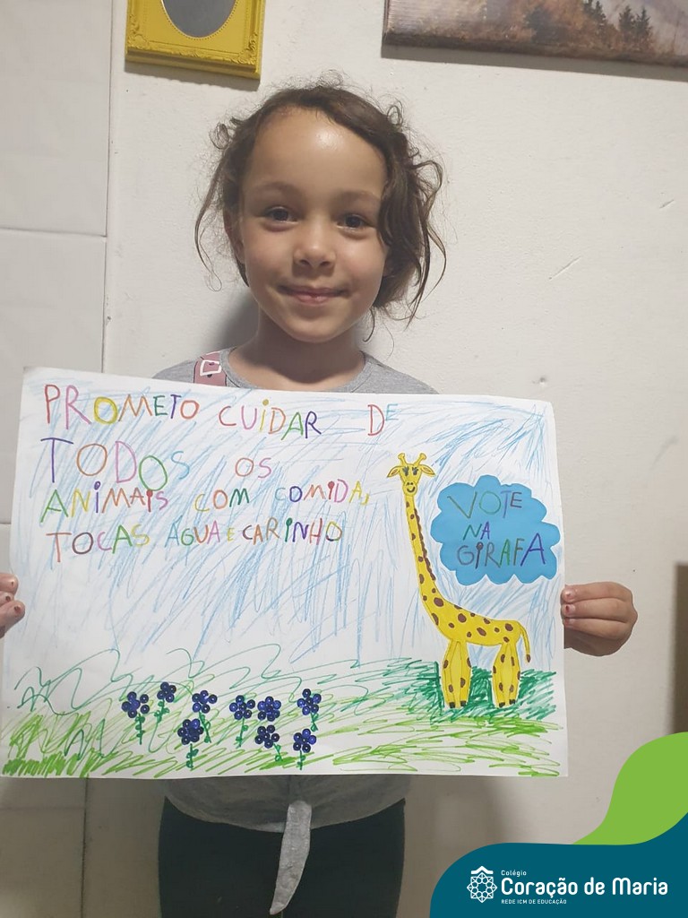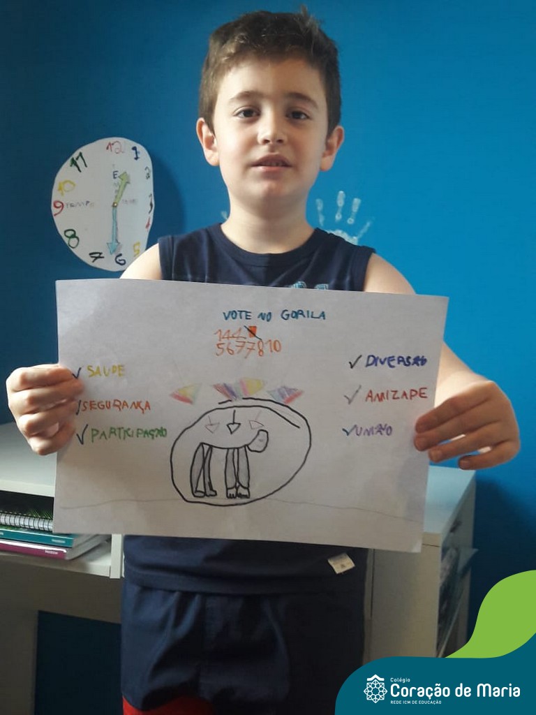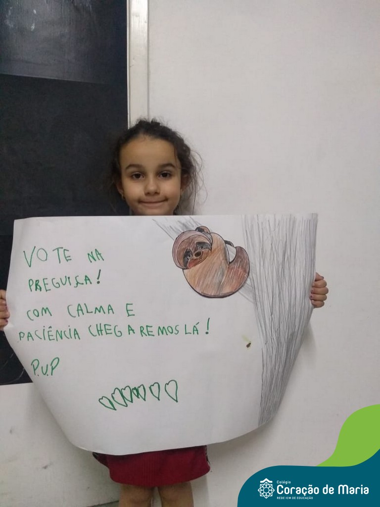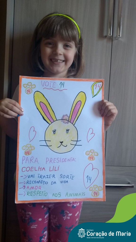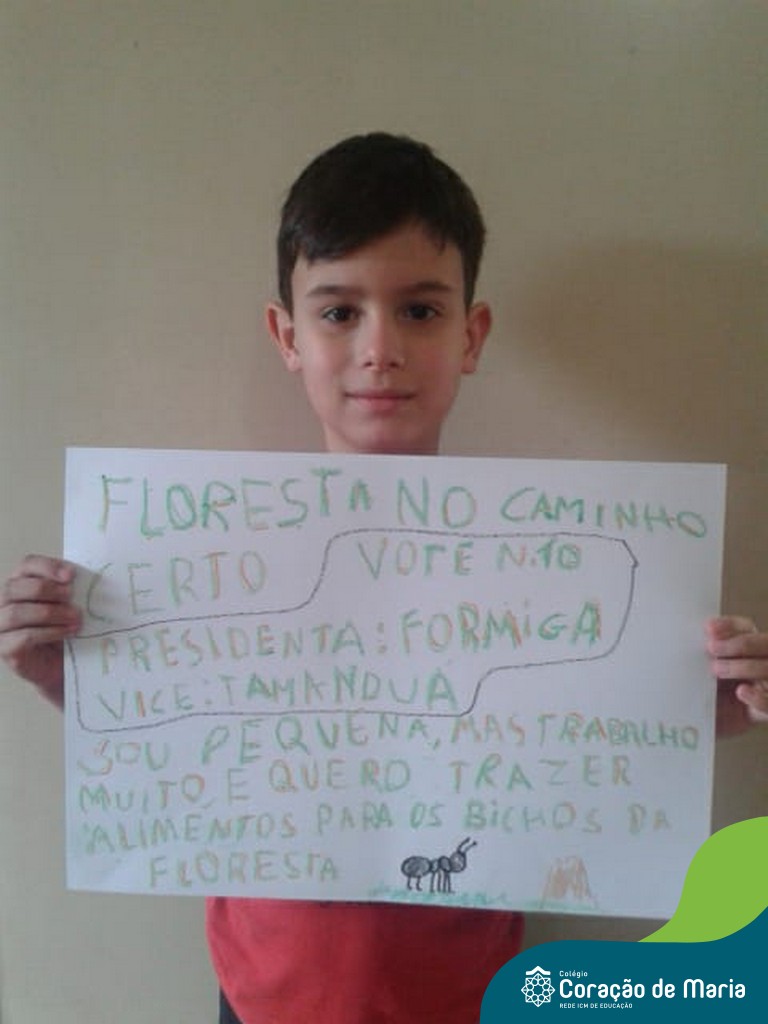 As professoras dos Primeiros Anos abordaram o assunto referente às eleições com a história “Eleições dos bichos”. A partir da história as crianças confeccionaram cartazes escolhendo representar um bichinho de sua preferência e fazendo a sua própria campanha para ser o presidente da floresta. O resultado deste trabalho pode ser conferido através dos registros fotográficos enviados pelas famílias.