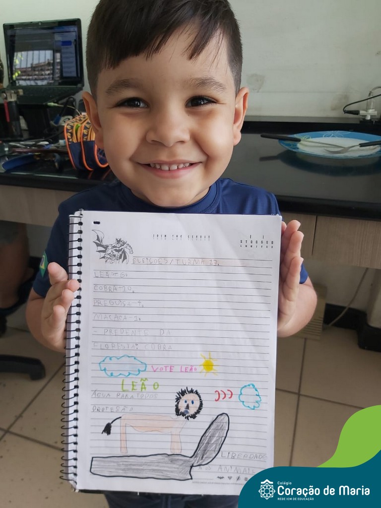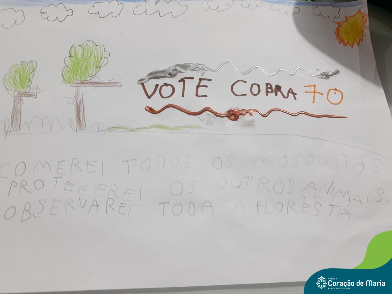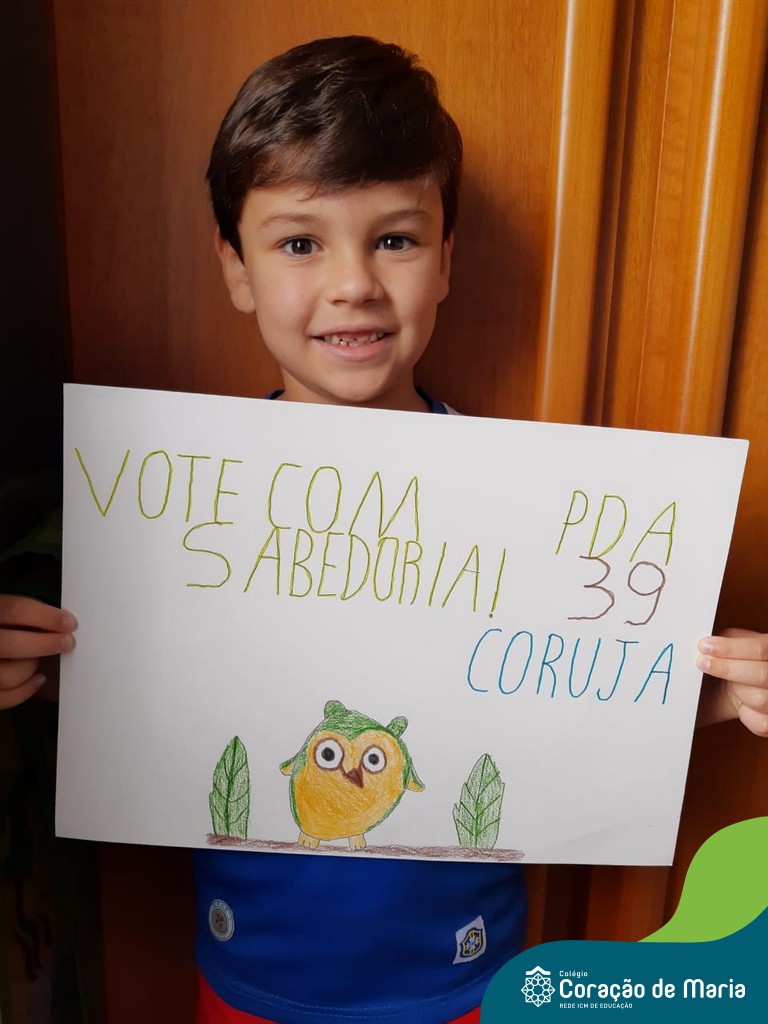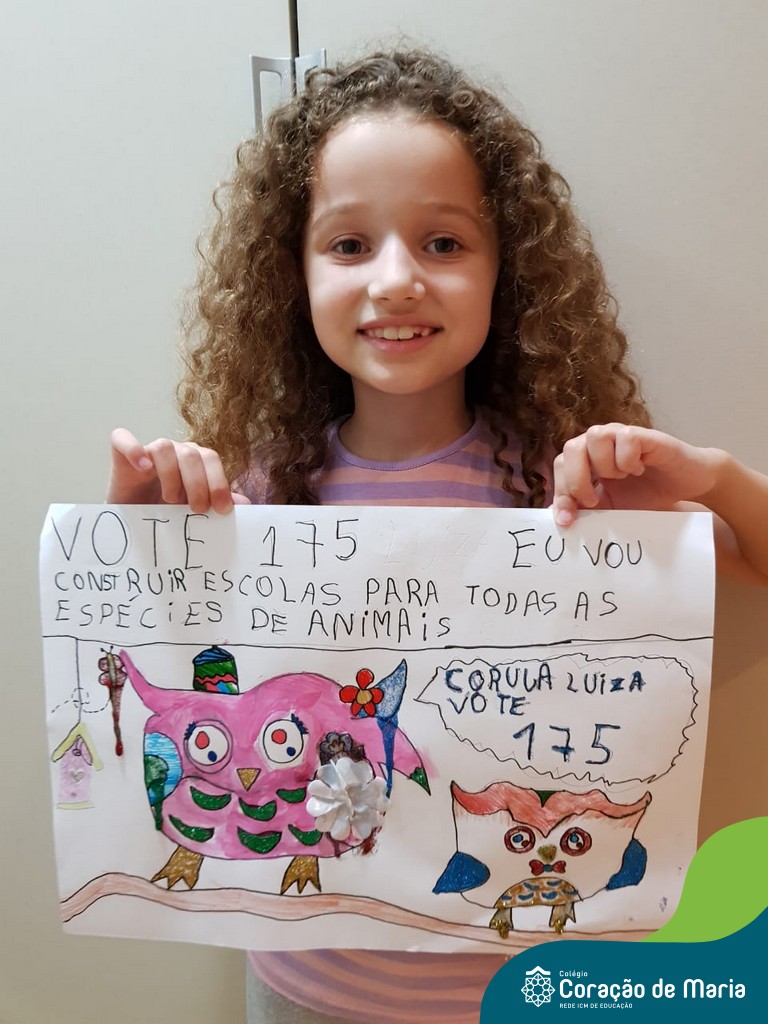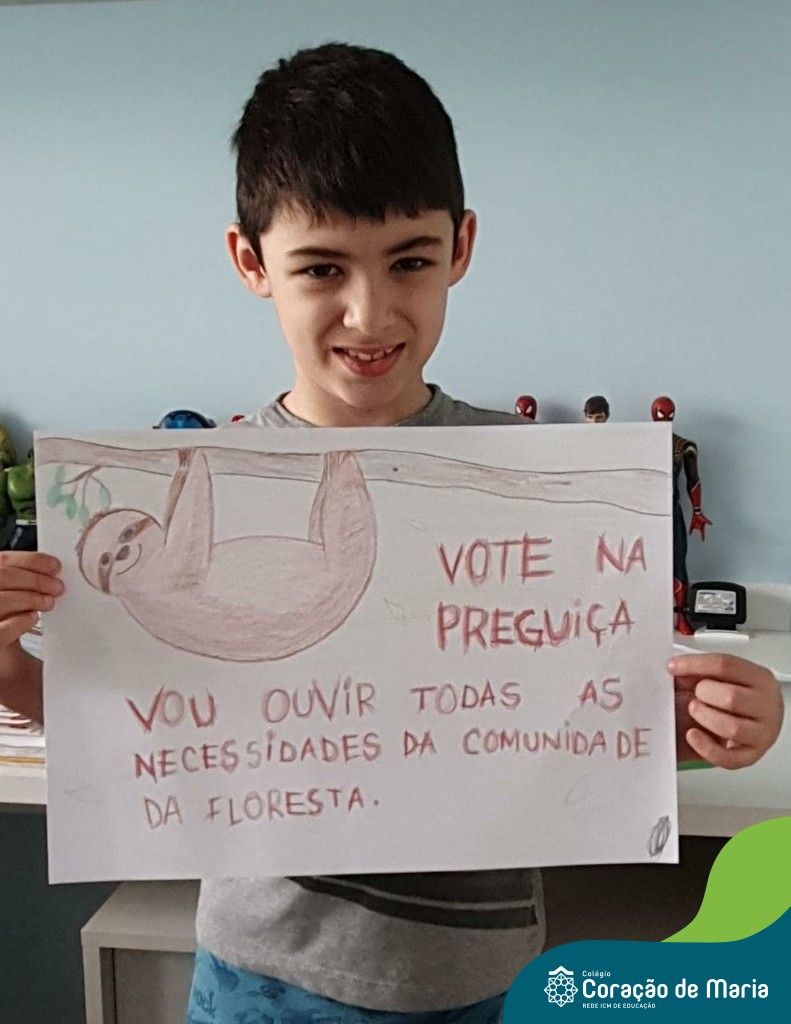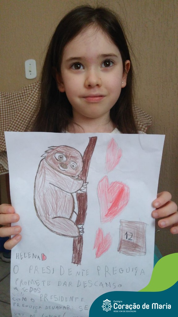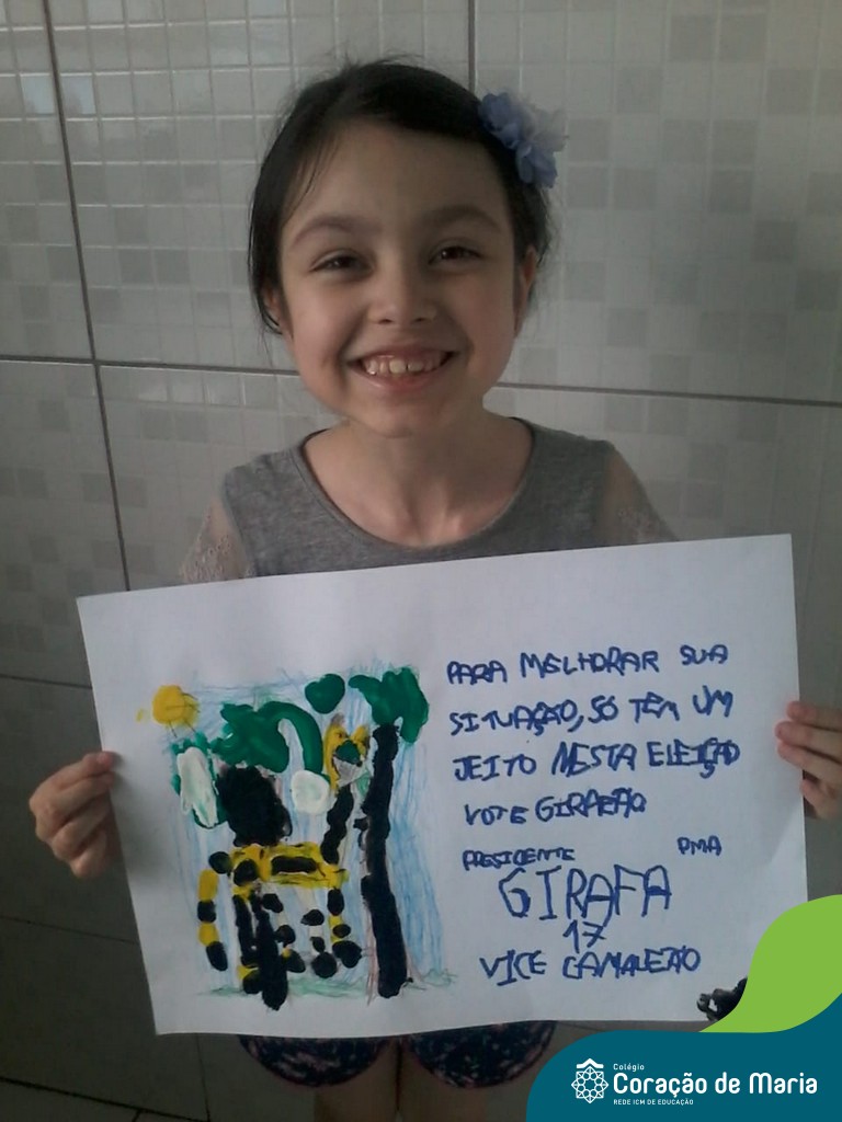 As professoras dos Primeiros Anos abordaram o assunto referente às eleições com a história “Eleições dos bichos”. A partir da história as crianças confeccionaram cartazes escolhendo representar um bichinho de sua preferência e fazendo a sua própria campanha para ser o presidente da floresta. O resultado deste trabalho pode ser conferido através dos registros fotográficos enviados pelas famílias.