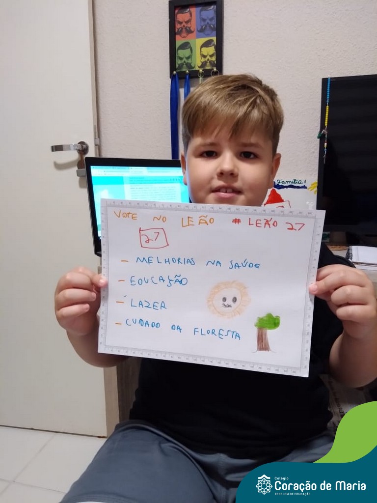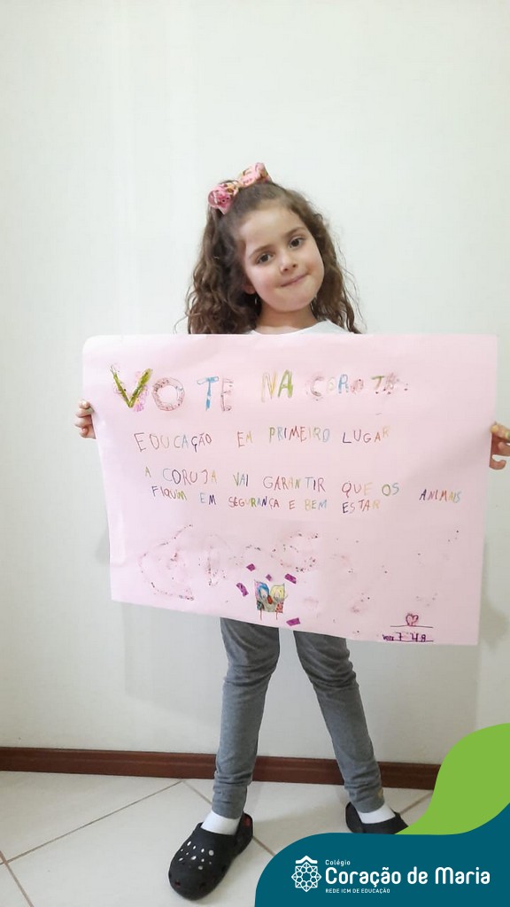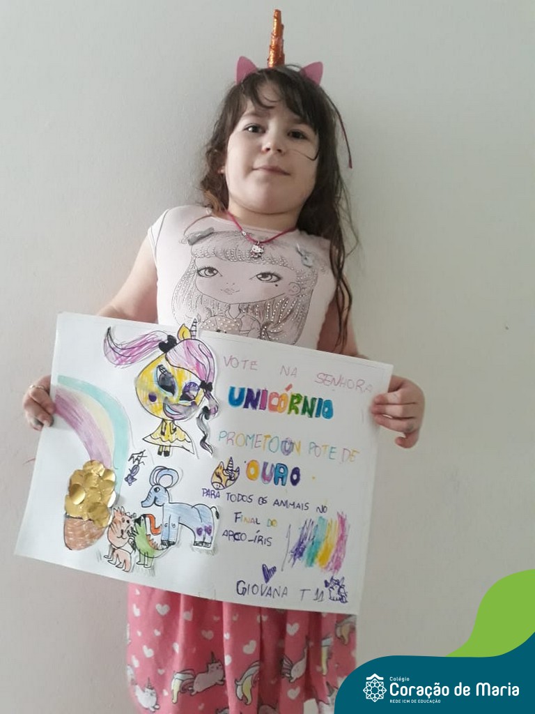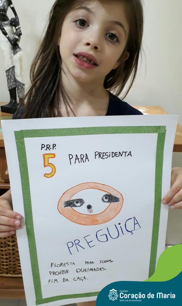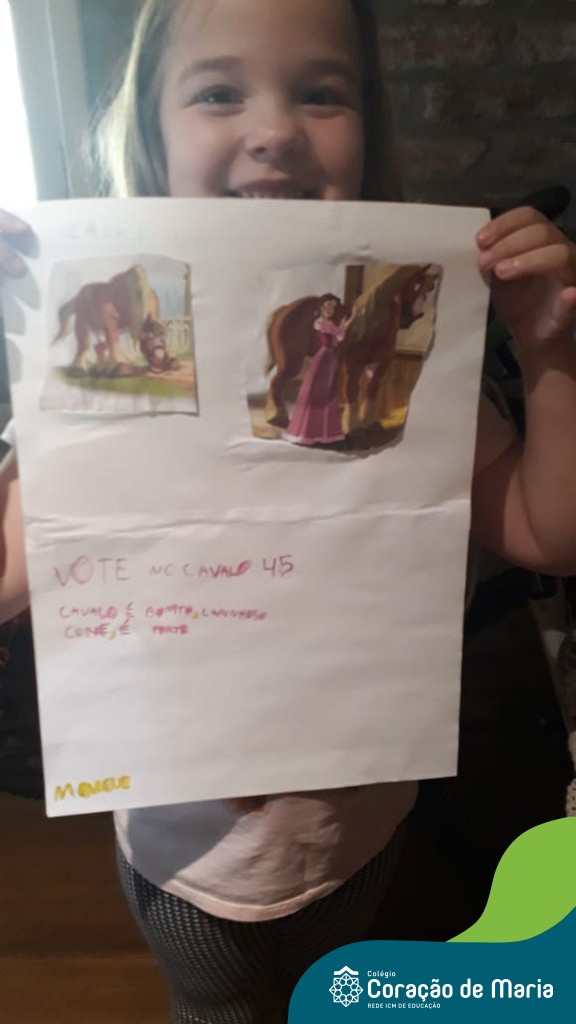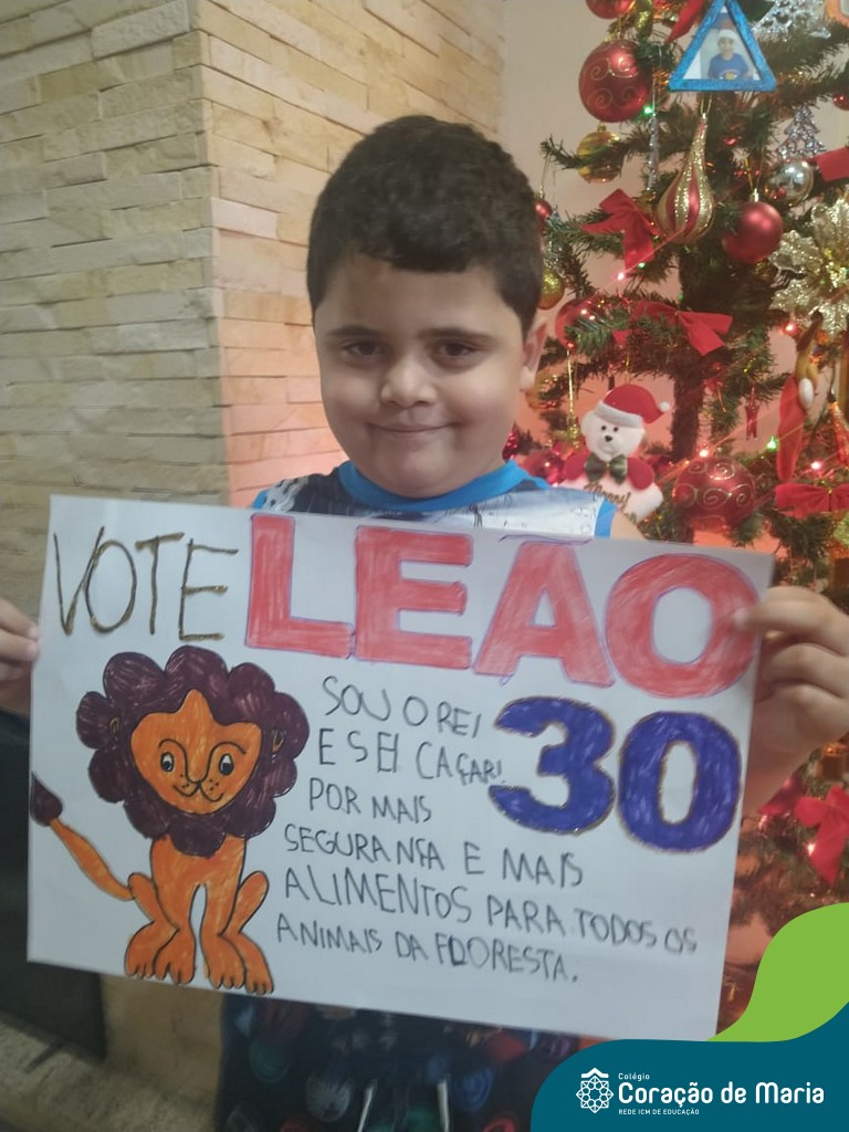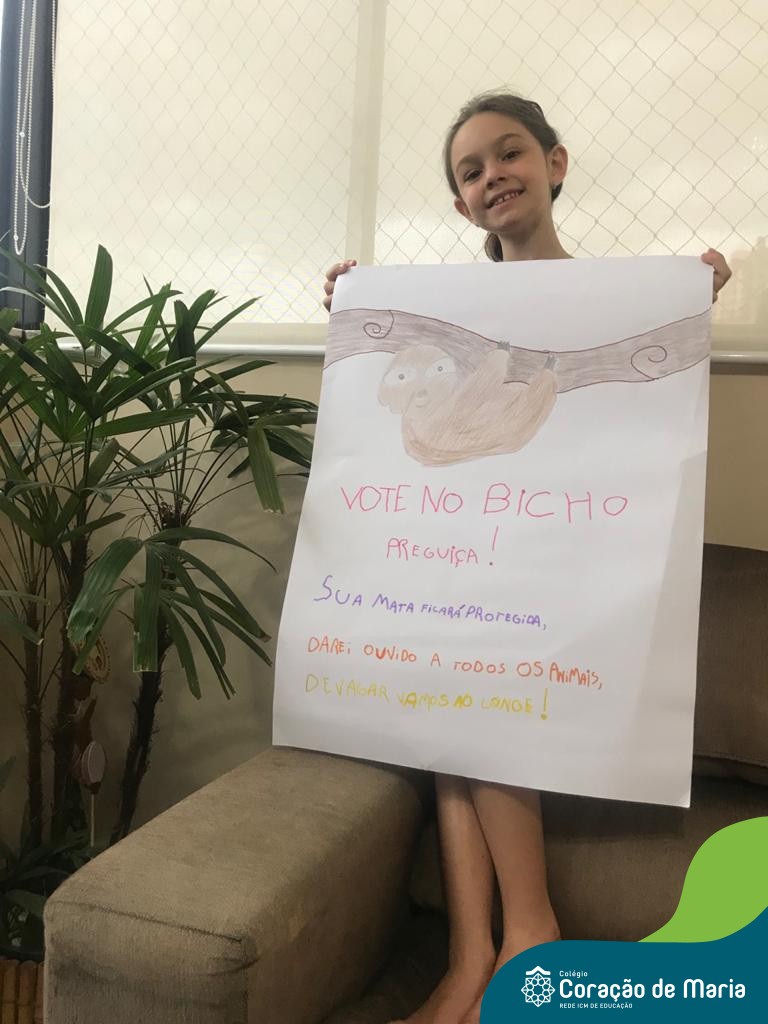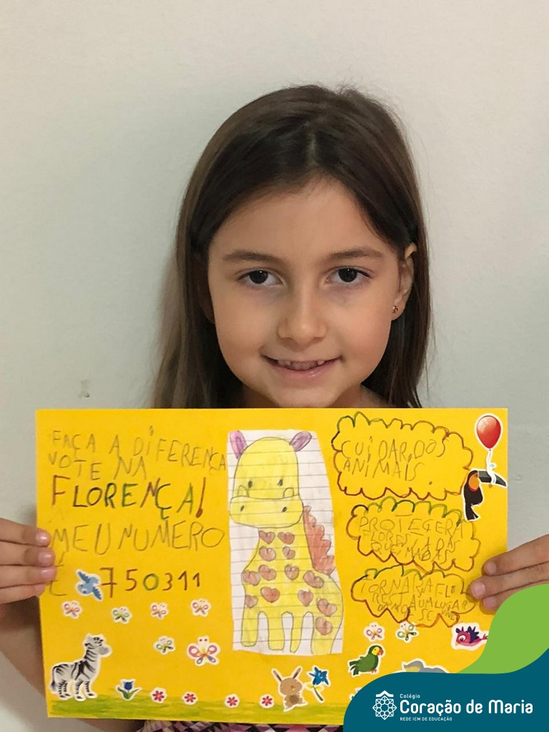 As professoras dos Primeiros Anos abordaram o assunto referente às eleições com a história “Eleições dos bichos”. A partir da história as crianças confeccionaram cartazes escolhendo representar um bichinho de sua preferência e fazendo a sua própria campanha para ser o presidente da floresta. O resultado deste trabalho pode ser conferido através dos registros fotográficos enviados pelas famílias.