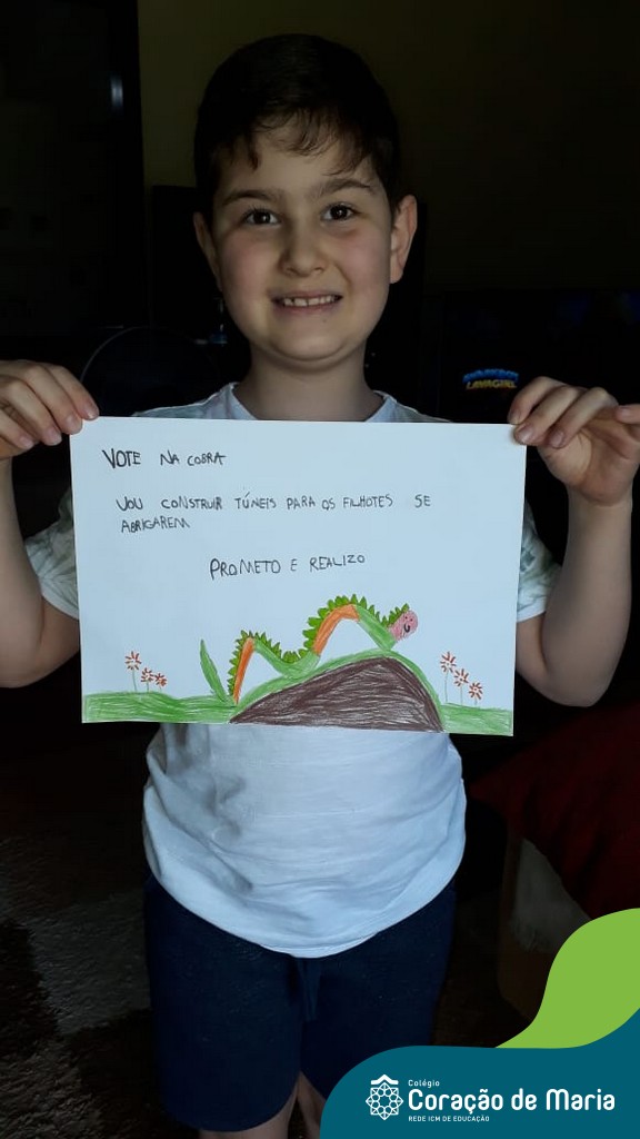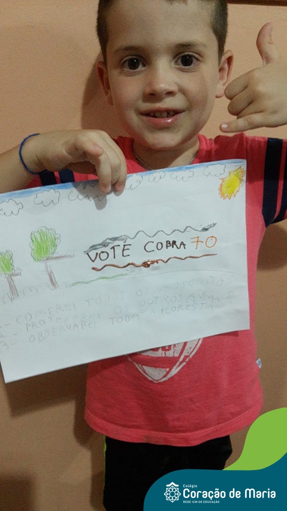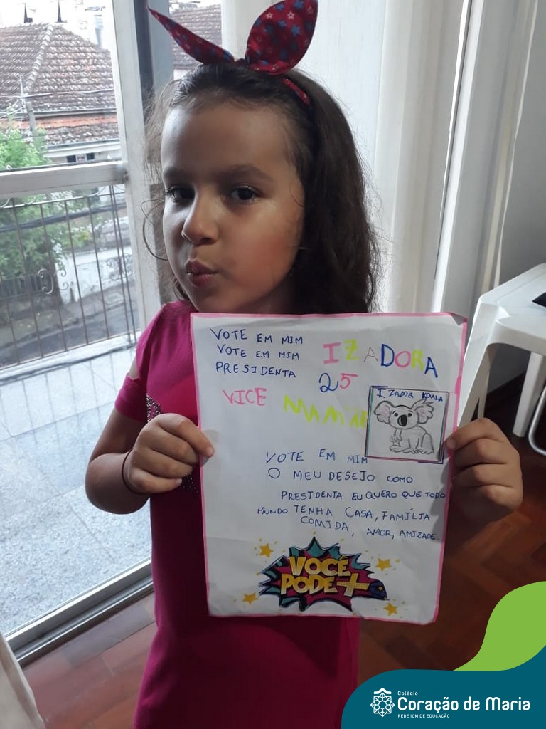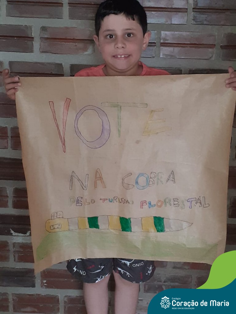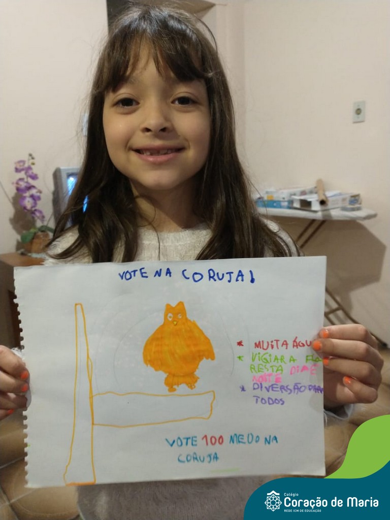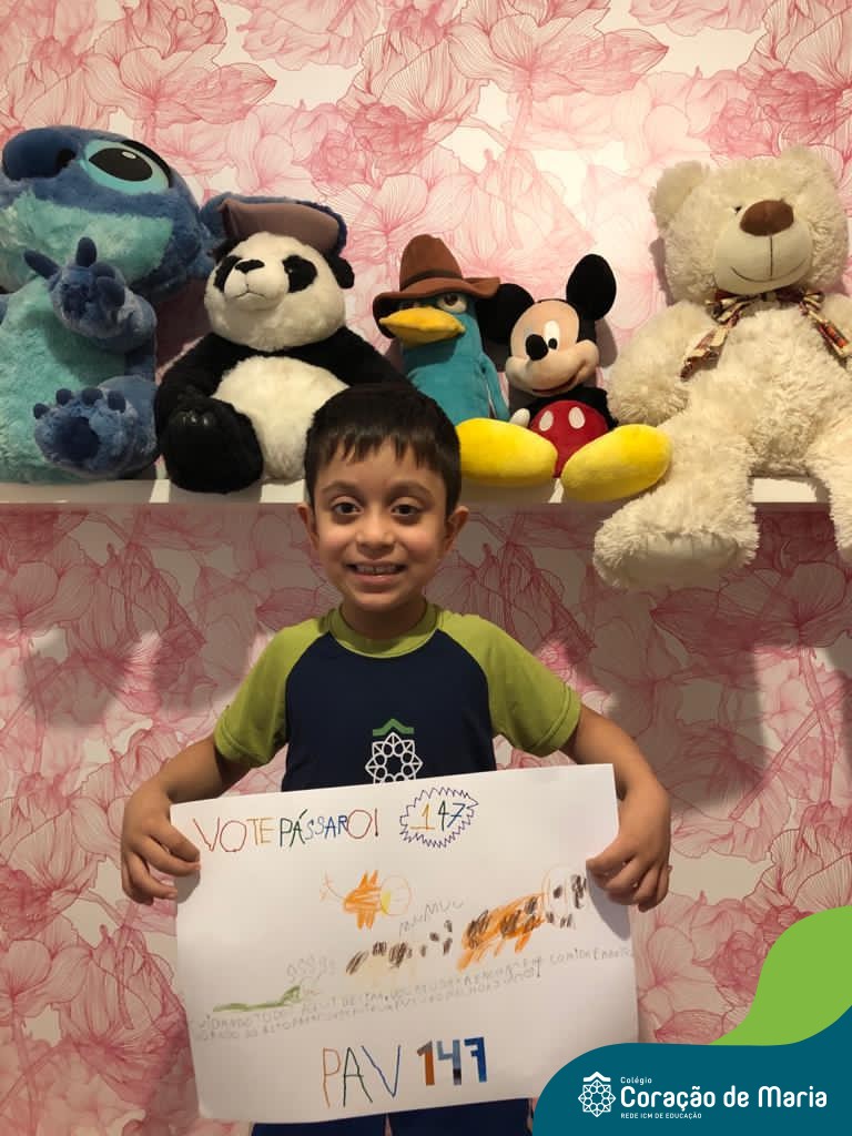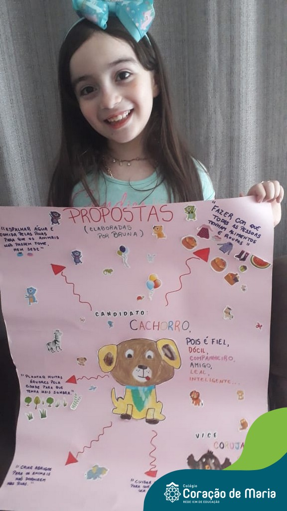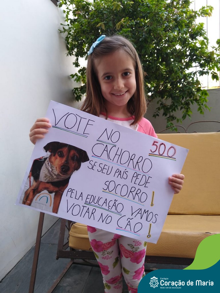 As professoras dos Primeiros Anos abordaram o assunto referente às eleições com a história “Eleições dos bichos”. A partir da história as crianças confeccionaram cartazes escolhendo representar um bichinho de sua preferência e fazendo a sua própria campanha para ser o presidente da floresta. O resultado deste trabalho pode ser conferido através dos registros fotográficos enviados pelas famílias.