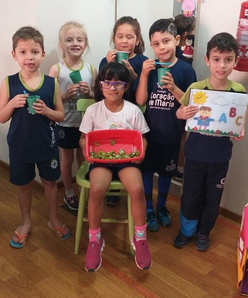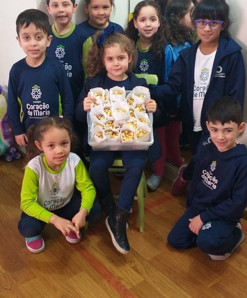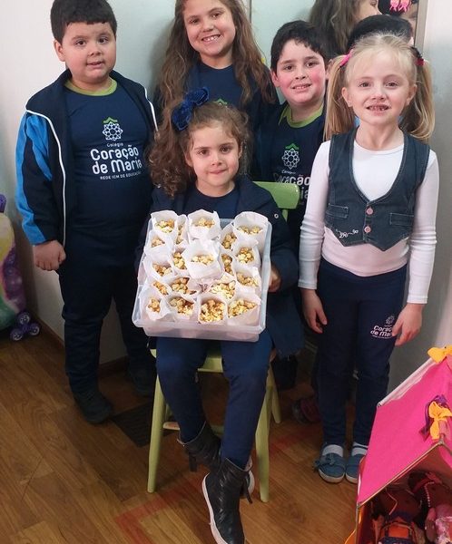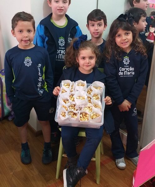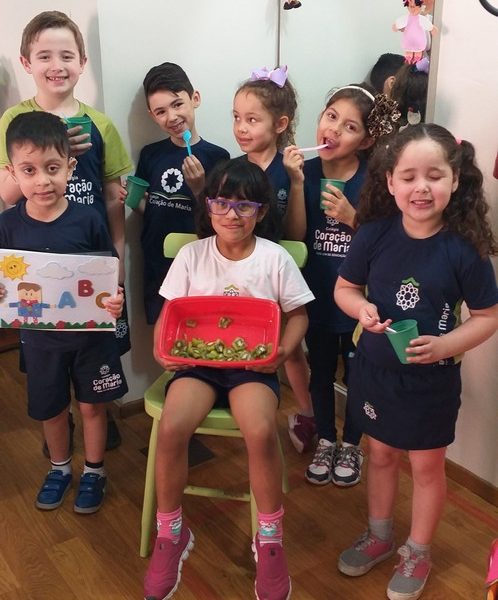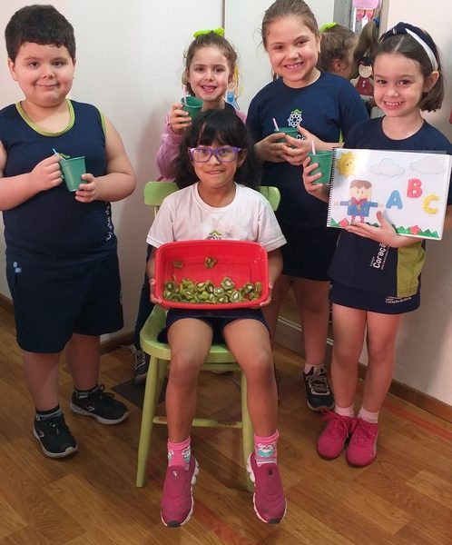 Lindas descobertas e partilhas vem acontecendo para despertar de forma lúdica e prazerosa o mundo mágico da alfabetização, como o que as alunas Maria e Valentina fizeram, partilharam com a turma saborosos alimentos que começam com as letras que foram trabalhadas em aula, K de kiwi e P de pipoca, respectivamente.