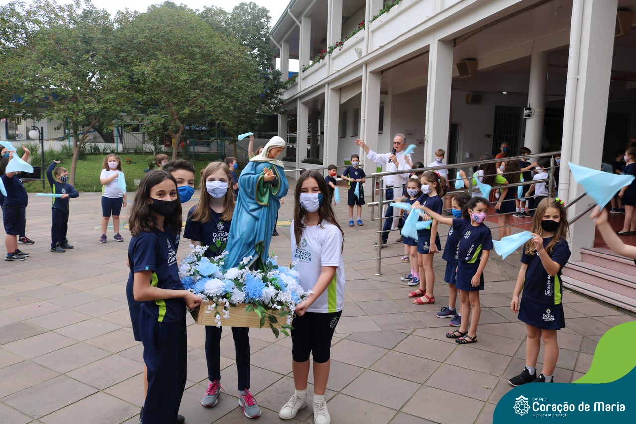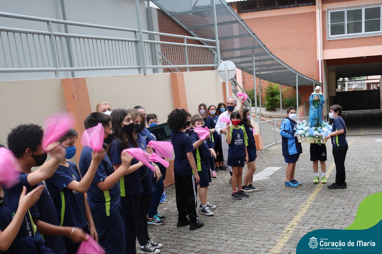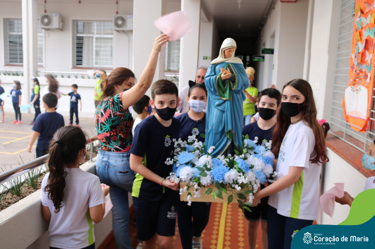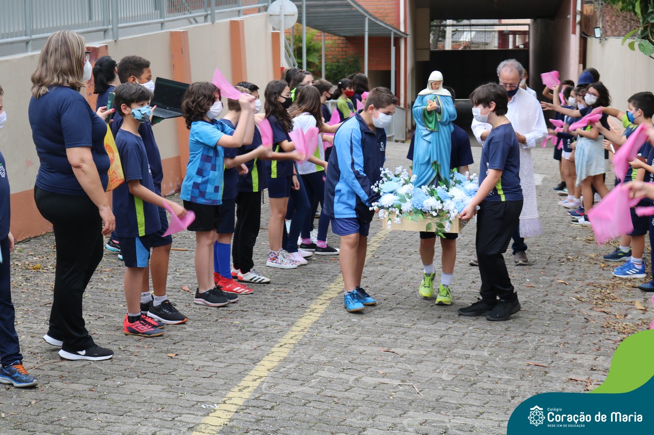 Com alegria e carinho, educadores e crianças acolheram, no último dia 02, a imagem de Nossa Senhora das Dores. A visita faz parte das festividades da Paróquia, a qual o Colégio está situado.