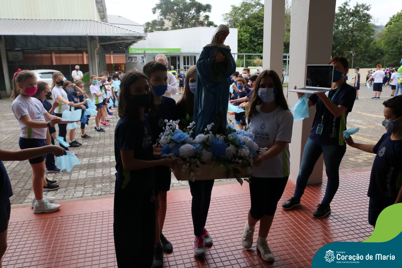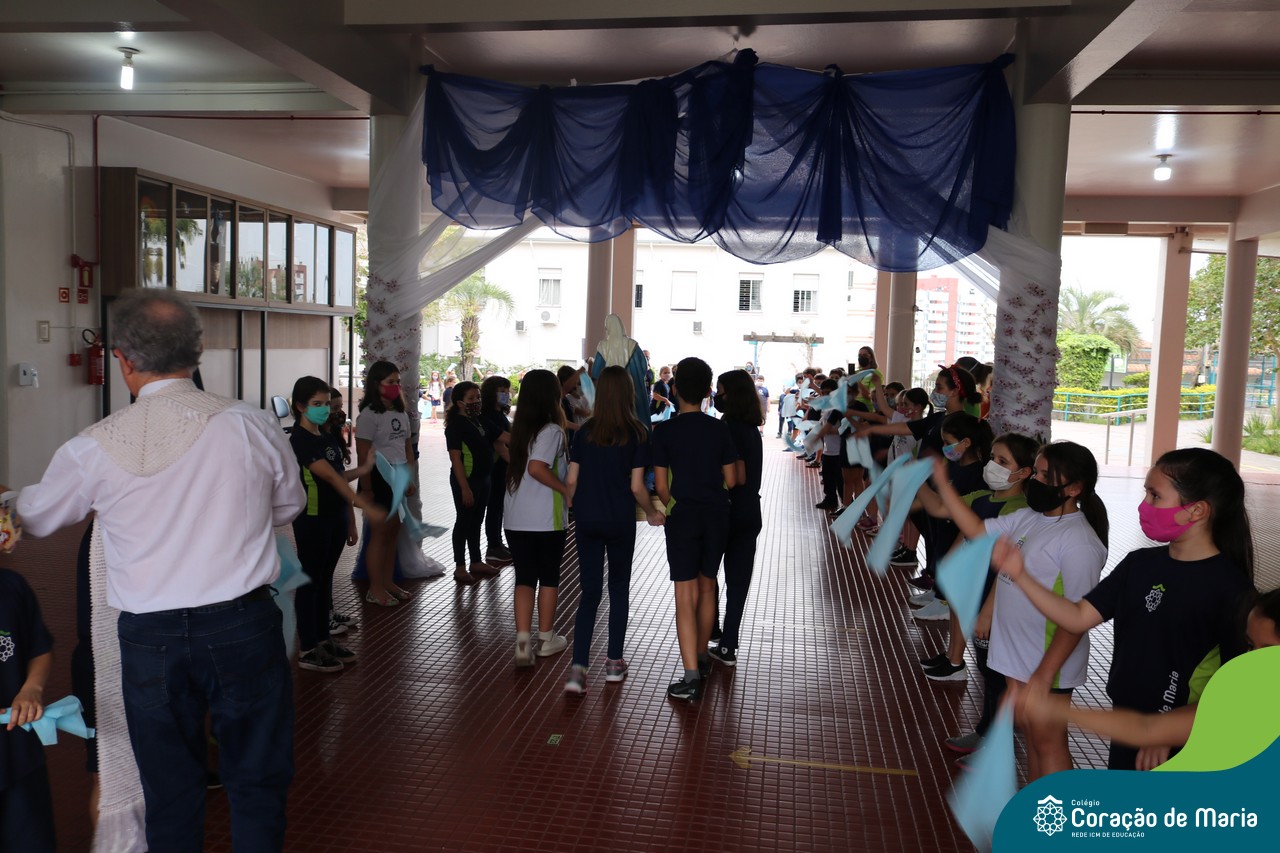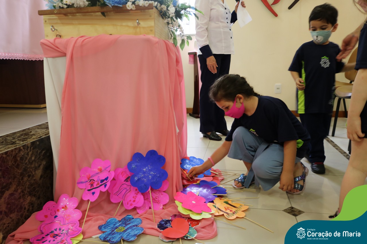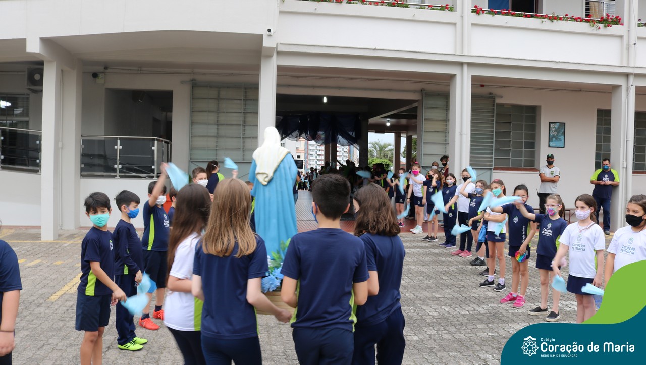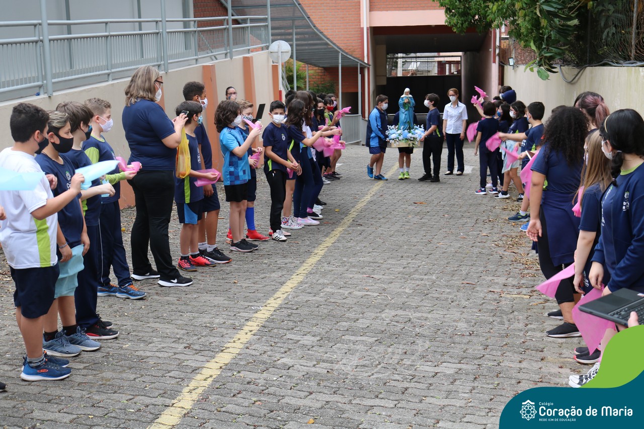 Com alegria e carinho, educadores e crianças acolheram, no último dia 02, a imagem de Nossa Senhora das Dores. A visita faz parte das festividades da Paróquia, a qual o Colégio está situado.