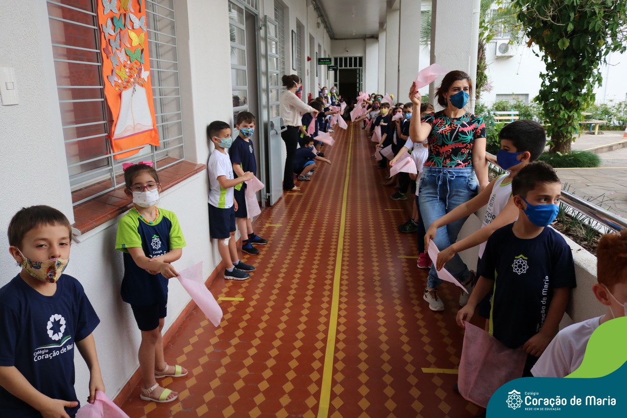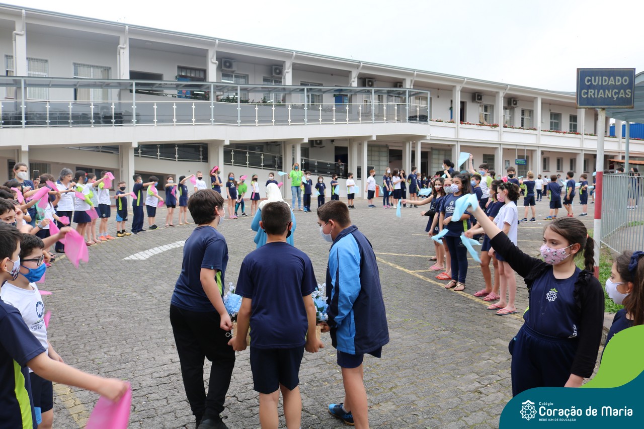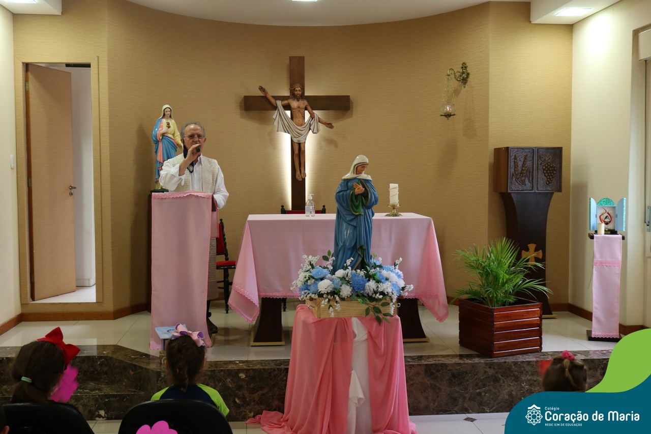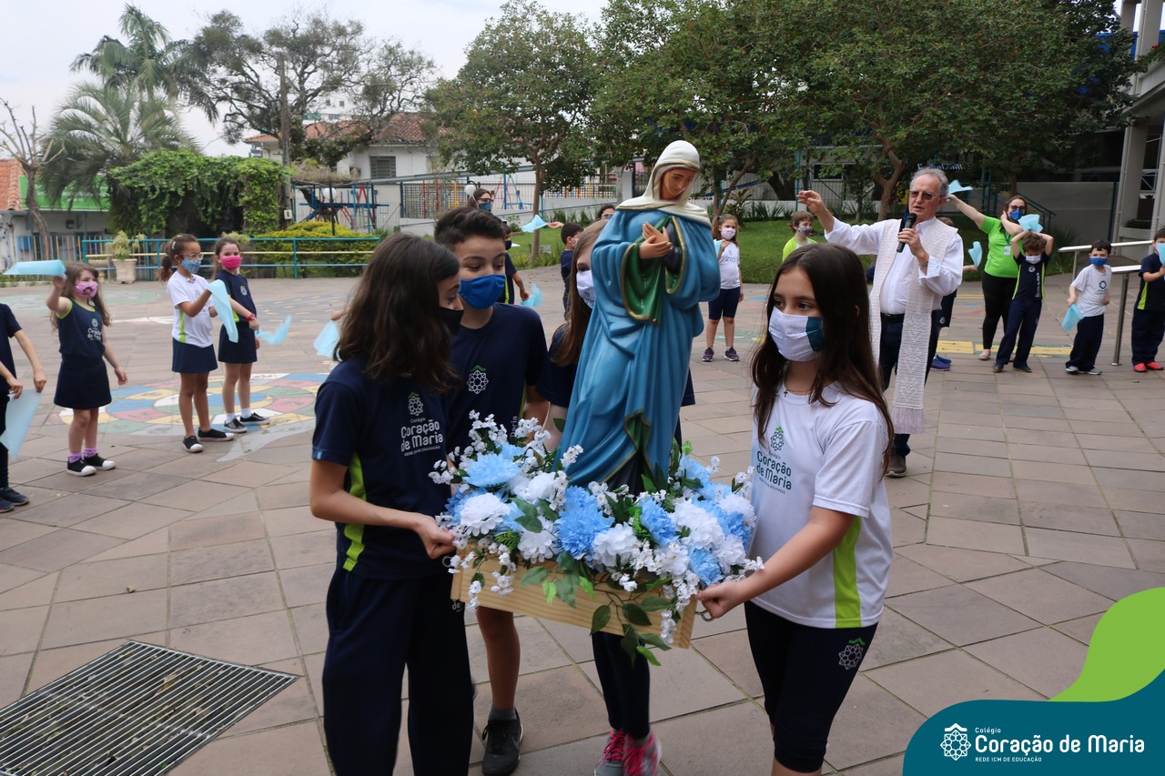 Com alegria e carinho, educadores e crianças acolheram, no último dia 02, a imagem de Nossa Senhora das Dores. A visita faz parte das festividades da Paróquia, a qual o Colégio está situado.